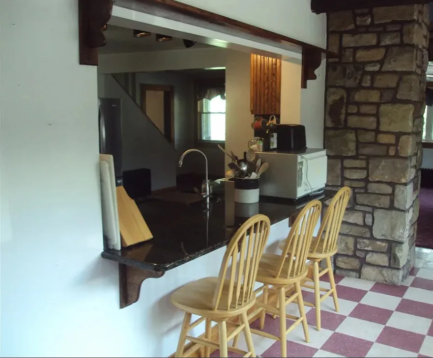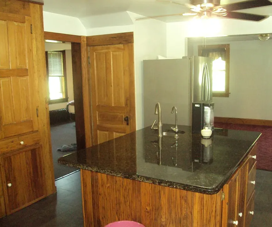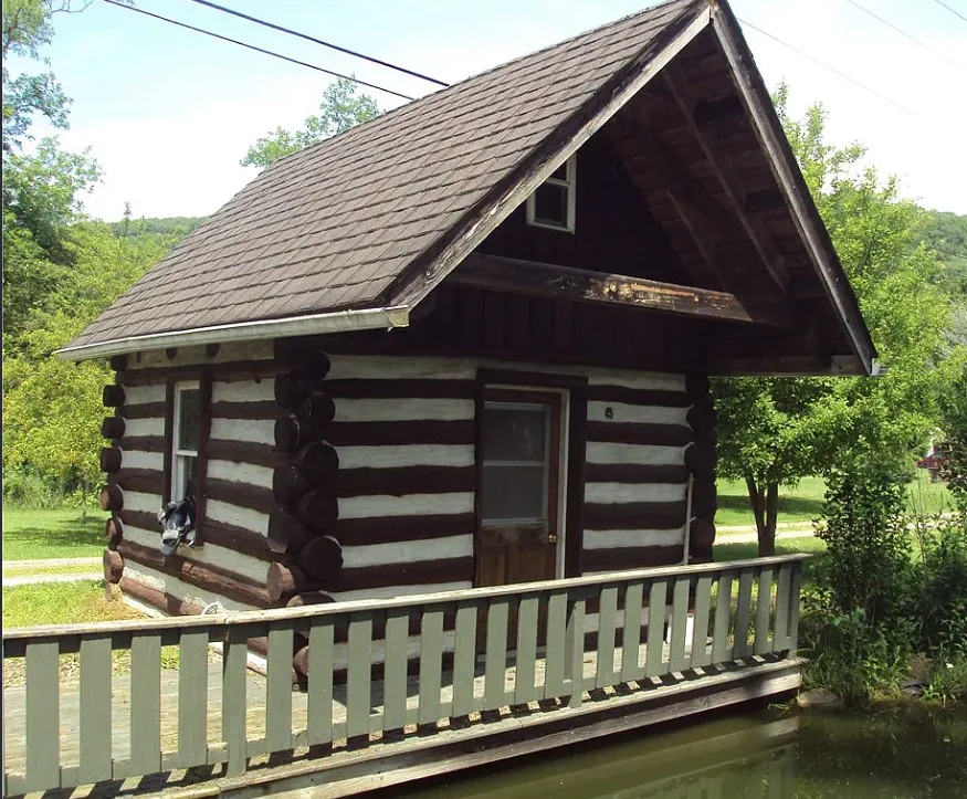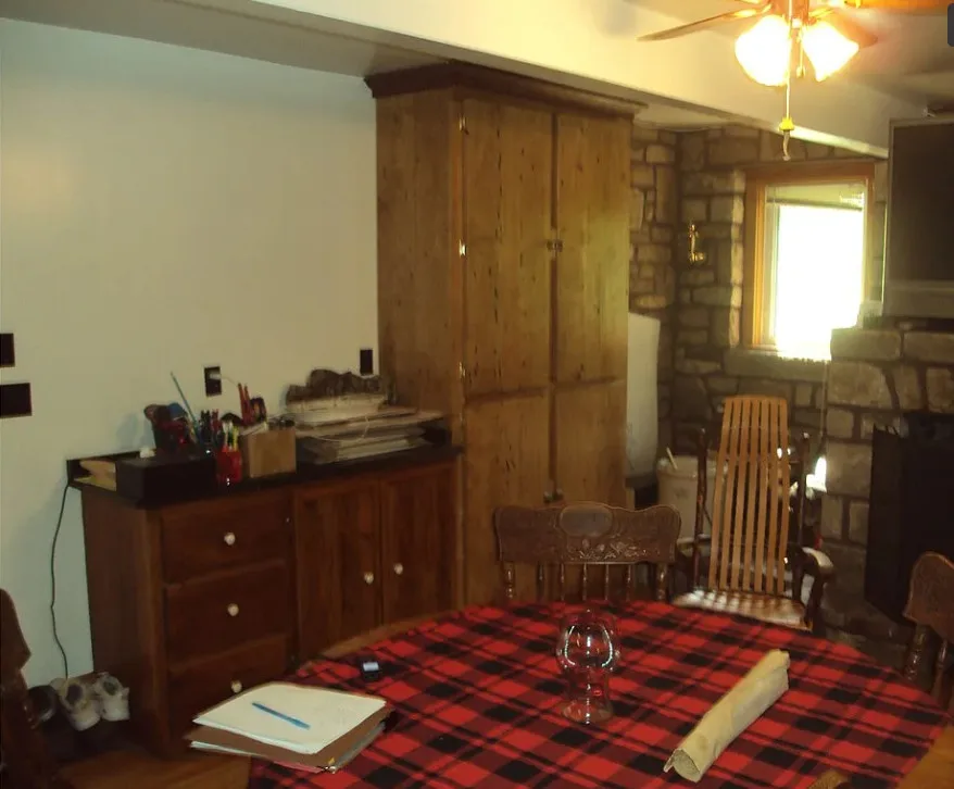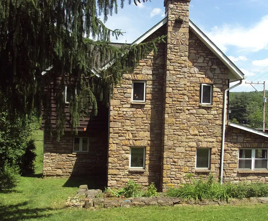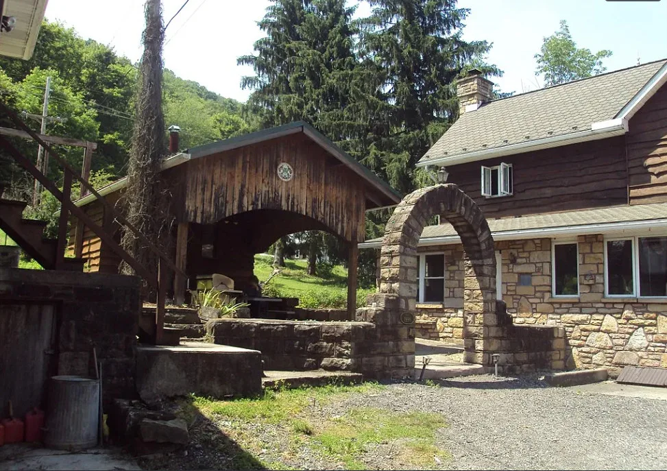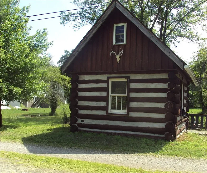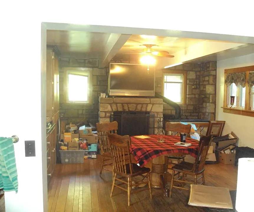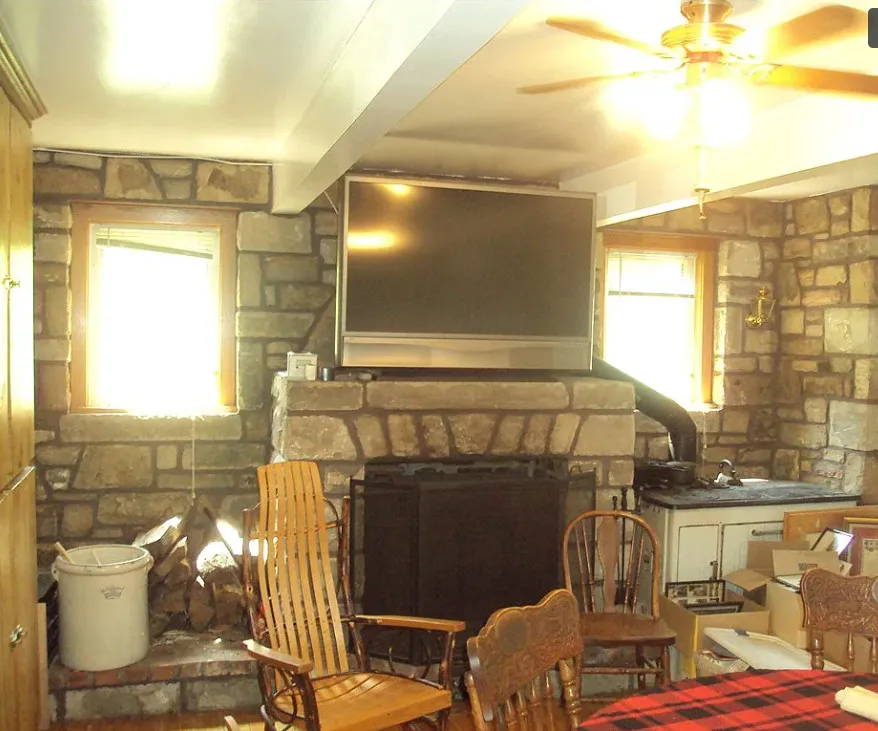 This house sure has a unique exterior! I do love stone houses. The log cabin at the pond is neat. The house was built in 1910.…