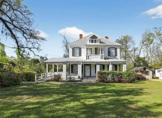 “The Shadows” was built in 1876. Located on 7.43 acres in Waynesboro, Georgia. This home was built for Congressman John James Jones. Beautiful and elaborate English gardens. There is also a guest cottage. The kitchen has a Wolf range and Calacatta Gold Marble counters. Original heart pine floors, plaster crown molding, and original ceiling medallions. There are 16 foot ceilings, original windows, and chandeliers. The home has a 12 foot pier mirror that is original to the home. The property has a two story, three bay garage. Three bedrooms, three bathrooms, and 5,268 square feet. $637,000