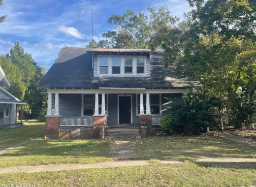 Multiple porches with this house! Love the hardwood floors! This home was built in 1910. It is located on 6.35 acres in Dillwyn, Virginia. The home features wide plank hardwood floors, exposed beams, and a fireplace in the kitchen. There are two outbuildings on the property. It seems like a decent price. Four bedrooms, one bathroom, and 2,300 square feet. $185,000