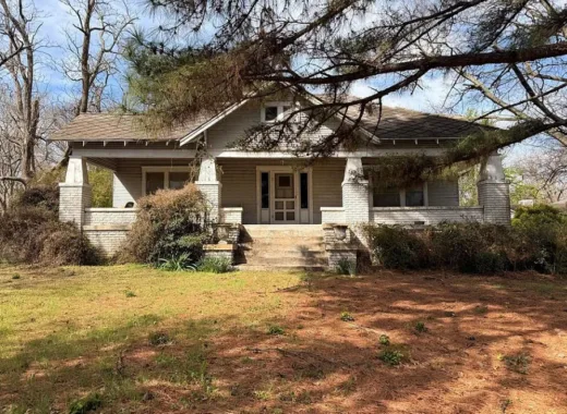 Such a pretty interior! This is a big house with 4,000 square feet. The house was built in 1920. It is located on .86 acre in Laurel, Mississippi. The house features a covered front porch, beautiful hardwood floors, built-ins, large fireplace, picture rails, french doors, sunroom and a spacious kitchen. This is a listing that needs a floor plan diagram. Pretty yard with a carport and a detached storage shed. Six bedrooms, three bathrooms and 4,040 square feet. $280,000