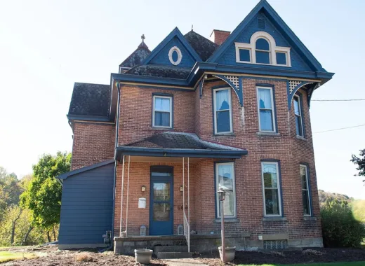 That is a large pool! This home has been used as a short term rental. Interesting how it has a log house section. The house was built in 1900. It is located on 1.50 acres in Toms Brook, Virginia. The house features a covered front porch, hardwood floors, exposed beams, brick fireplace, updated kitchen, french doors, vaulted ceiling, log walls and a beautiful stove. There is an in-ground pool and a pool house. Three bedrooms, two bathrooms and 2,114 square feet. $549,000