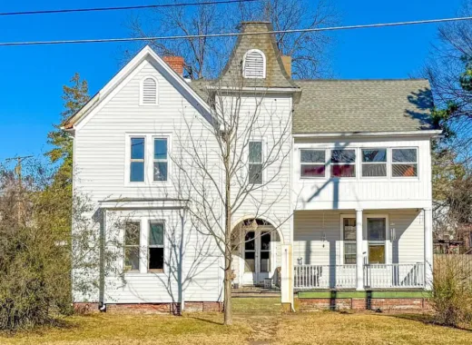 This is an interesting house! Looks like a portion of it started off as a log house. Nice acreage! The house was built in 1938. Log portion is probably earlier. The house is located on 9.20 acres in Roanoke, Virginia. The house is situated near the Salem and Cave Spring area. Beautiful mountain views! The house features a covered side porch, vaulted ceiling, exposed beams, log walls in some rooms and updated bathrooms. There are a couple of outbuildings on the property. Three bedrooms, two bathrooms and 1,976 square feet. $300,000