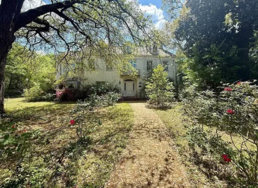 This is a unique looking rock house! Decent sized lot too. The house was built in 1926. it is located on 2.80 acres in Trussville, Alabama. The house features a covered front porch, hardwood floors, built-in bookshelves, baseboards and a pretty built-in corner cabinet. If you pull up streetview, there is a beautiful rock wall out front by the sidewalk. Can’t believe they didn’t show that! There is a detached shed on the property for storage. Three bedrooms, two bathrooms and 1,704 square feet. $220,000