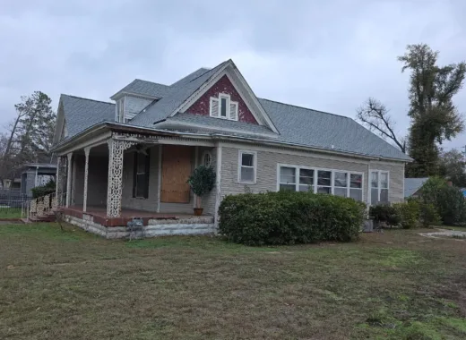 This house has some nice original details inside! I love the old barn! The house was built in 1884. It is located on 11.09 acres in Harmony, North Carolina. The house features wood floors, exposed beams and multiple fireplaces. The house was originally a one room log cabin and that was added onto. There are a few outbuildings, including a large barn. Love the long driveway! Four bedrooms, one bathroom and 1,950 square feet. $450,000