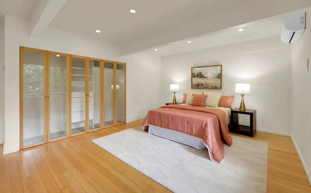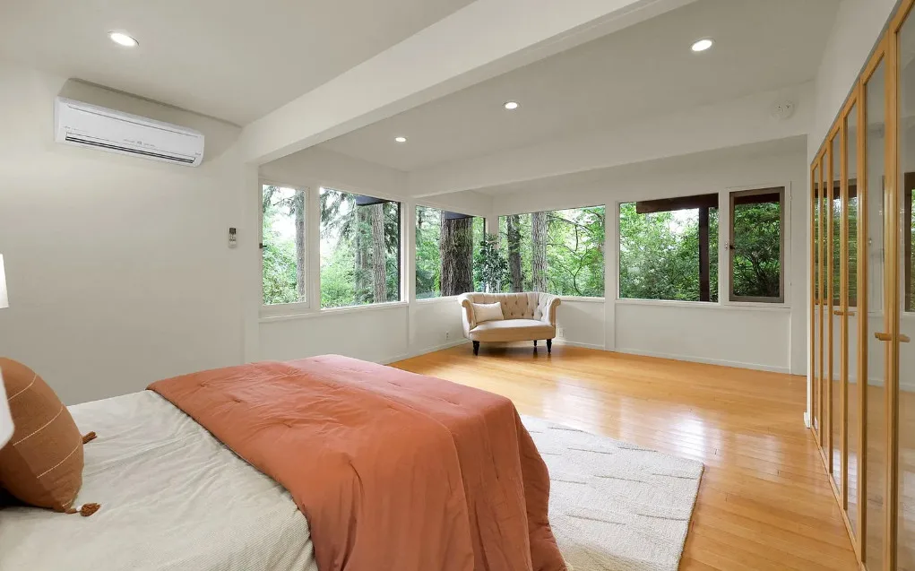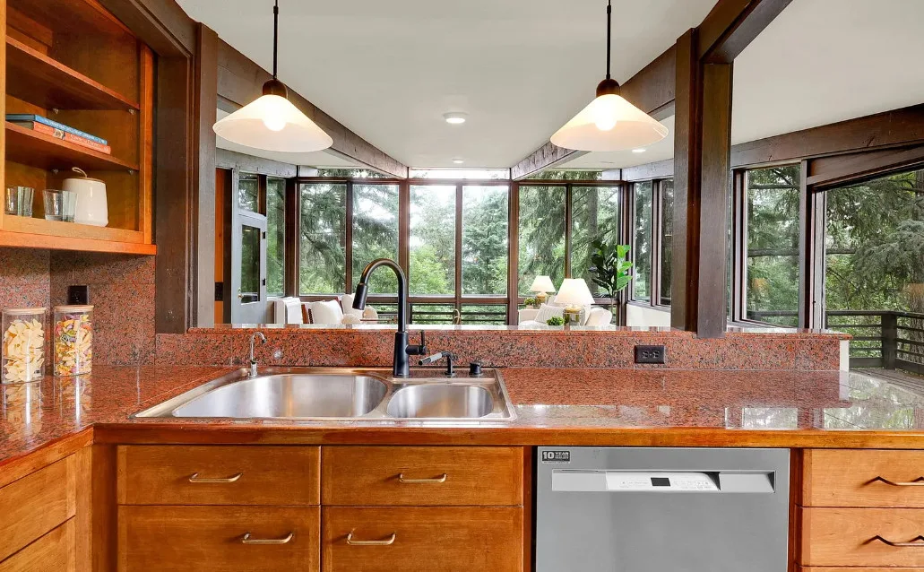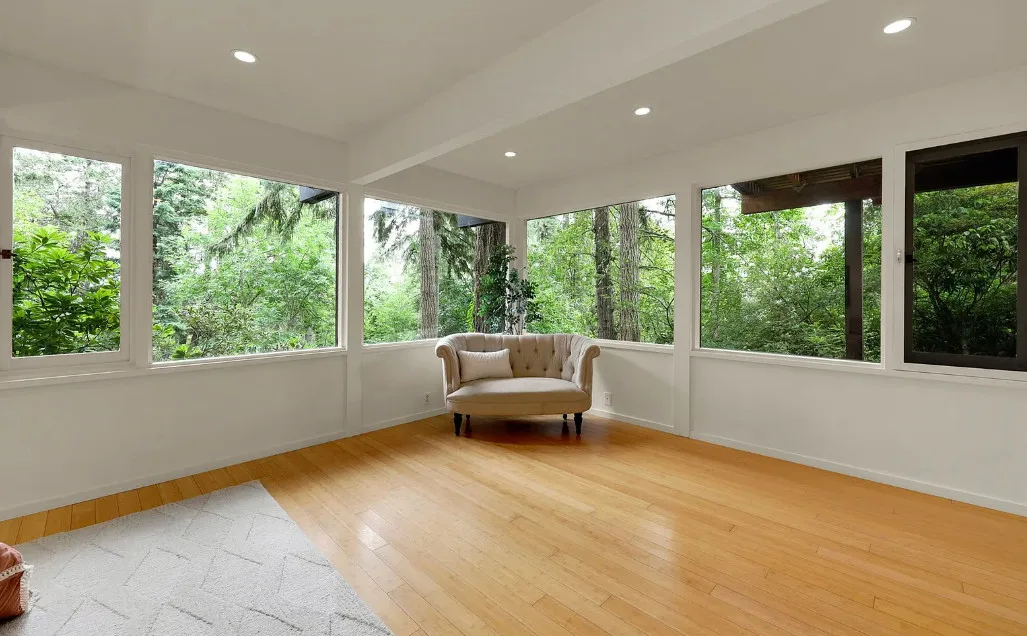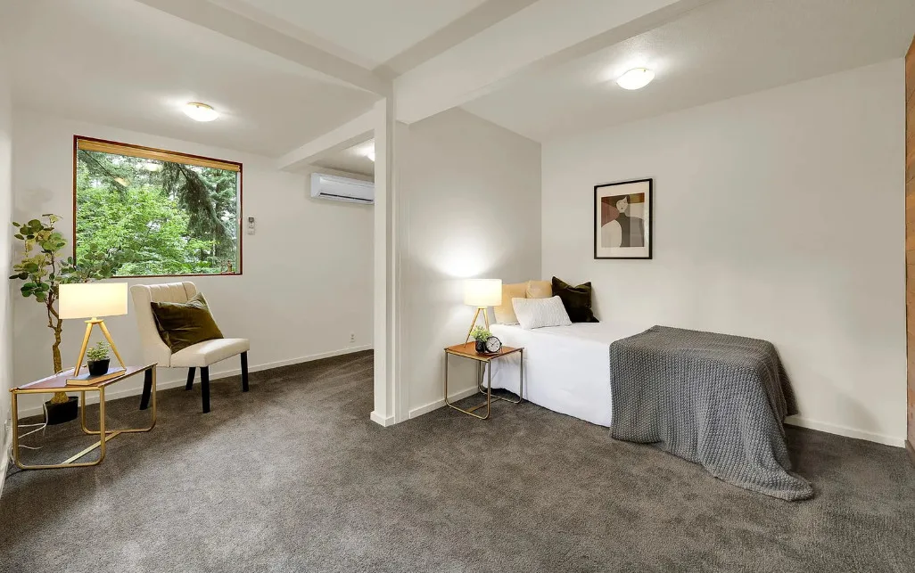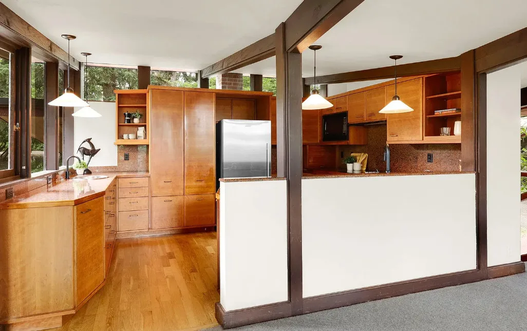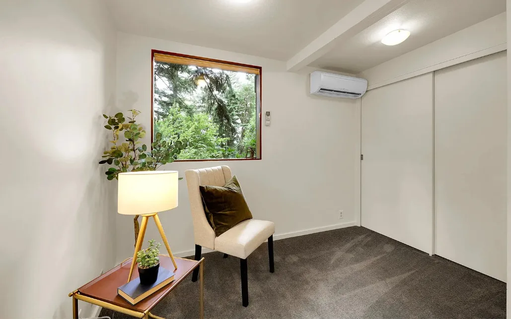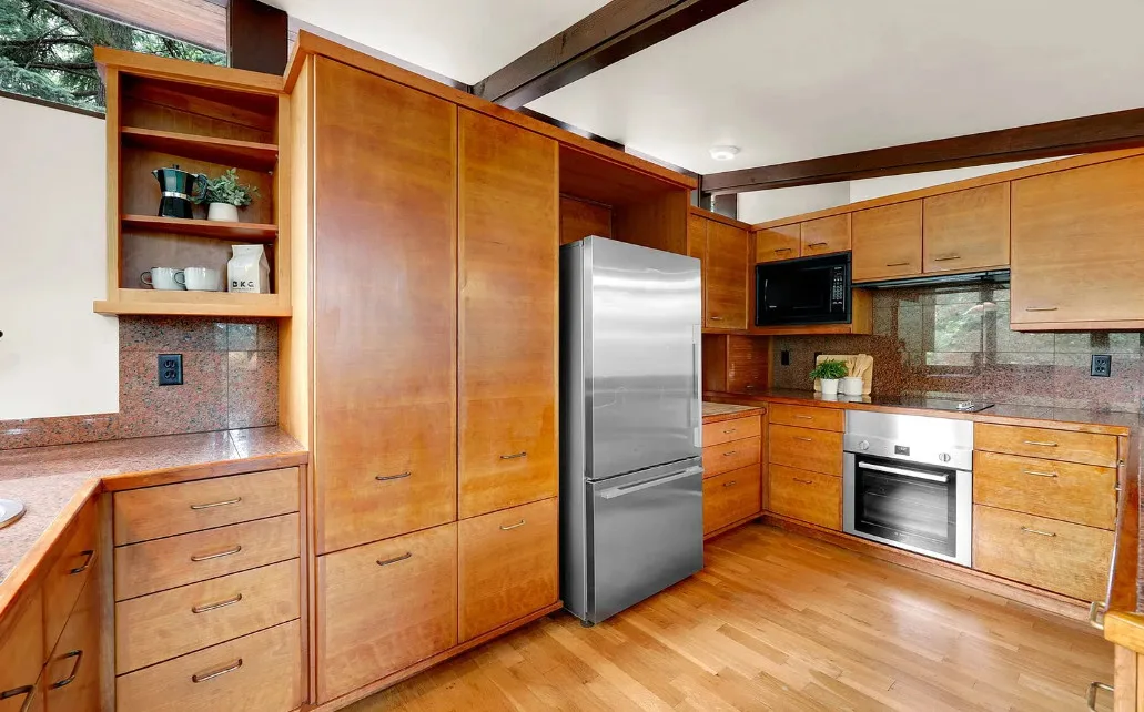 Love the windows in this mid-century modern! Would always sit there gazing out. The house was built in 1954. It is located on .66 acre in Eugene, Oregon. The house features a wrap around deck, walls of windows, exposed beams, updated kitchen, built-ins and wood floors. Four bedrooms, two bathrooms and 2,240 square feet. $795,000