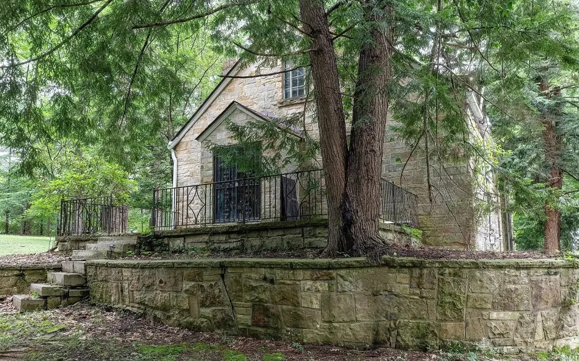 I love stone houses! The stone retaining wall is neat too. I wish the interior had a bit more rustic charm. The house was built in 1930. It is located on 4.75 acres in Bloomington, Indiana. The house features a large stone retaining wall, limestone exterior, large stone fireplace, wood floors, arched entryways and a built-in corner cabinet. There is a two car garage and a one car garage. Three bedrooms, two bathrooms and 2,448 square feet. $379,900