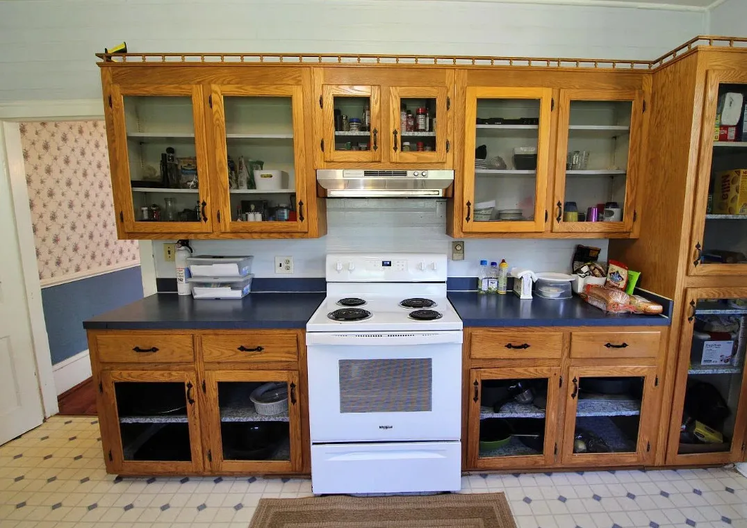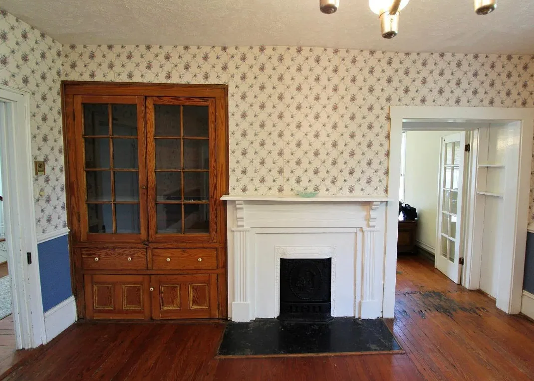 This house has a nice interior! It’s in an interesting town. Pamplin used to be a hub back in the day when the railroad came through. Then everything shuttered up and it was considered a ghost town. It’s been undergoing revitalization. The house was built in 1910. It is located on .75 acre in Pamplin, Virginia. The house features a covered front porch, original wood floors, nice staircase, wide baseboards, built-in china cabinet and chair rails. Five bedrooms, two bathrooms and 2,580 square feet. $199,900