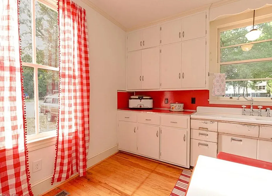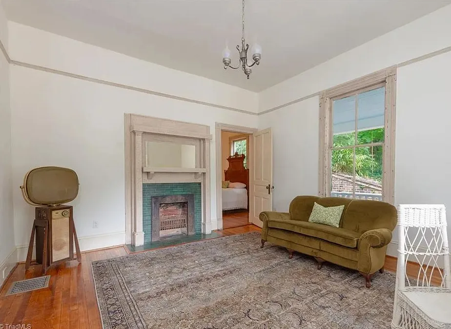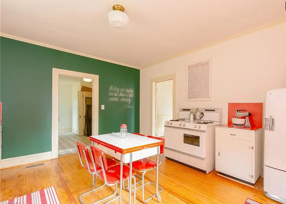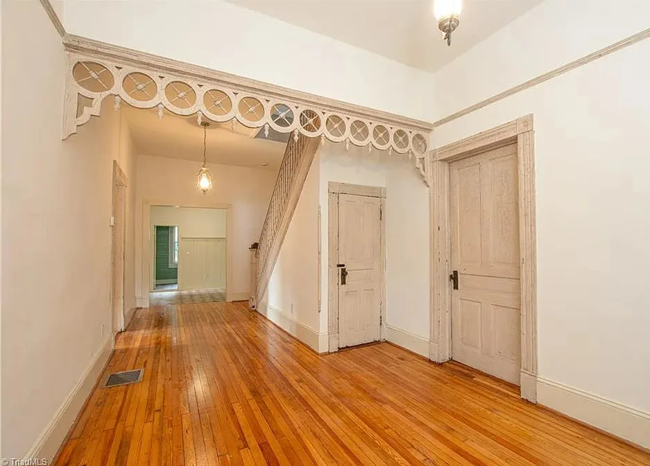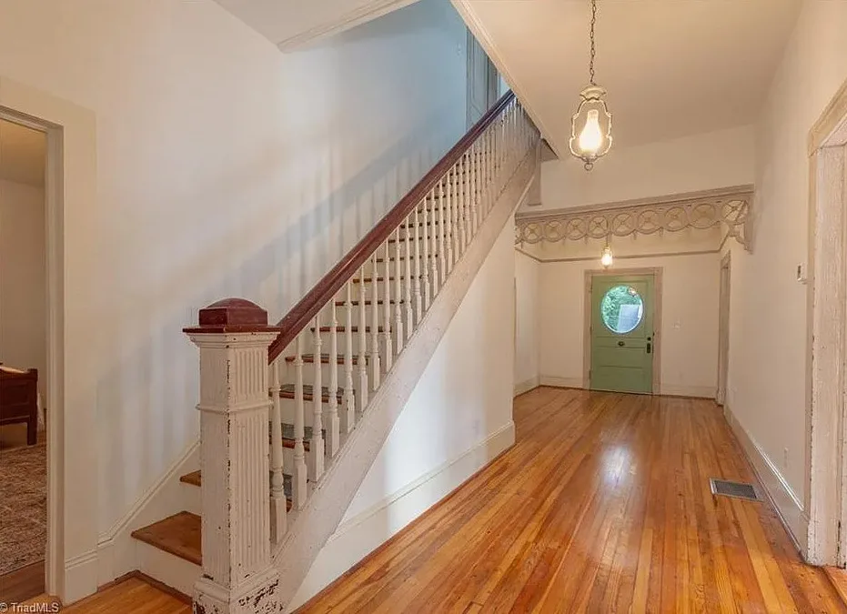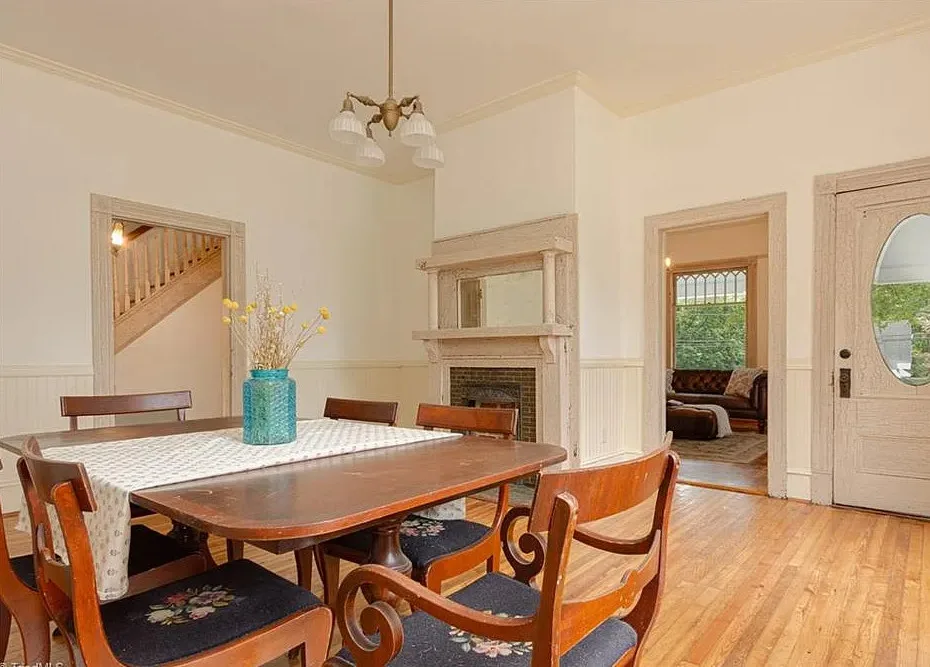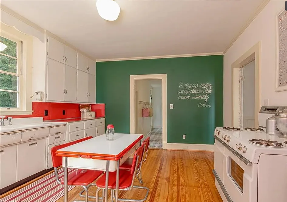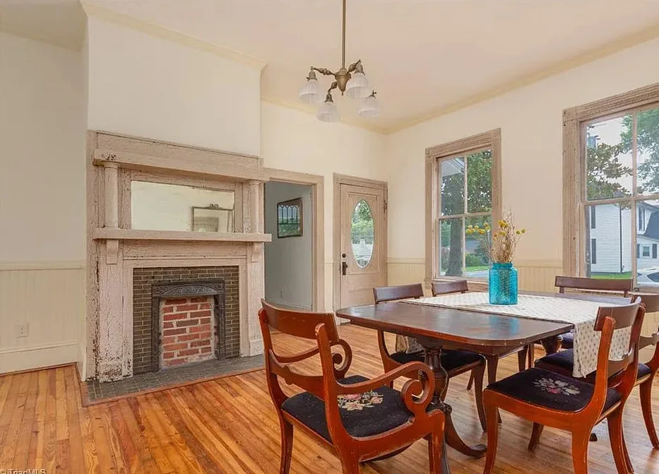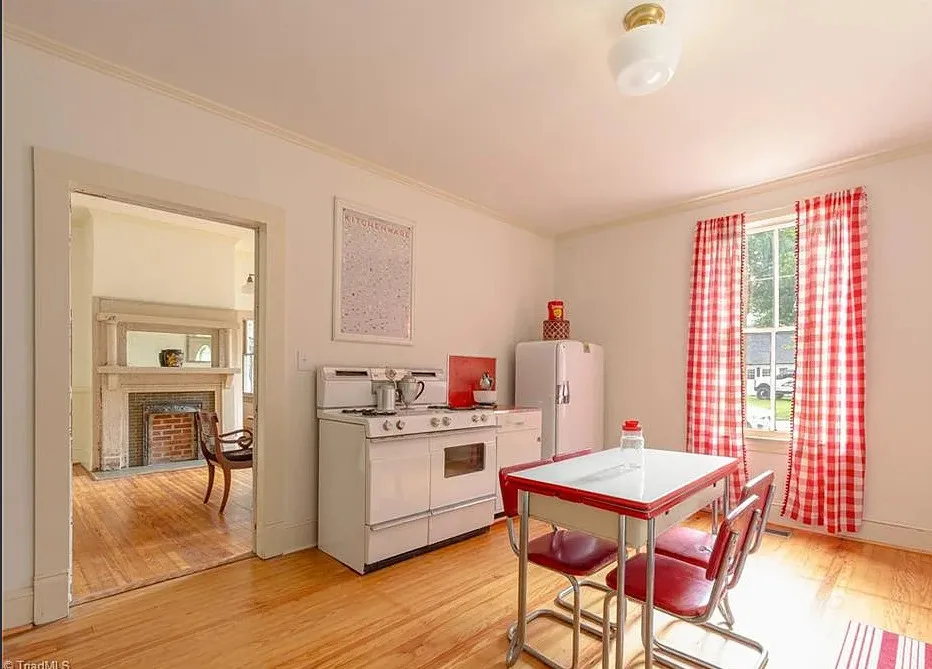 Take a look at that vintage kitchen! Love it! That original fretwork inside is rather unique! The restoration job on this house was done so nicely! The Hooper House was built in 1910. It is located on 1/2 acre in Reidsville, North Carolina. This was the childhood home of Walter Hooper. He was an author and literary secretary to the renowned C. S. Lewis. Upon Lewis’s death, Hooper made it his life mission to promote all of Lewis’s work. The house features a large wrap around front porch, wood floors, original fretwork, vintage light fixtures, vintage kitchen, leaded glass windows, wide baseboards, picture rails, built-ins and original mantels. The home has a new roof, updated electric, updated plumbing and new HVAC. Someone did a great job on this house! Four bedrooms, two bathrooms and 2,559 square feet. $349,000 New price: $339,000 New price: $315,000