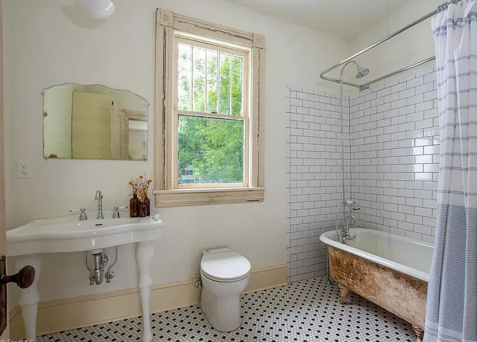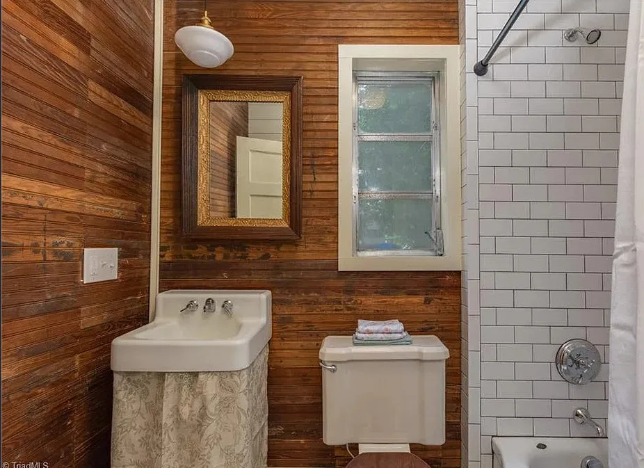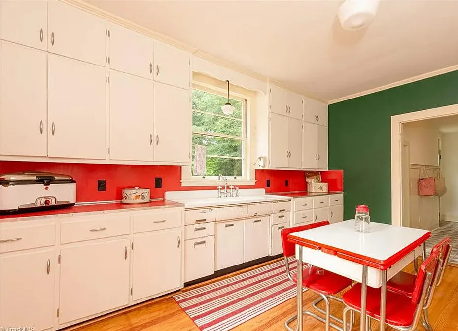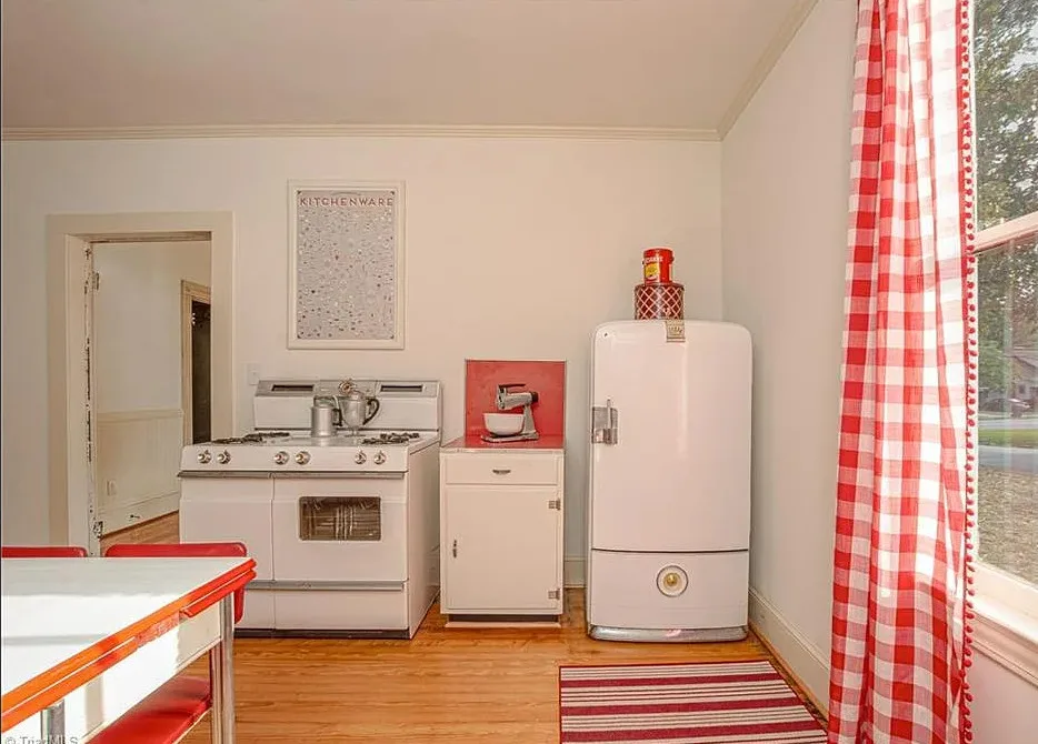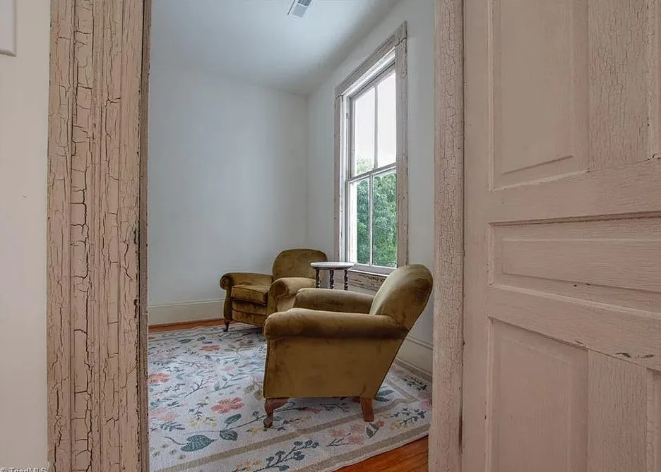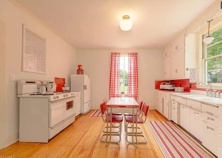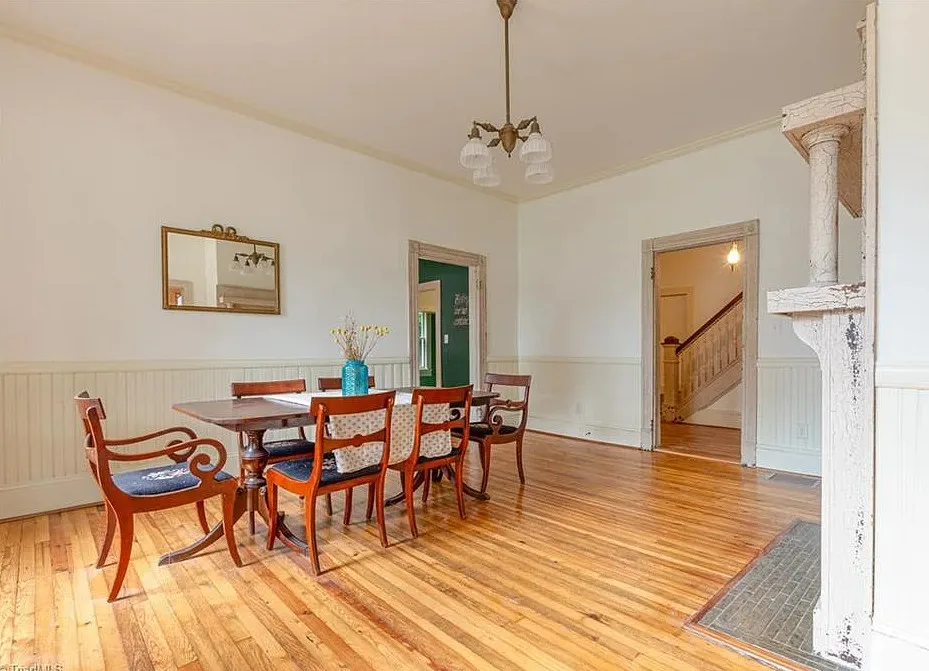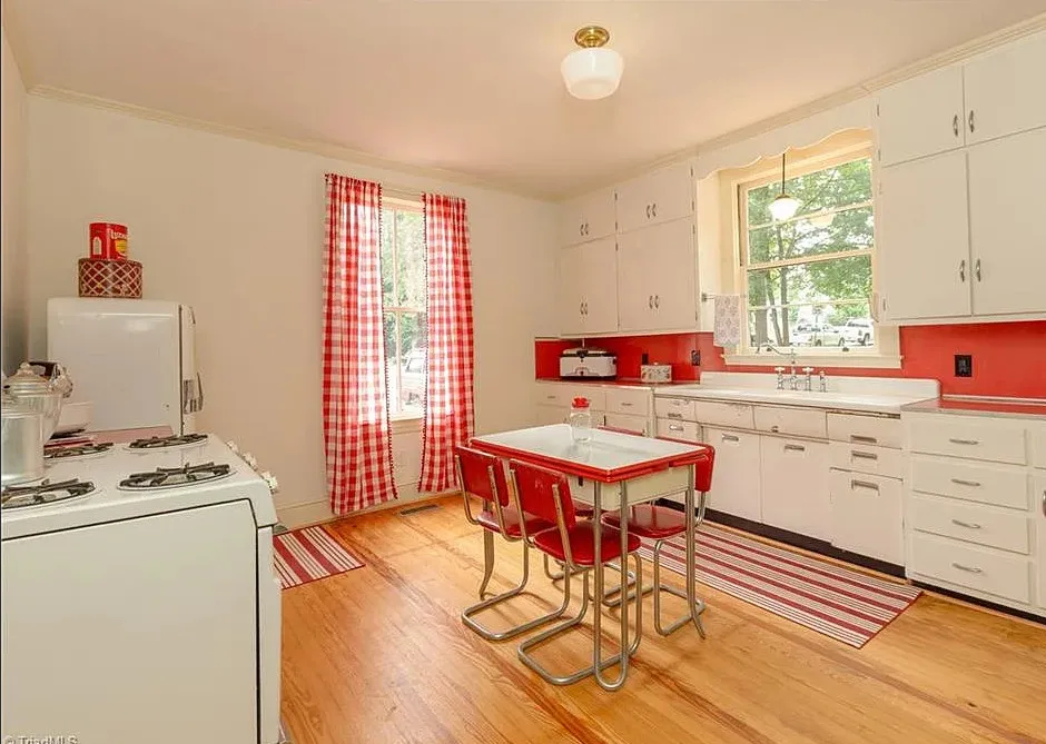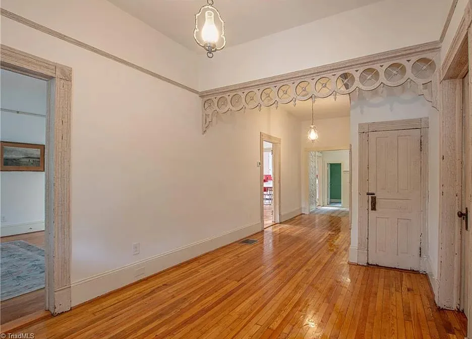 Take a look at that vintage kitchen! Love it! That original fretwork inside is rather unique! The restoration job on this house was done so nicely! The Hooper House was built in 1910. It is located on 1/2 acre in Reidsville, North Carolina. This was the childhood home of Walter Hooper. He was an author and literary secretary to the renowned C. S. Lewis. Upon Lewis’s death, Hooper made it his life mission to promote all of Lewis’s work. The house features a large wrap around front porch, wood floors, original fretwork, vintage light fixtures, vintage kitchen, leaded glass windows, wide baseboards, picture rails, built-ins and original mantels. The home has a new roof, updated electric, updated plumbing and new HVAC. Someone did a great job on this house! Four bedrooms, two bathrooms and 2,559 square feet. $349,000 New price: $339,000 New price: $315,000