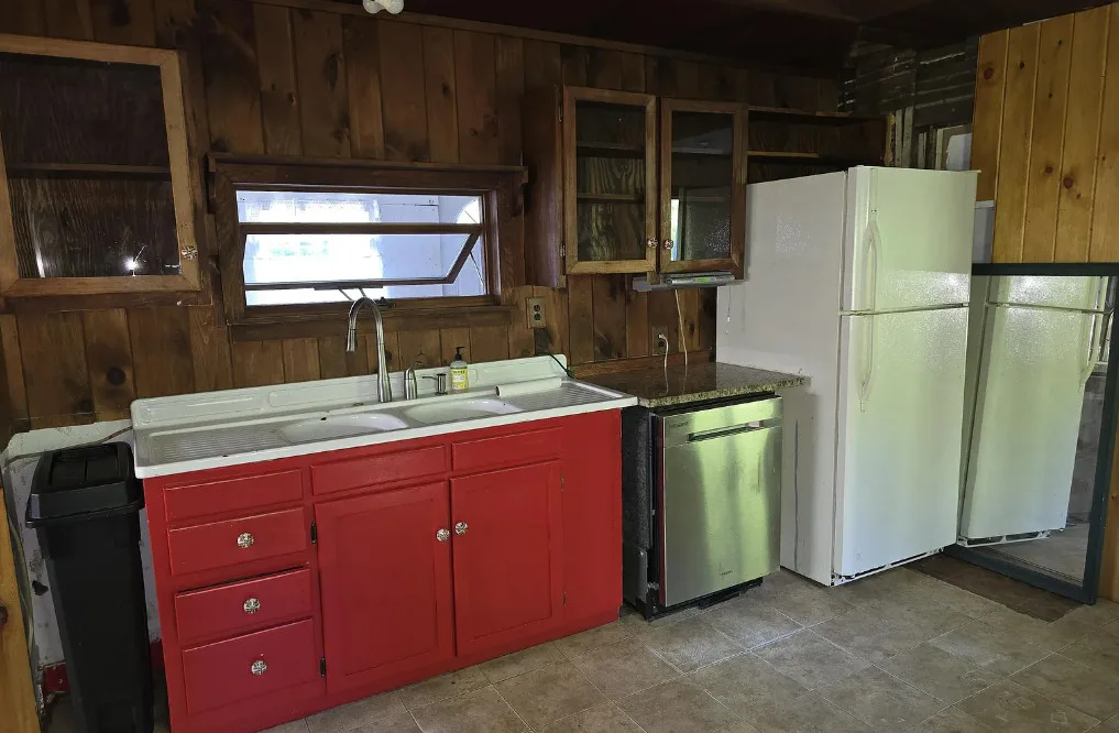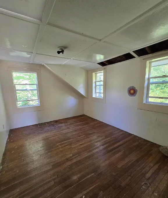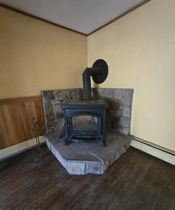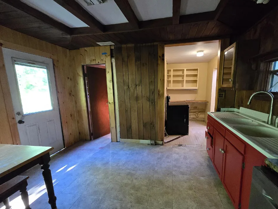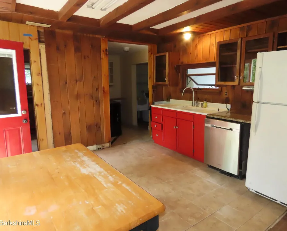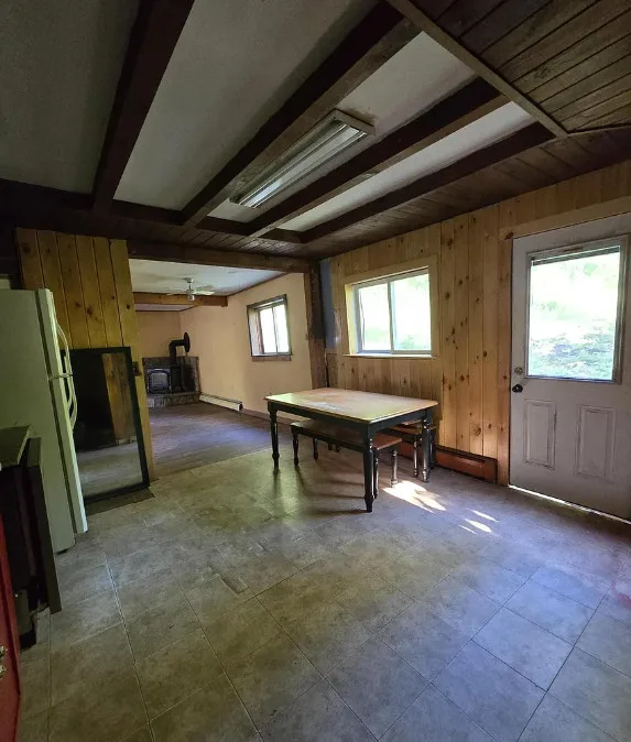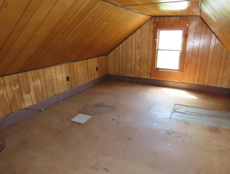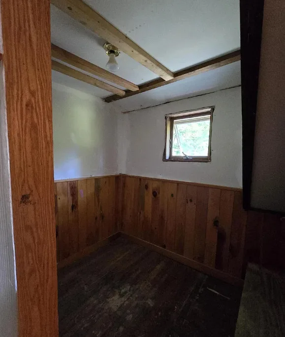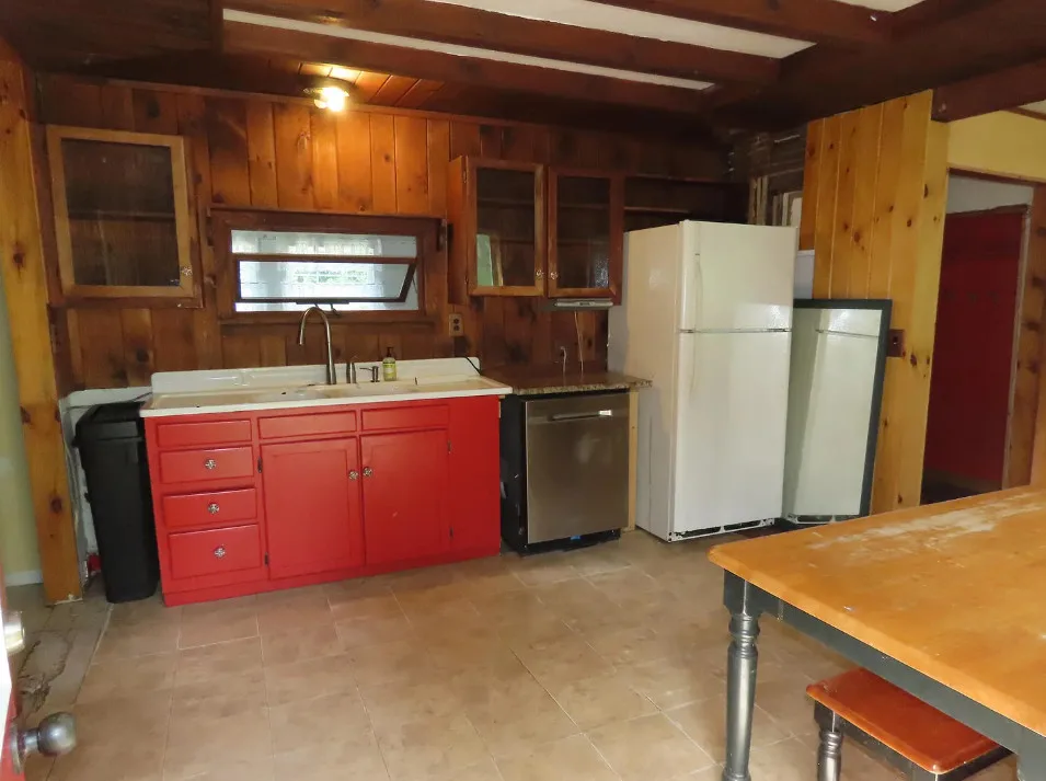 Nice acreage for this fixer upper in Massachusetts! The house was built in 1940. It is located on 8.8 acres in Clarksburg, Massachusetts. The house definitely needs work. It features exposed beams, knotty pine, some wood flooring, wainscoting and baseboards. There is a detached storage building on the property. Three bedrooms, one bathroom and 1,517 square feet. $145,000