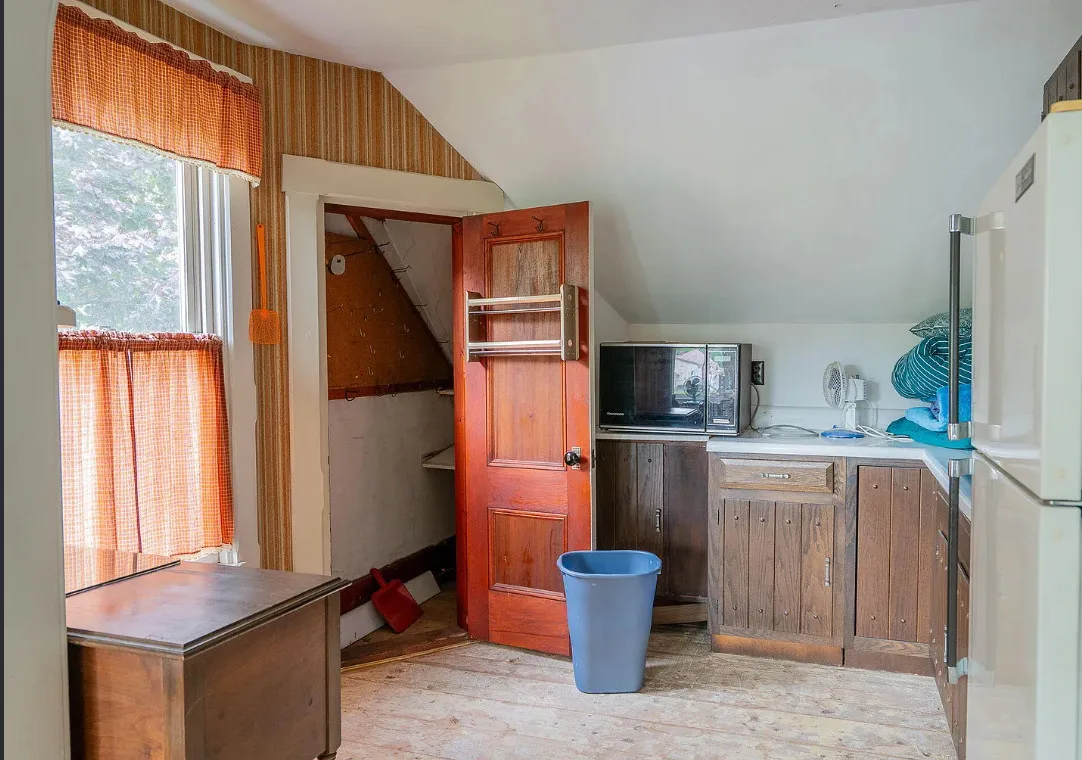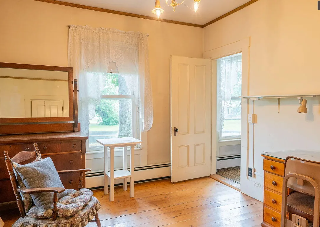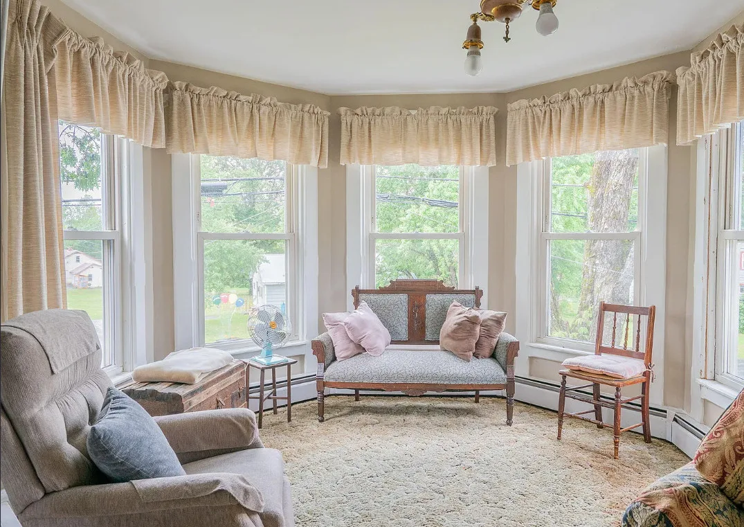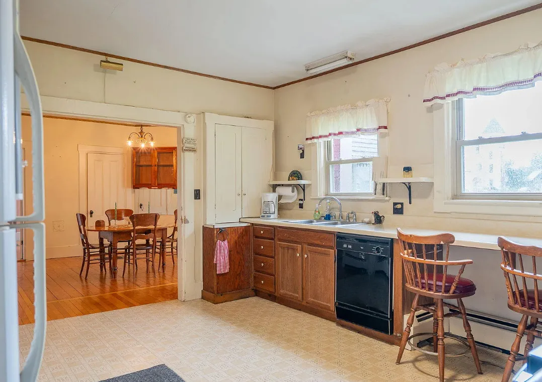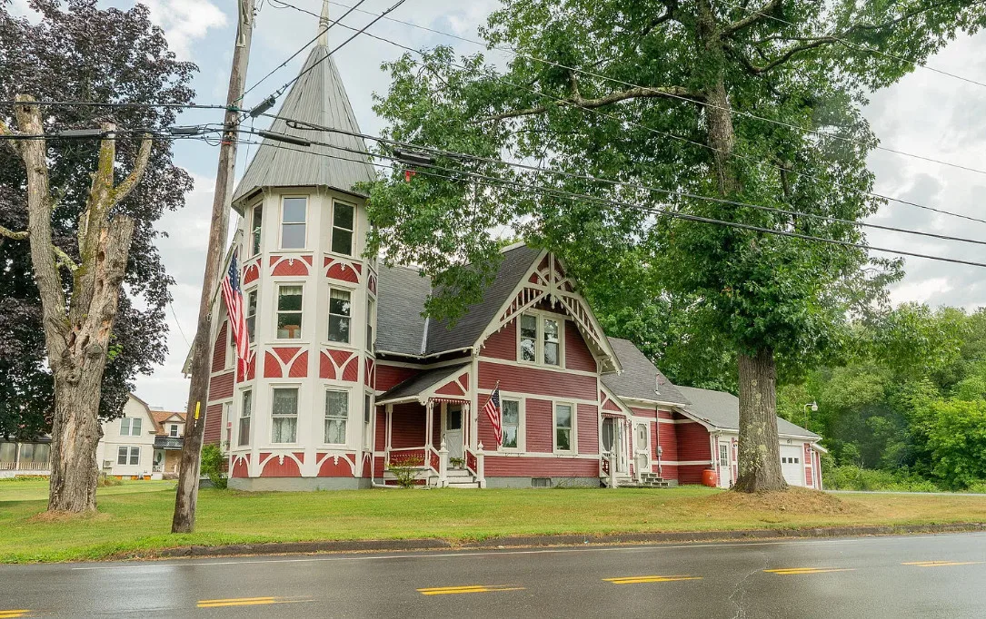 This house has a unique exterior! The house was built in 1901. It is located on one acre in Sherman, Maine. The house features an enclosed porch, wood floors, turret, baseboards, vintage light fixtures, arched entryway and built-in china cabinet. Love all of the windows and natural light. Four bedrooms, two bathrooms and 2,201 square feet. $285,000