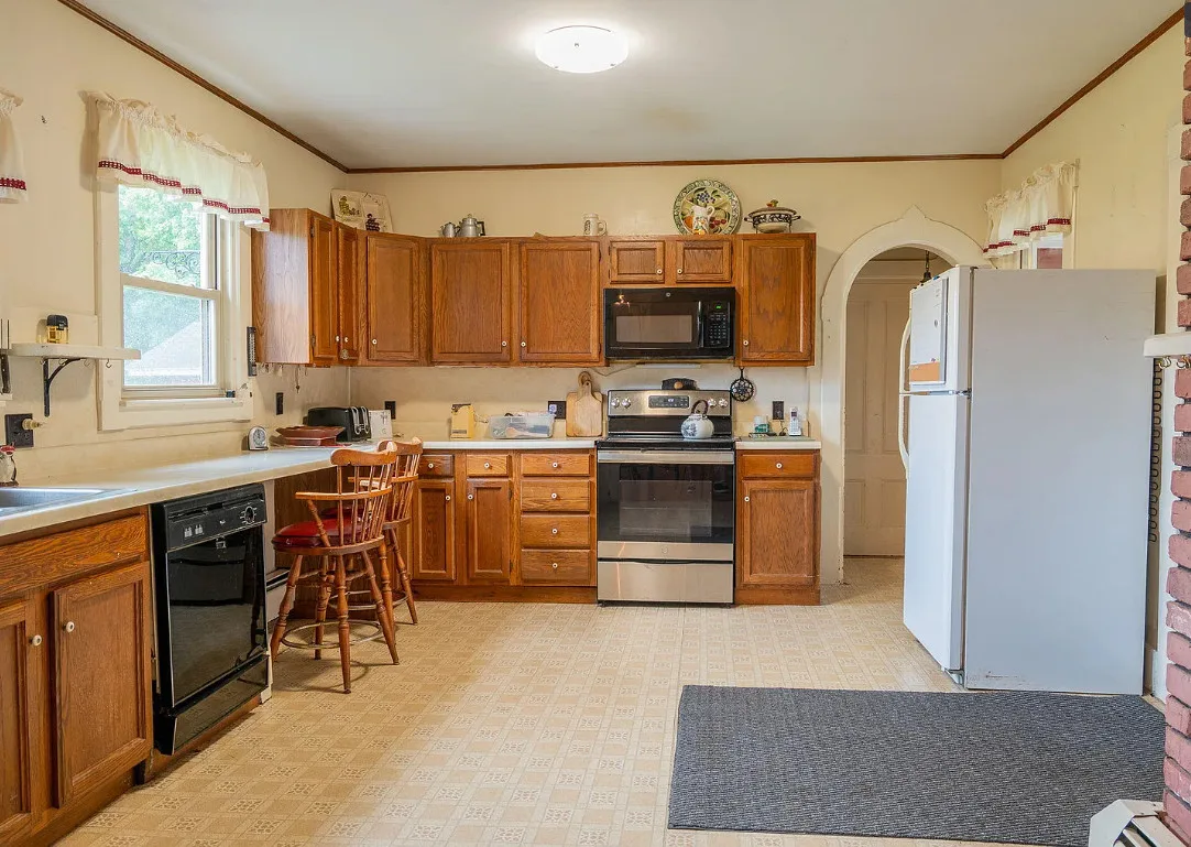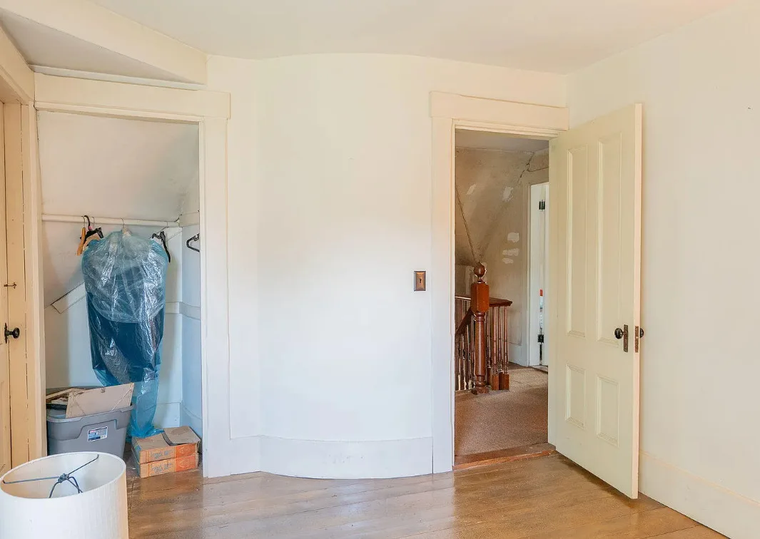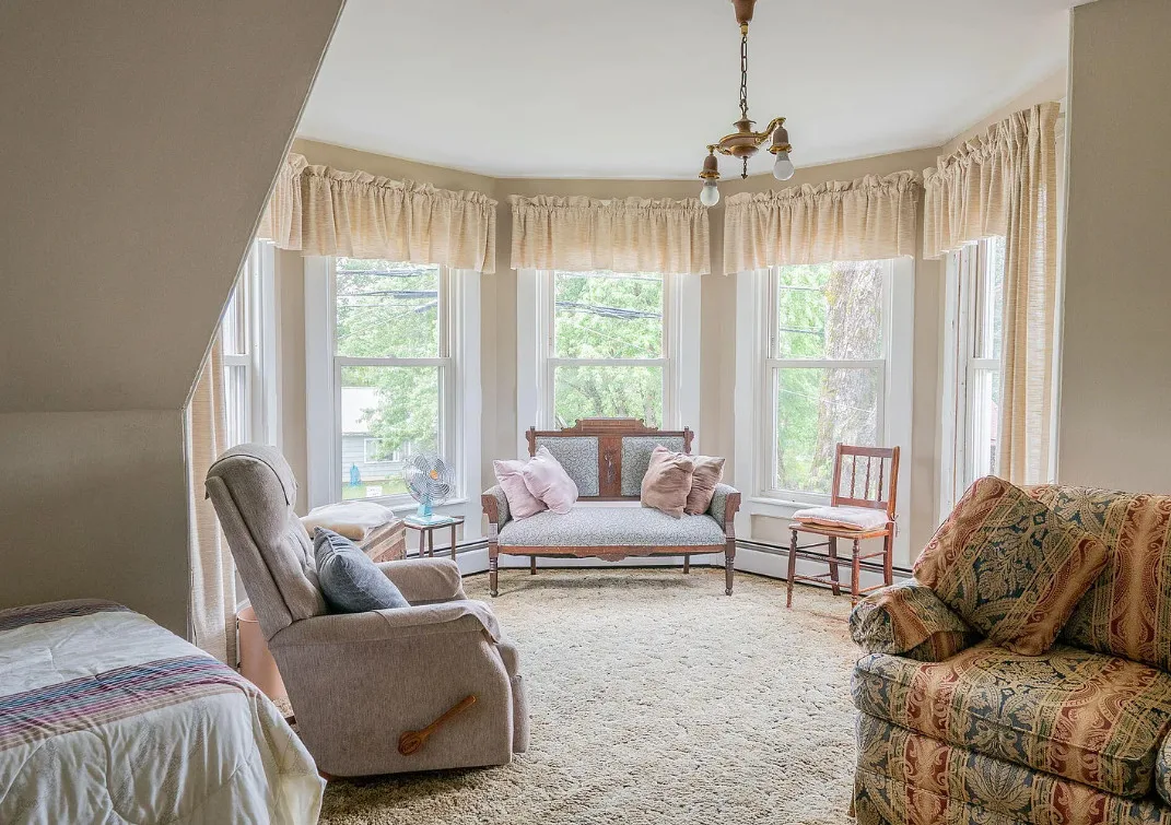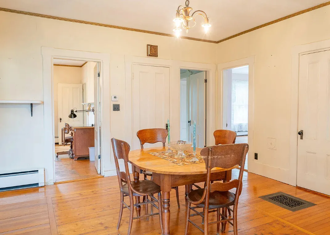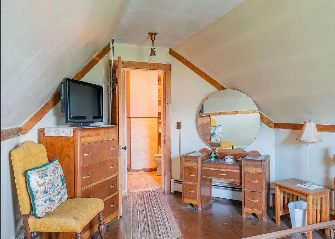 This house has a unique exterior! The house was built in 1901. It is located on one acre in Sherman, Maine. The house features an enclosed porch, wood floors, turret, baseboards, vintage light fixtures, arched entryway and built-in china cabinet. Love all of the windows and natural light. Four bedrooms, two bathrooms and 2,201 square feet. $285,000