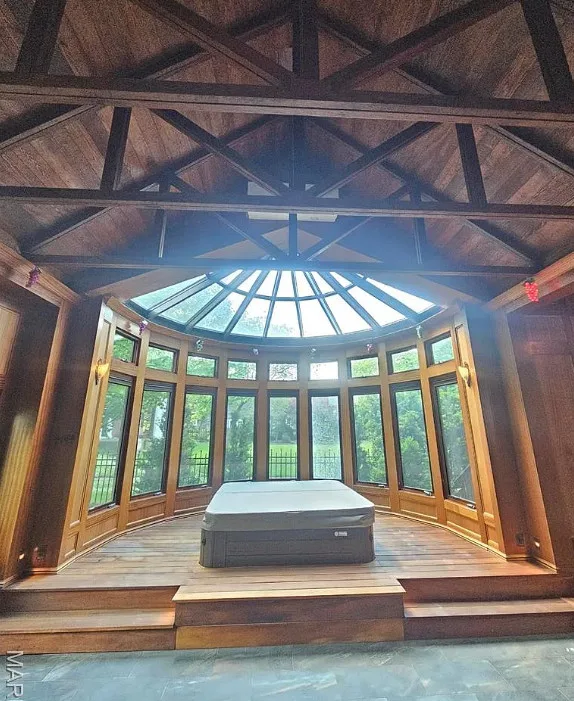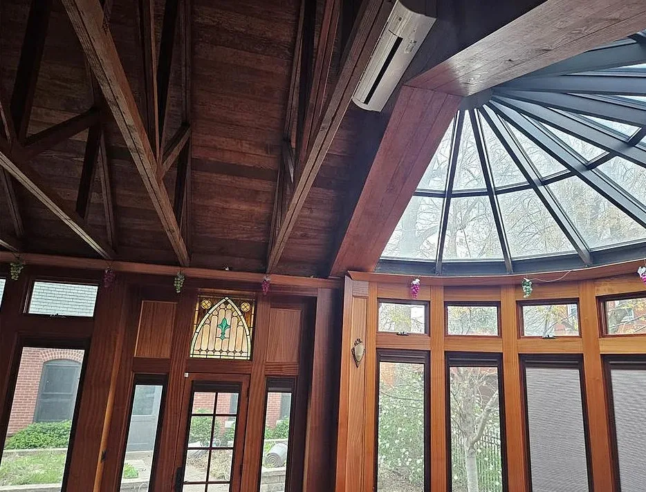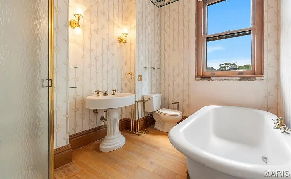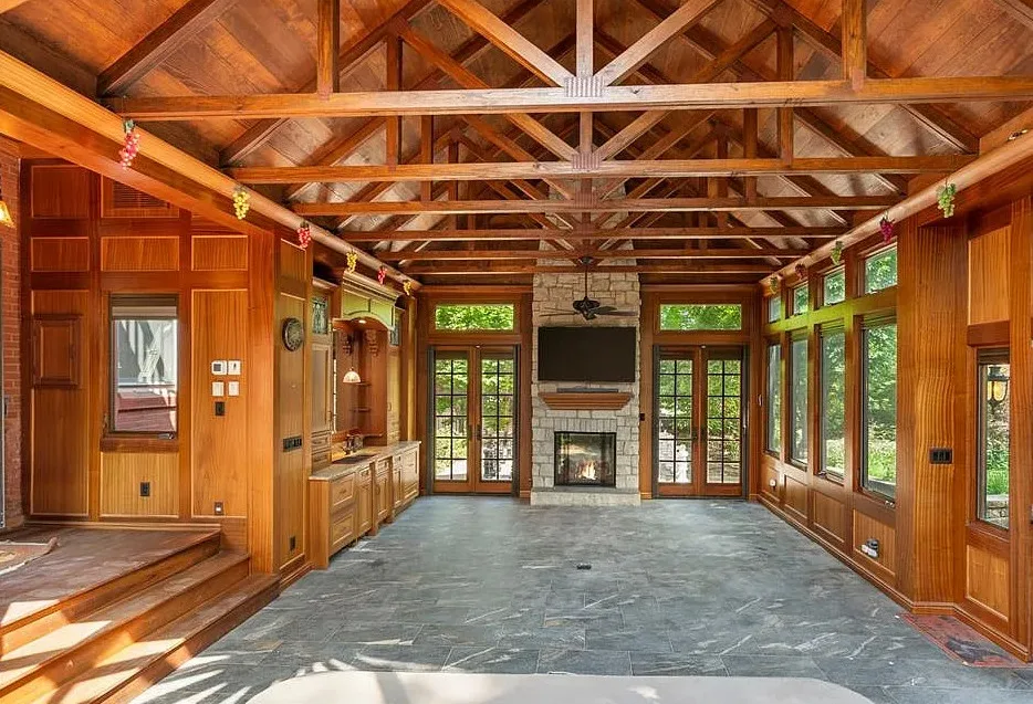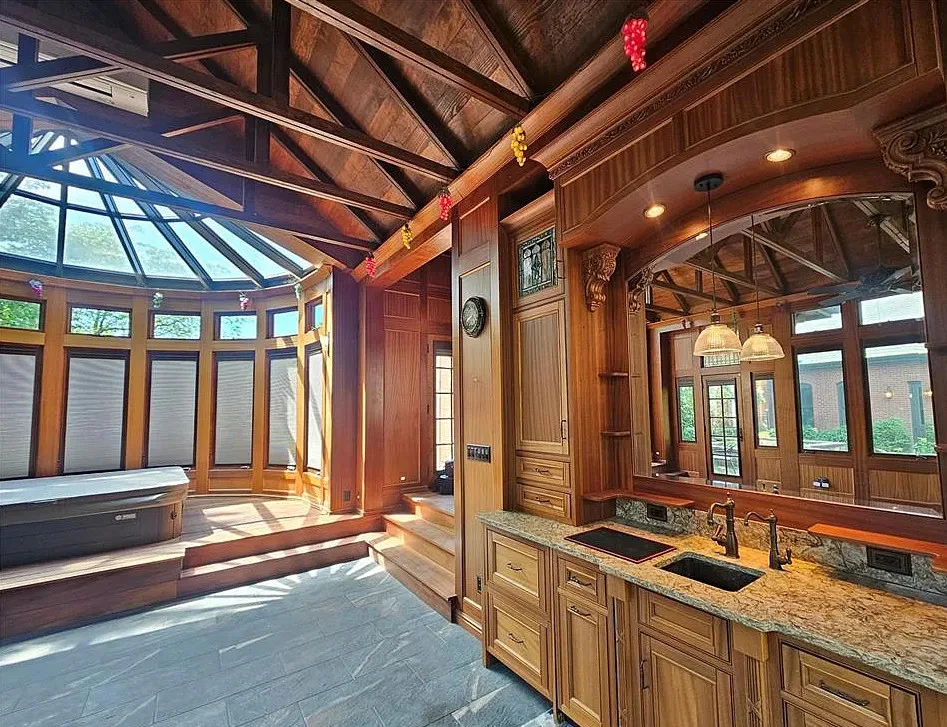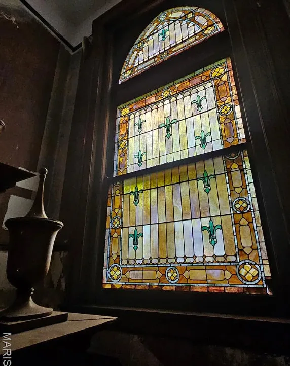 Look at all of the original details! Beautiful woodwork and stained glass! The indoor hot tub area is interesting. The house was built in 1894. It is located on .27 acre in St. Louis, Missouri. The house features wood floors, grand staircase, vintage light fixtures, crown moulding, wide baseboards, stained glass, leaded glass, atrium with hot tub and a detached garage. The backyard is fenced with patios and a large chess game. Five bedrooms, three bathrooms and 6,511 square feet. $775,000