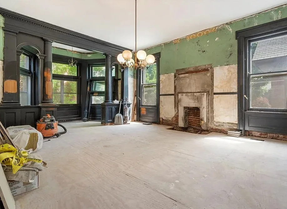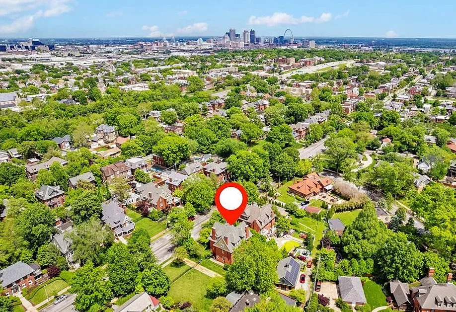 Welcome to the equivalent of the 1800s St. Louis Ferrari Mansion originally built by James Connolly, the Gold Medal Winner of the American Car and Foundry Company, our Ferrari Vs. Lamborghini rivalry at the time, and later a prominent industrialist, businessman and politician. Smitten by its unique historic grandeur, the current owners embarked on a serious renovation, removing asbestos walls, peeling molded wallpaper, stripping layers of paint off of lush hardwood pillars and fireplace mantels until the bygone splendor glistened underneath to reveal its lush elegance. Bring your designer and unleash your imagination to make a statement with striking colors, Onix, travertine, malachite and velvet because this gorgeous beauty with an entrance foyer, grand staircase, stunning leaded glass masterpiece, formal living and dining rooms, butler’s pantry, kitchen, possible elevator and grand primary suite on the third floor (now billiards), 5BR, 2.5BA, 6500+ won’t wait! The party zone in the back is already finished, with its vaulted 14″+ ceiling dome, heated floors, hot tub, see-through indoor-outdoor functional fireplace, wet bar with granite countertops, 2 drink coolers and a garland of windows that make you feel California. The 3-car garage has a 2nd floor that could be a guest suite or a studio, gracefully separated from the main residence by artfully landscaped flower beds. Most systems have been updated. The home is conveyed in AS IS condition due to the stage of renovation.