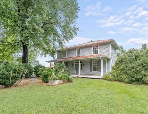 So many pretty details! I don’t think I have ever seen as many vintage light fixtures in a house! There are two staircases! The Chandler House was built in 1904. It is located on 1.57 acres in Exmore, Virginia. The house features a large wrap around front porch, tall ceilings, transom windows, pocket doors, vintage light fixtures, claw foot tub, back staircase, pretty main staircase, baseboards and original mantels. The property has mature landscaping and a koi pond. Four bedrooms, two bathrooms and 2,910 square feet. $499,900