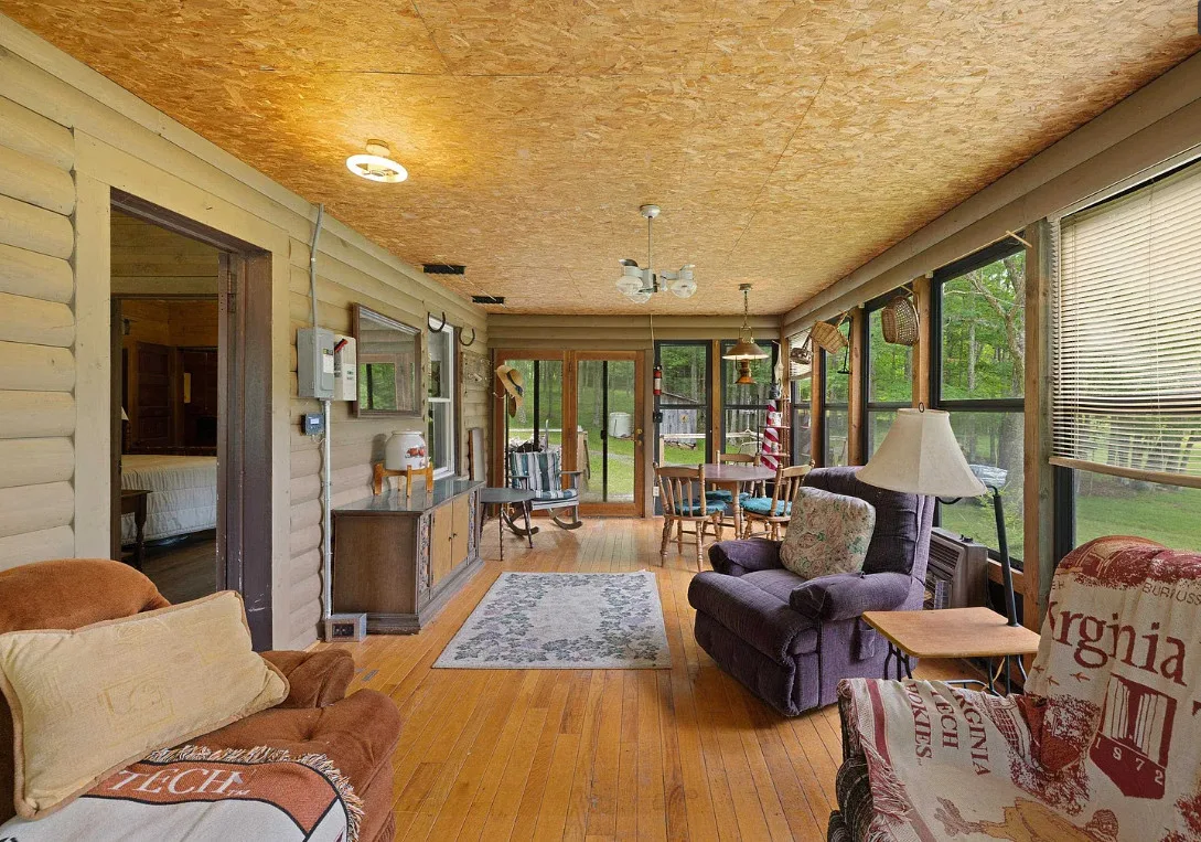 “Grandma’s Cabin” is rustic, but cute! Love the enclosed porch/sunroom! This cabin is being sold fully furnished. It was built in 1920. It is located on 1.4 acres in Blue Grass, Virginia. The cabin uses solar power, propane and has spring water. The cabin features an enclosed front porch, stone hearth with wood stove, wood floors, vintage kitchen stove and an old ice box. Two bedrooms, one bathroom and 1,000 square feet. $200,000