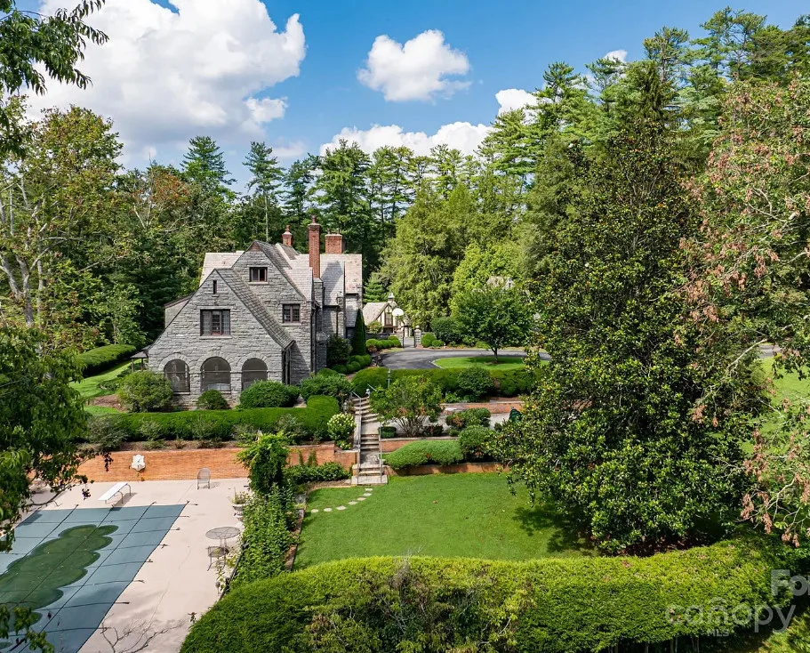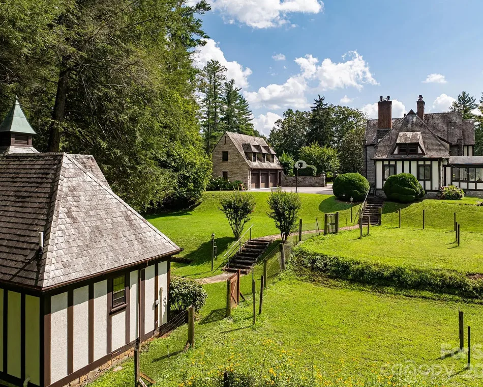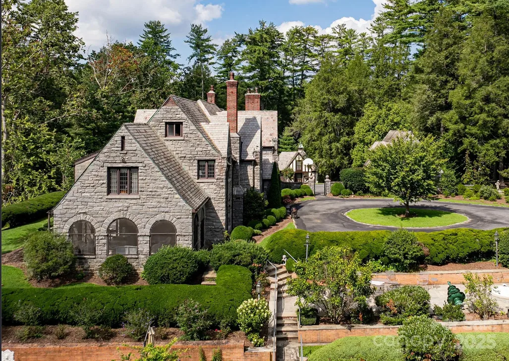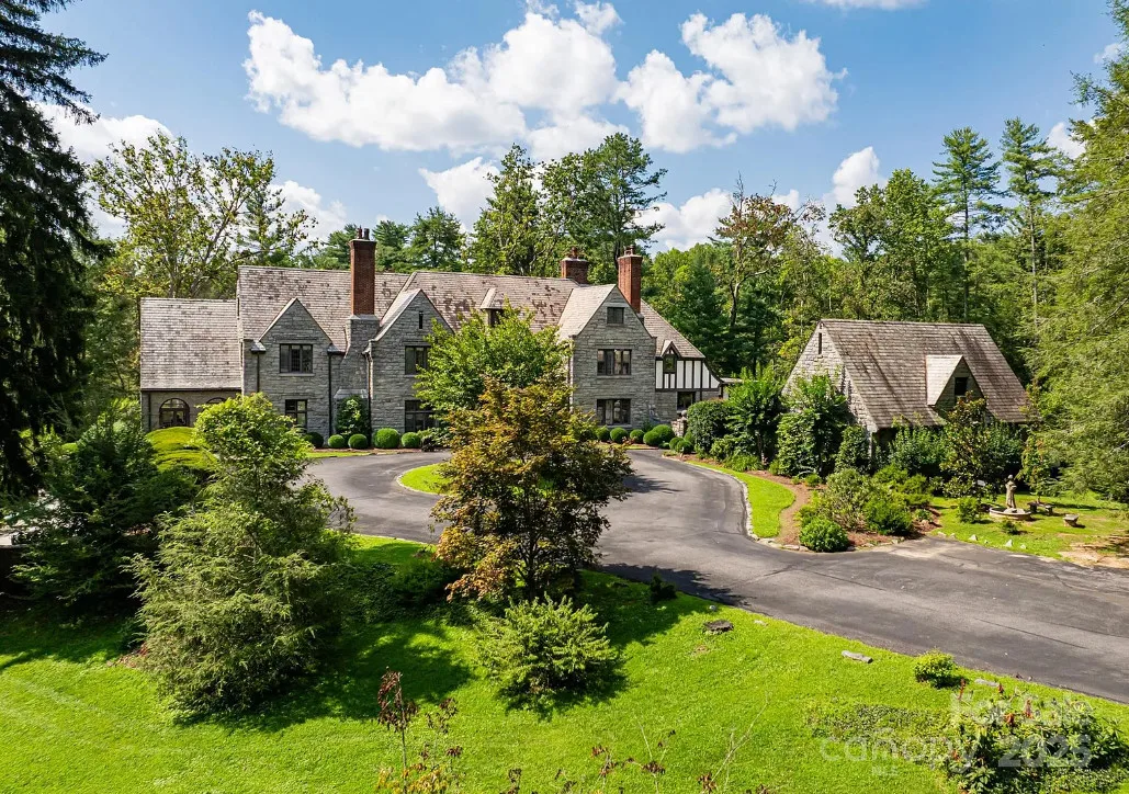Experience the epitome of sophistication and elegance in this exquisite one-of-a kind estate, evoking timeless grandeur. Situated on over nine lush acres in prestigious Biltmore Forest, this extraordinary property offers a grand Tudor mansion designed by the renowned architect Charles Parker. The gracious 8BR/6BA/2HB main home features impressively scaled rooms throughout, showcasing unsurpassed quality from the custom millwork, antique mantels and leaded glass windows. The upper-level primary suite is a residence unto itself, complete with a large dressing room, office, and fireplace, creating a peaceful oasis. 5BR/3BA complete this level,the top floor offers a 2BR/BA and recreation room. A charming guest cottage that adds timeless appeal, while living space above the detached garage provides versatility for guests or a home office. Set in an idyllic landscape, the property boasts a winding drive, gardens, a pool and pool house, stables with riding rink, and ample acreage to explore.