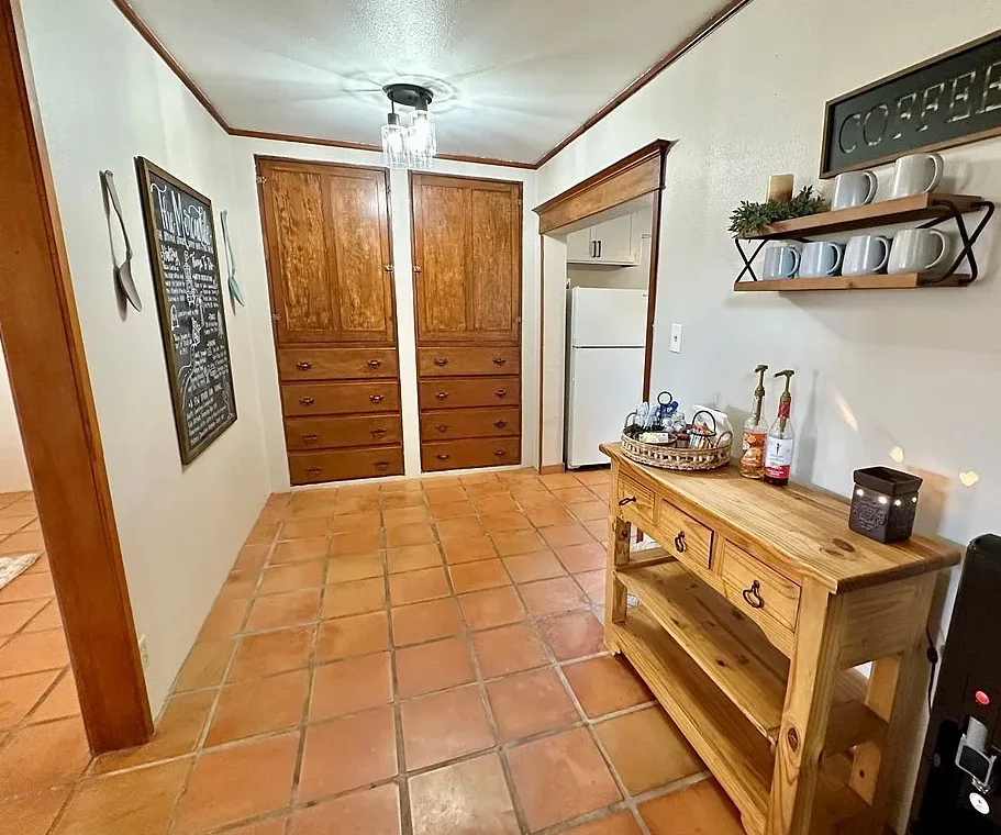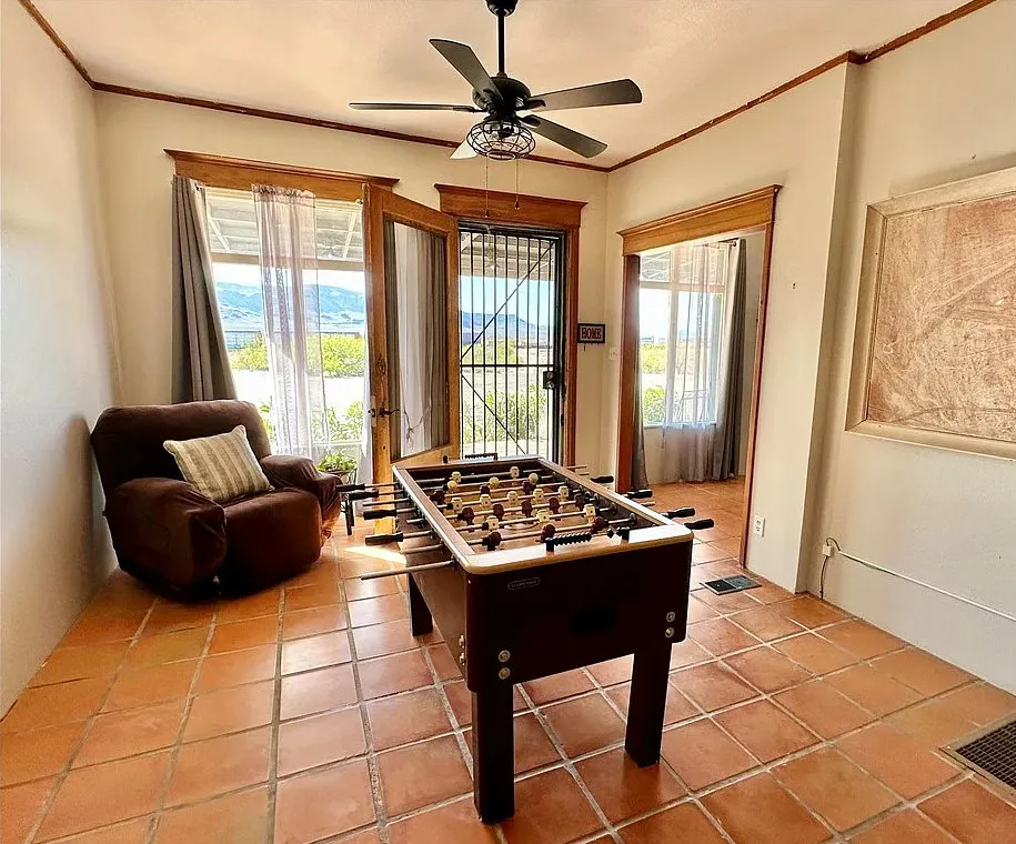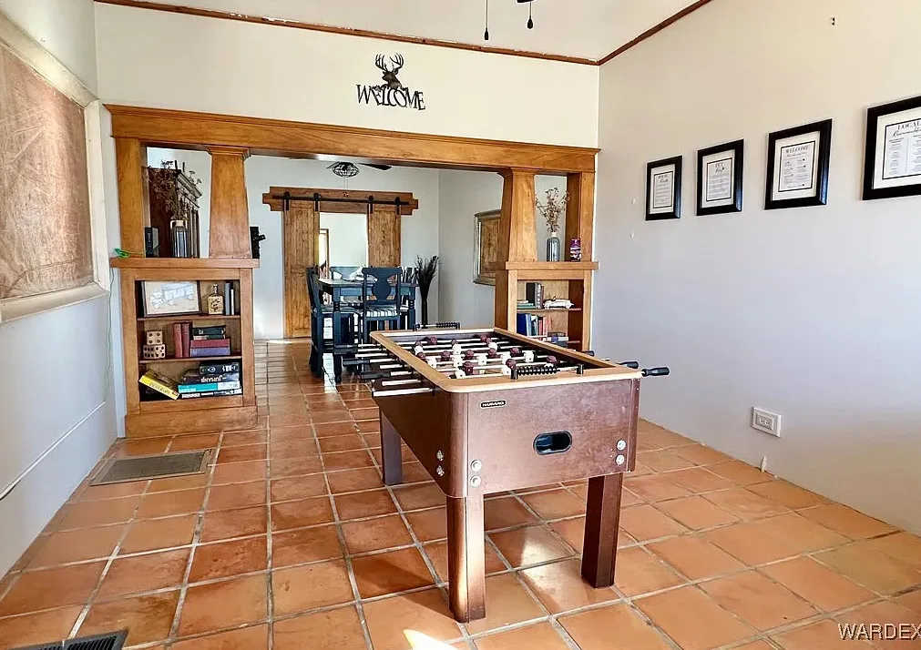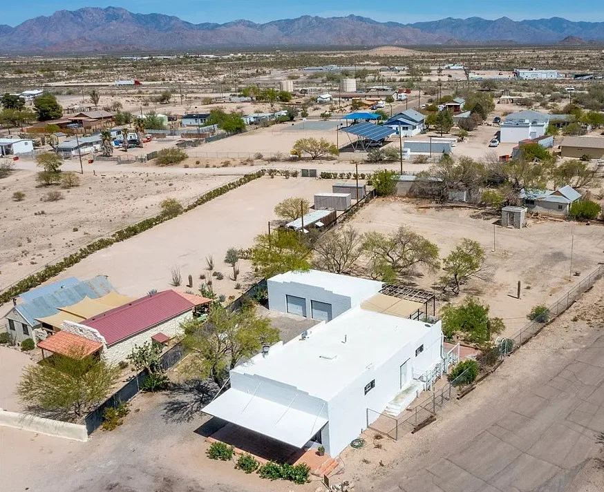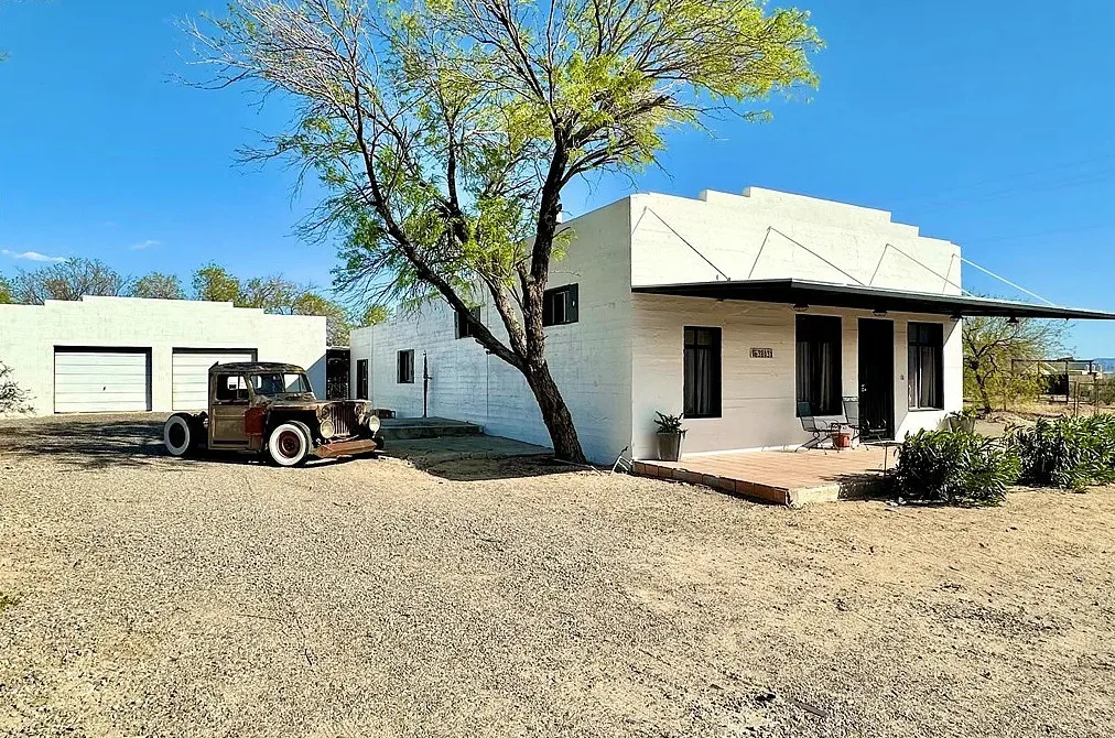 This is pretty cool! It was originally the Old Mercantile! It was built in 1940. The home is located on .59 acre in Yucca, Arizona. The house features a covered front porch, a large back patio, tile floors, built-in linen closets and a spacious kitchen. There is a spacious yard with a large detached two car garage. Three bedrooms, one bathroom and 1,800 square feet. $324,999