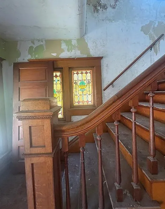 How about that stained glass and the staircase! This is definitely a fixer upper, but it has some original features. The house was built in 1012. It is located in St. Joseph, Missouri. The house features a covered front porch, wood floors, stained glass windows, baseboards, pocket doors and a nice staircase. The house has a newer roof and the third floor has all new sheetrock so it can be converted to living space. Four bedrooms, three bathrooms and 2,600 square feet. $65,000