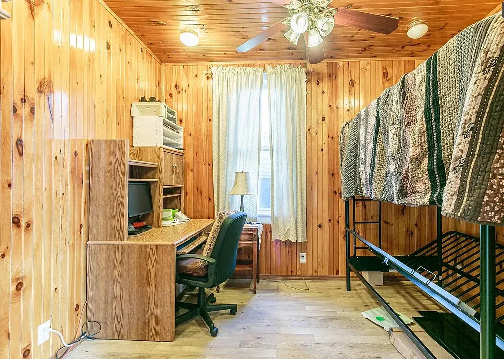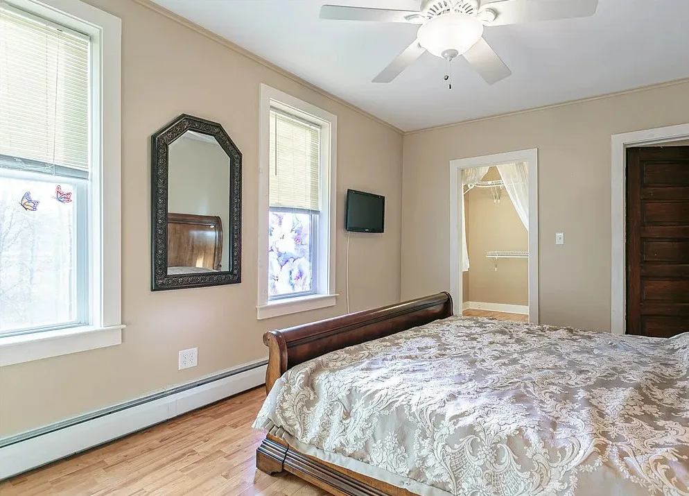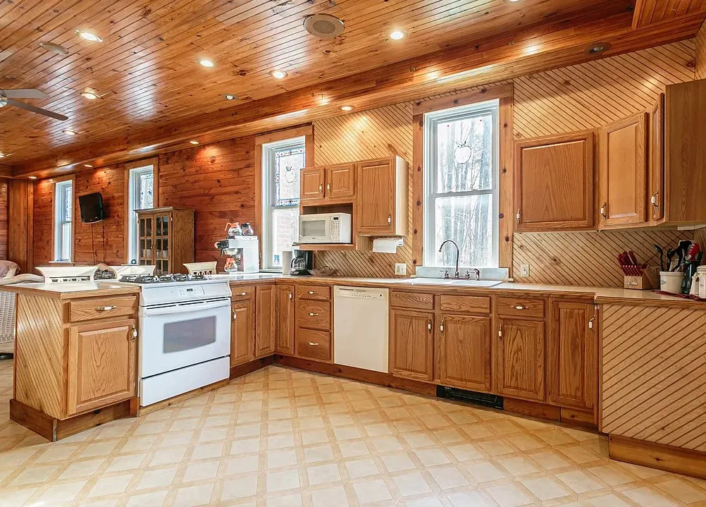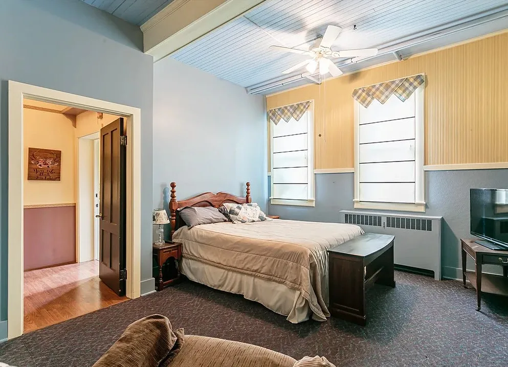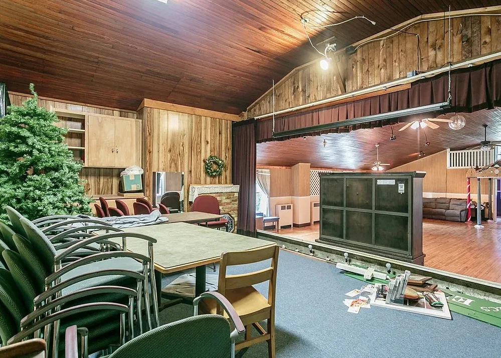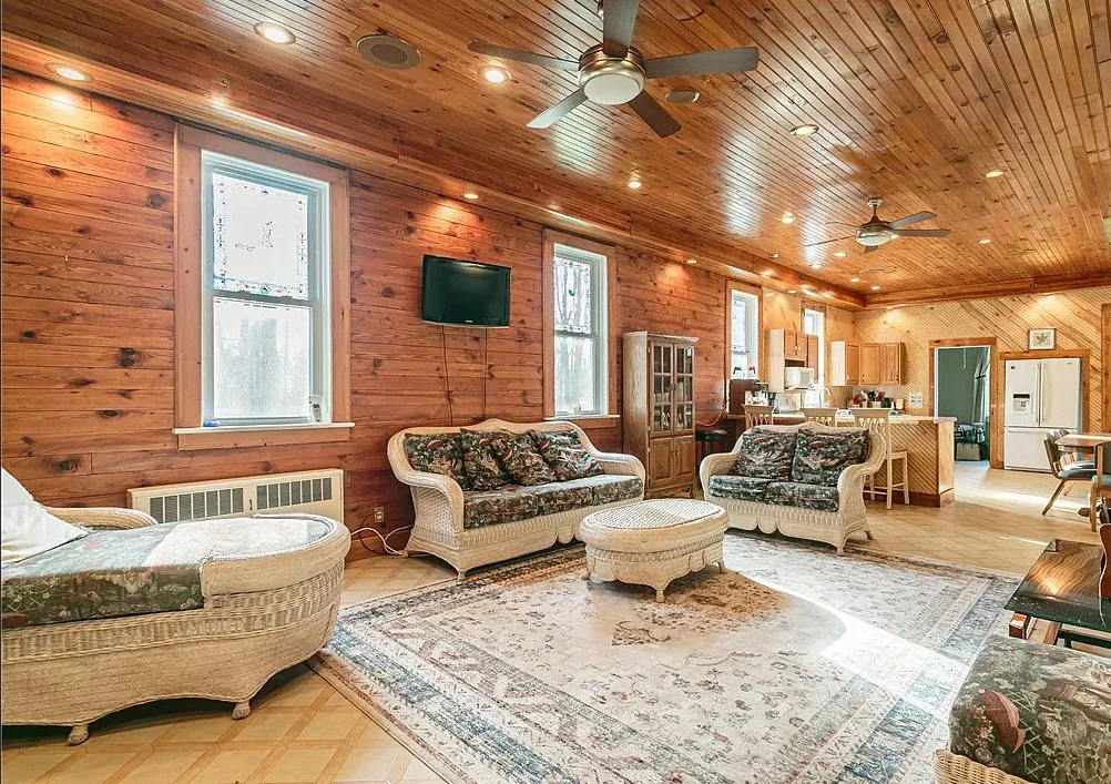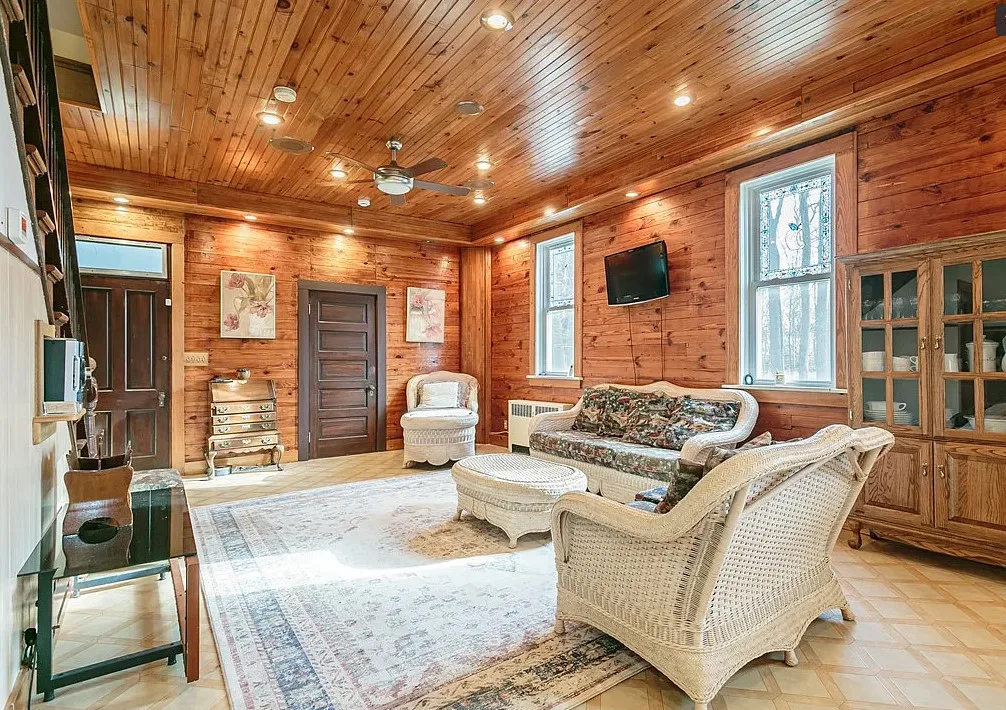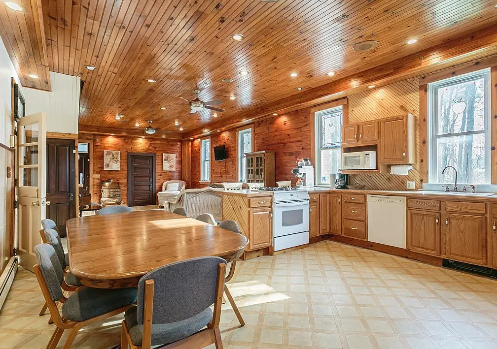 This is a former school. I like that the original chalkboards are still inside! The school was built in 1907. It is located on .9 acre in Albion, New York. This is a big building with almost 7,000 square feet and three staircases. The converted school features a spacious kitchen with bead board, original chalk boards, knotty pine and a large sunroom. There is a pond in the backyard. Nine bedrooms, six bathrooms and 6,912 square feet. $399,000