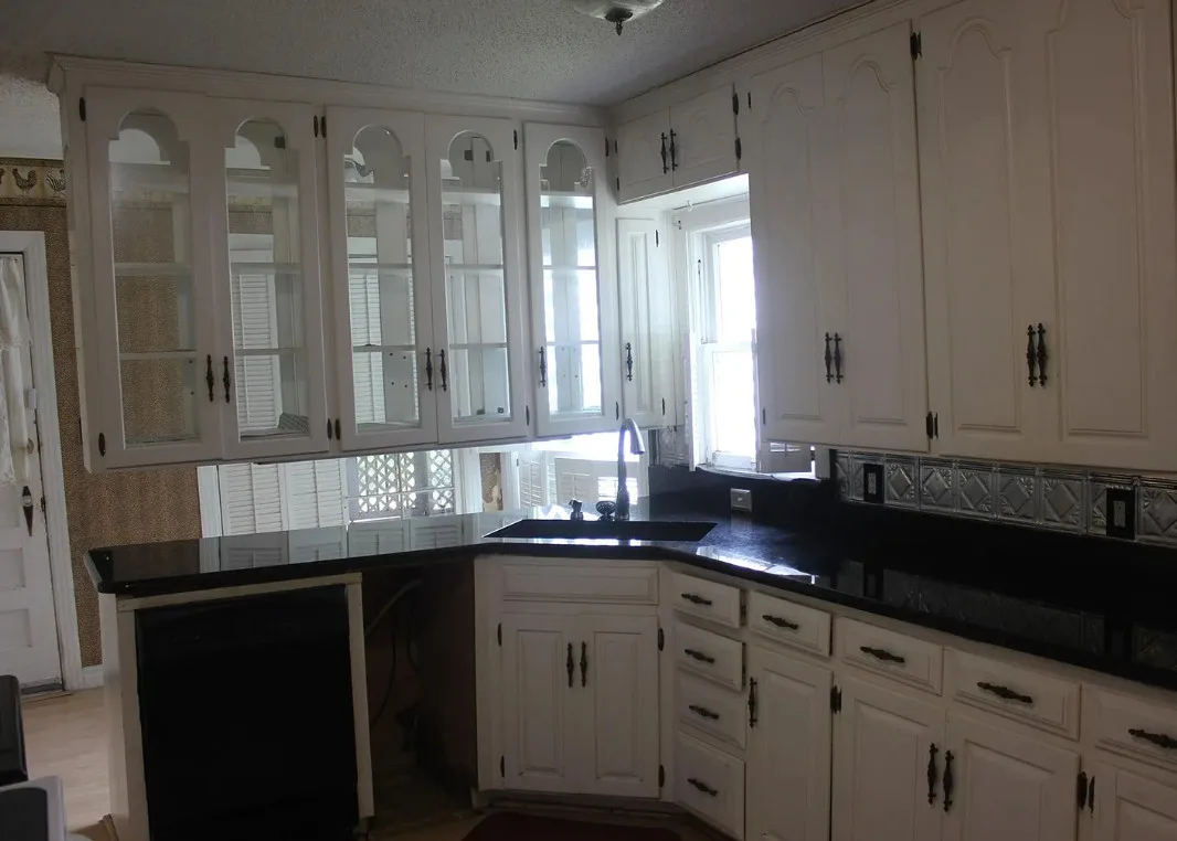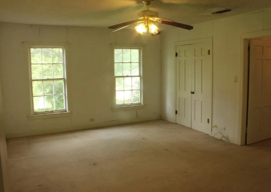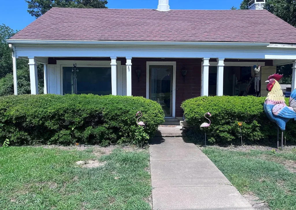 This is a cute house! Love the built-in corner cabinets! The house was built in 1945. It is located on .32 acre in Wolfe City, Texas. The house features a covered front porch, built-in corner cabinets, nice draperies, baseboards and a cute kitchen. Curious if there are wood floors underneath the carpeting. There is an attached two car garage. On the auction block! Three bedrooms, two bathrooms and 2,044 square feet. $85,000