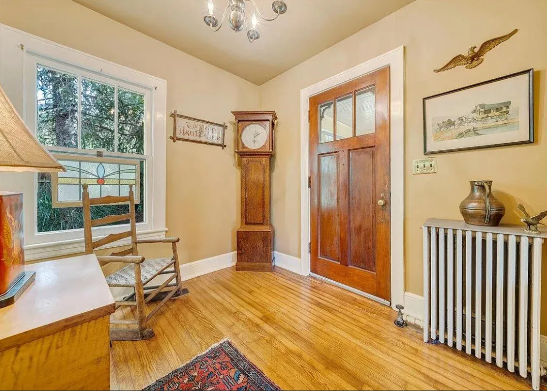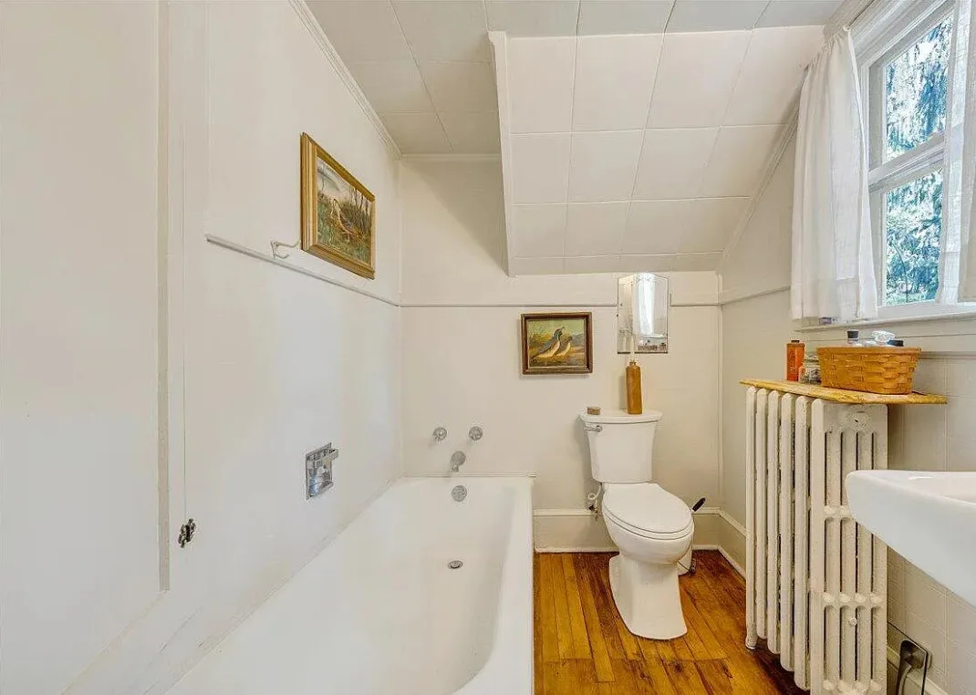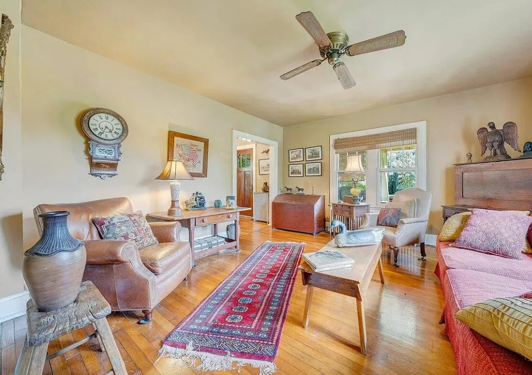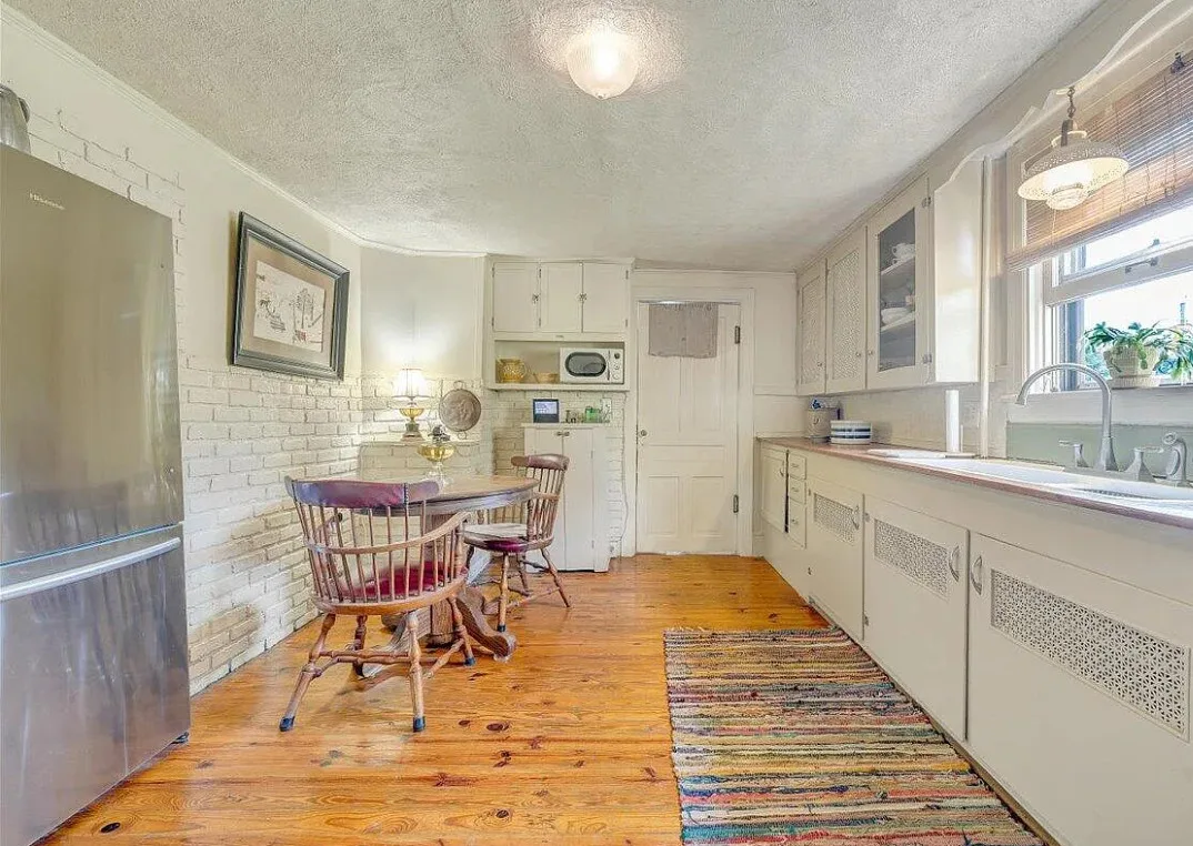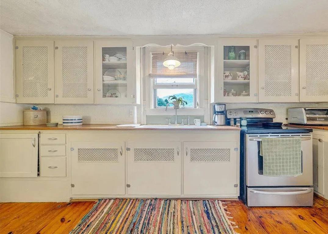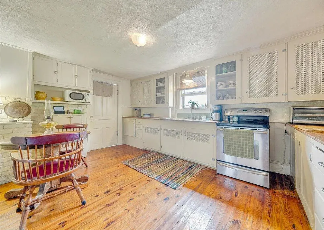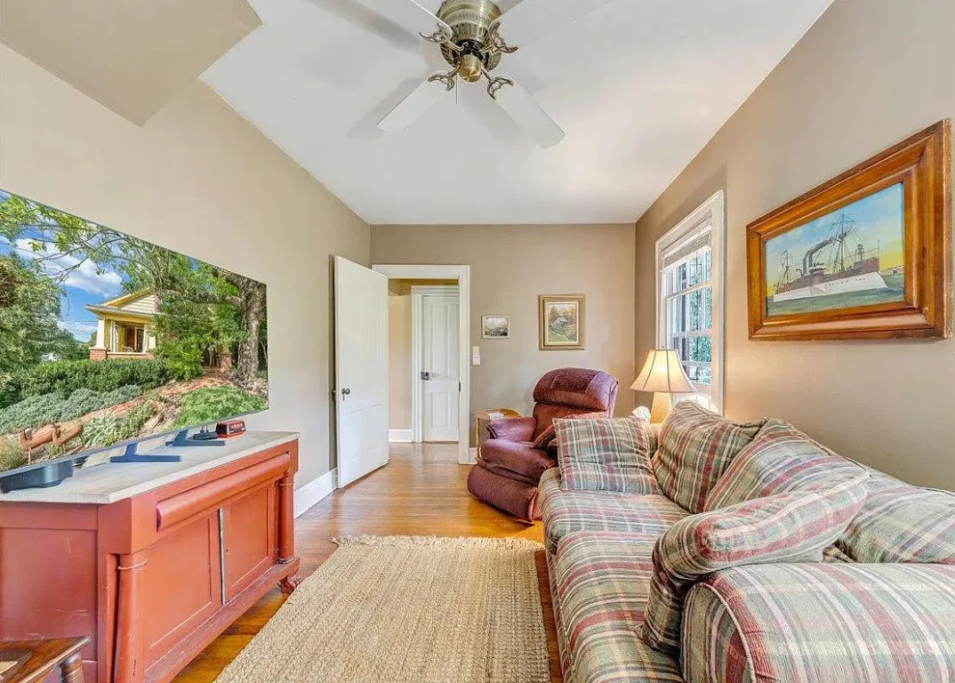 This is a nice house! Love the curb appeal! The house was built in 1919. It is located on .42 acre in Buchanan, Virginia. The house features a covered front porch, original wood floors, baseboards, spacious kitchen and an enclosed back porch. I kind of like the simplicity of the kitchen! There is a pretty backyard with a small koi pond and a detached storage building. Three bedrooms, two bathrooms and 1,532 square feet. $209,000