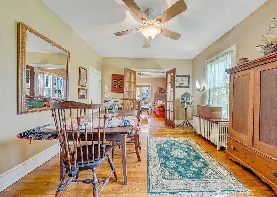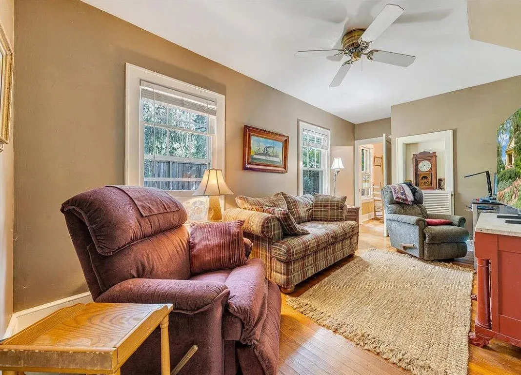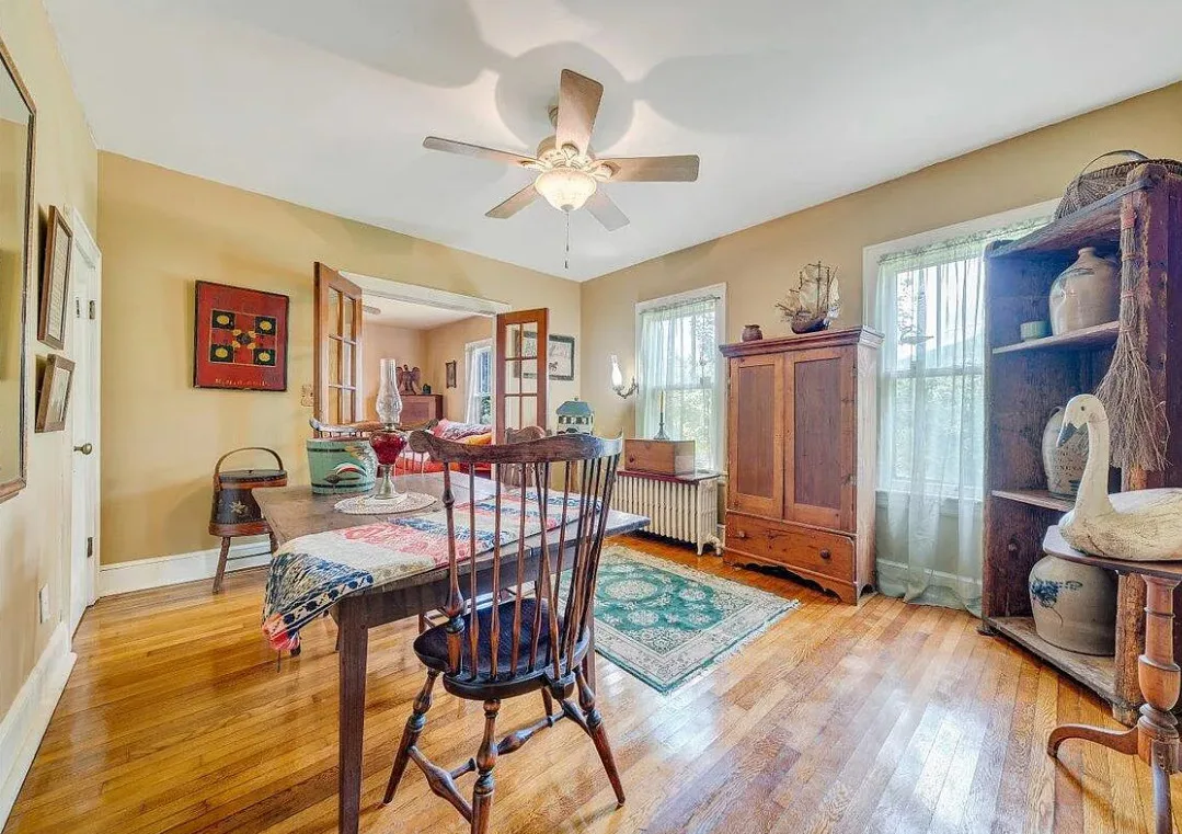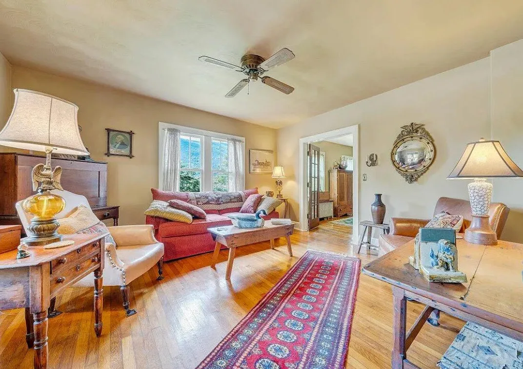First time on market in over 40 years! Step back in time to see this well cared for 1919 Cape Cod with gorgeous wood floors, wide baseboards and trim with original kitchen cabinets! The lower level offers a living room, dining room, eat in kitchen, and a family room that could be used as a lower level bedroom plus a full bath. Upstairs are 3 more bedrooms and another full bath. The outside gardens are abundant with flowers and plants, brick walking paths, as well as out buildings. Home has been purposefully canopied with trees in front to cut down on need for air conditioning (window units). Come see this beautiful home and imagine yourself living here!