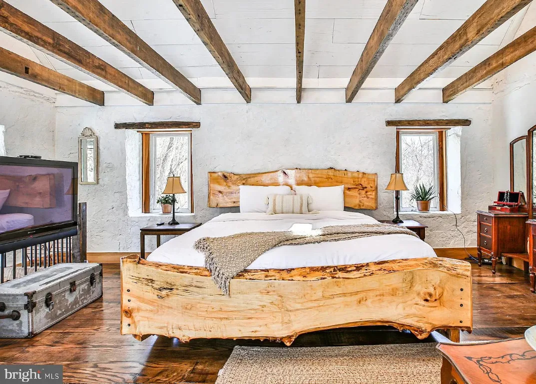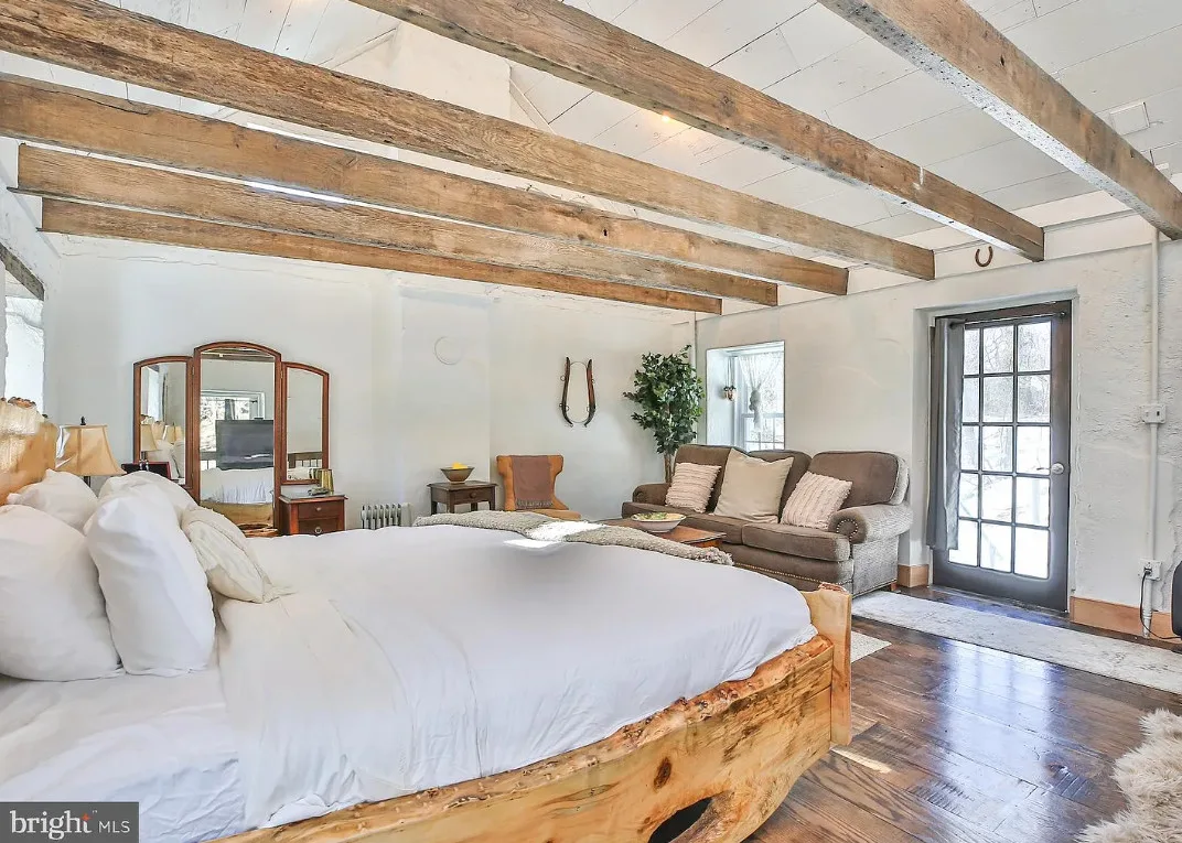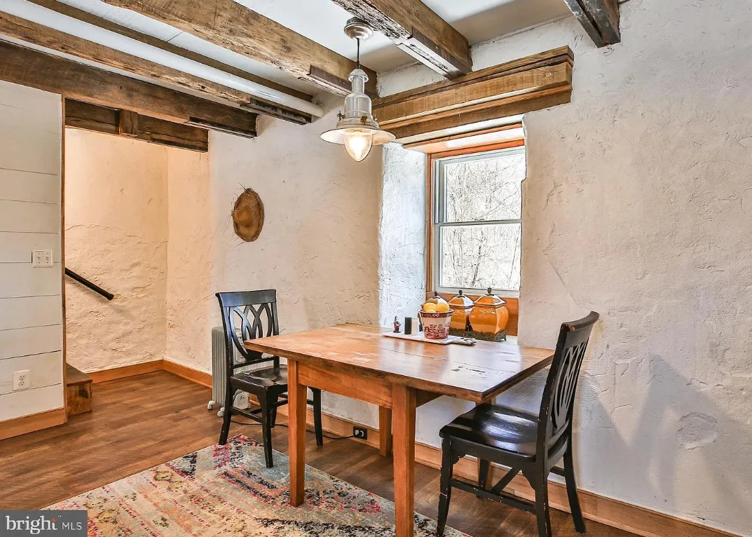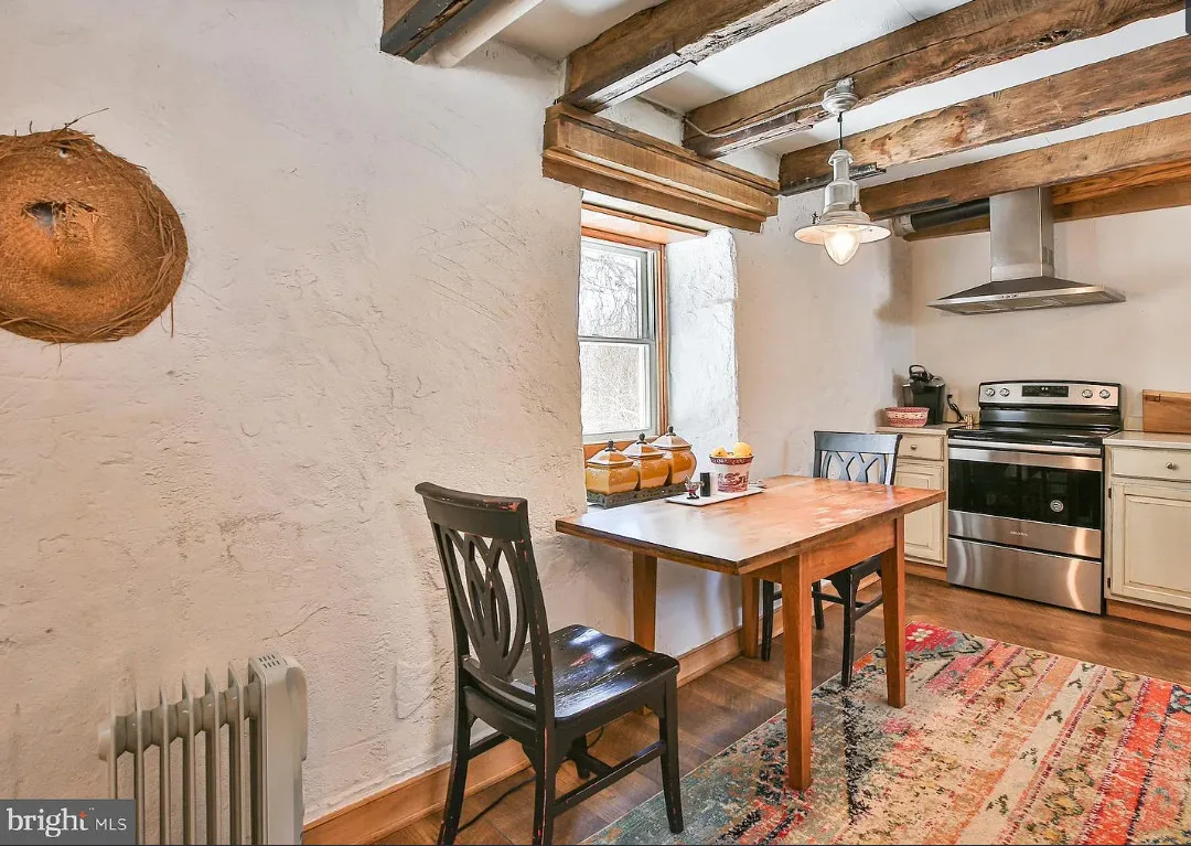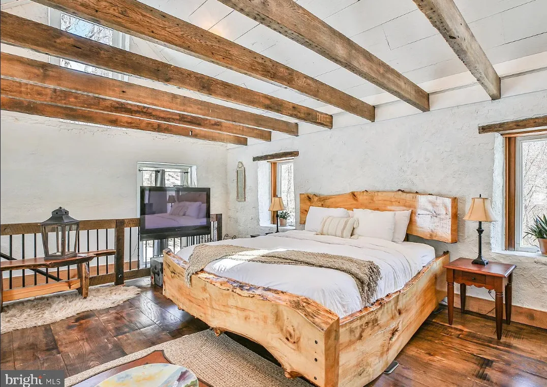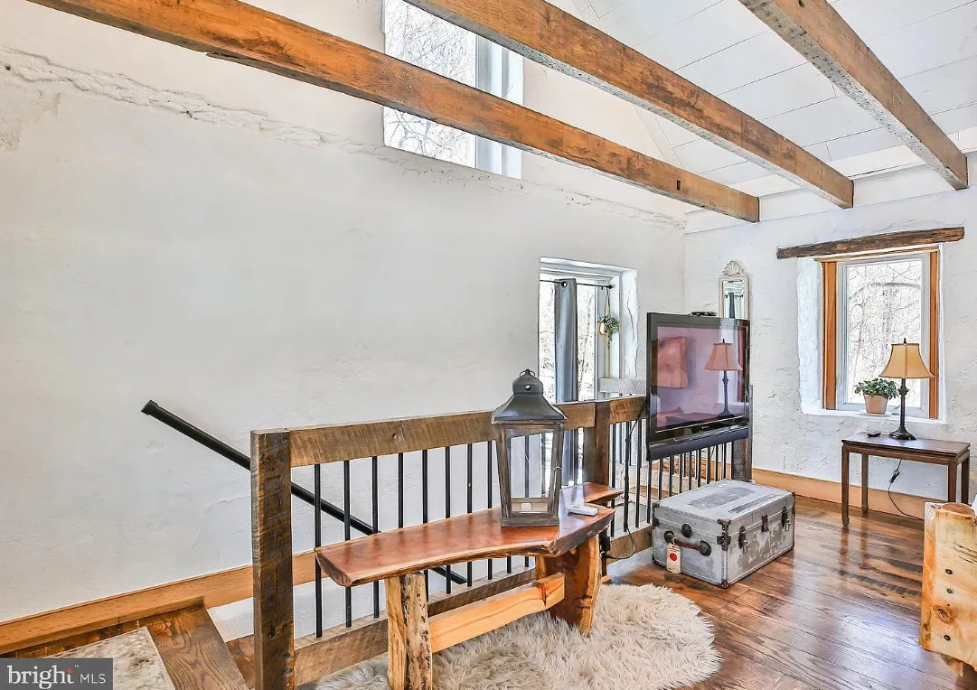 This stone cottage is beautiful! There is so much natural light! I want to see the treehouse they talk about in the listing! The house was built in 1850. It is located on 23.07 acres in Leesburg, Virginia. The house features a stone exterior, vaulted ceiling, wood floors, exposed beams, baseboards and a lot of natural light. One bedroom, one bathroom and 520 square feet. $724,500