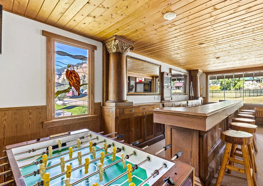 This former hotel and bar was built for local miners. The property is being sold fully furnished. The hotel was built in 1900. It is located in Monarch, Montana. The house features double front porches, wainscoting, wood ceilings, a large bar and a spacious kitchen. The back patio overlooks Belt Creek. Five bedrooms, four bathrooms and 3,000 square feet. $675,000