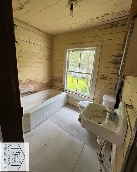 This deal of the day has some nice acreage! Not far from the Blue Ridge Parkway! Pretty area! The house was built in 1906. It is located on 15 acres in Woolwine, Virginia. The house features a pretty brick walkway, a covered front porch, wood floors, baseboards, a screened in back porch, beadboard, wainscoting and six fireplaces. There is a view of a covered bridge from the house. Four bedrooms, two bathrooms and 2,860 square feet. $159,000