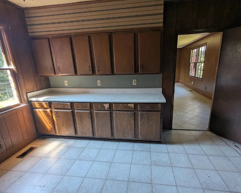 This house looks like a diamond in the rough! And it’s a big house with 5 beds/3 baths. The house was built in 1935. It is located on .63 acre in Talladega, Alabama. The house features a spacious kitchen, some wood floors, brick fireplace, crown moulding, picture rails, baseboards, built-in china cabinet and an attic. Five bedrooms, three bathrooms and 2,942 square feet. $160,000