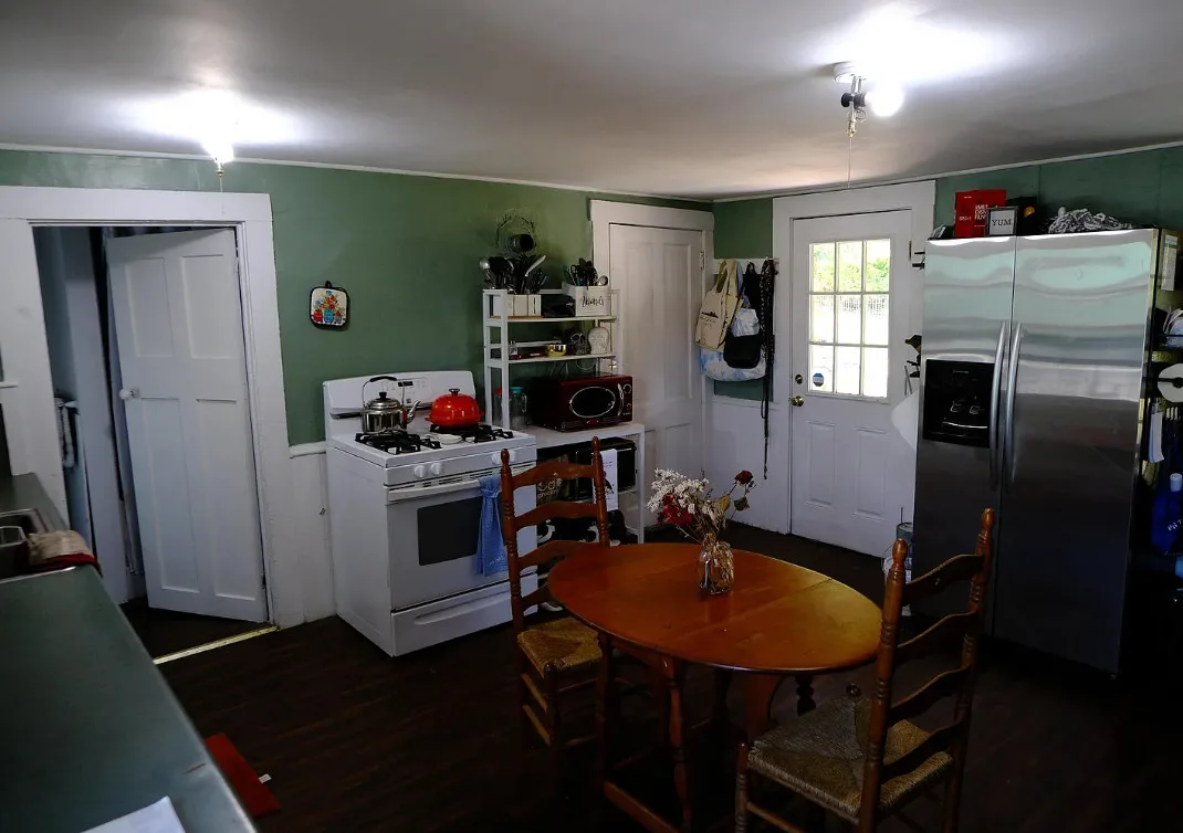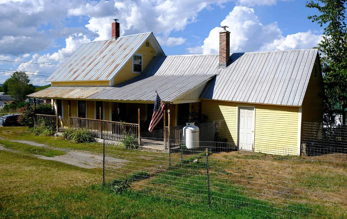 This house looks like a diamond in the rough! The house was built in 1900. It is located on .34 acre in Lyndonville Village, Vermont. The house features a covered front porch, wood floors, some wide plank wood floors, baseboards, crown moulding and bead board. Curious why they white washed some of the floors, or were they trying to remove paint. This was originally constructed to house railroad workers. Three bedrooms, two bathrooms and 1,112 square feet. $165,000