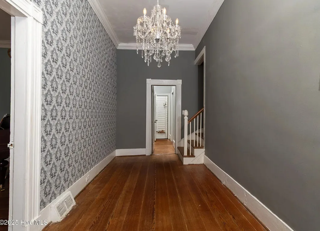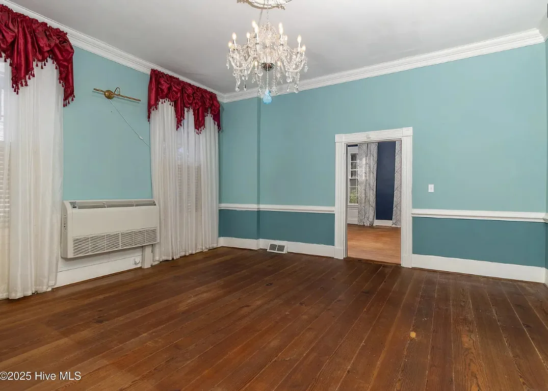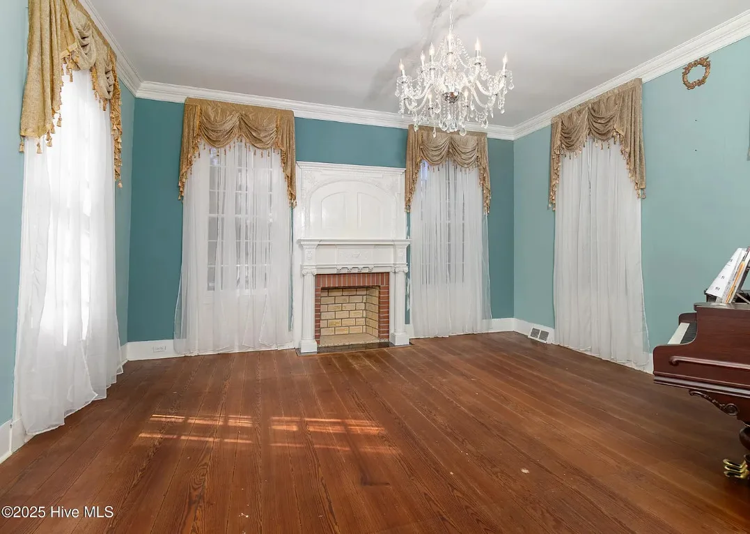 The Henry Beasley House is back on the market! Some of you might remember this house. I did a video tour of this house a few months back. The potential buyers financing didn’t go through. The house was built in 1820. The house is located on .47 acre in Colerain, North Carolina. I would go back to the double porches out front. The house features wood floors, wide baseboards, crown moulding, crystal chandeliers, chair rails and a leaded glass door. There are brick pathways and a detached carriage house. Four bedrooms, two bathrooms and 3,040 square feet. $217,000 New price: $207,000 New price: $199,000