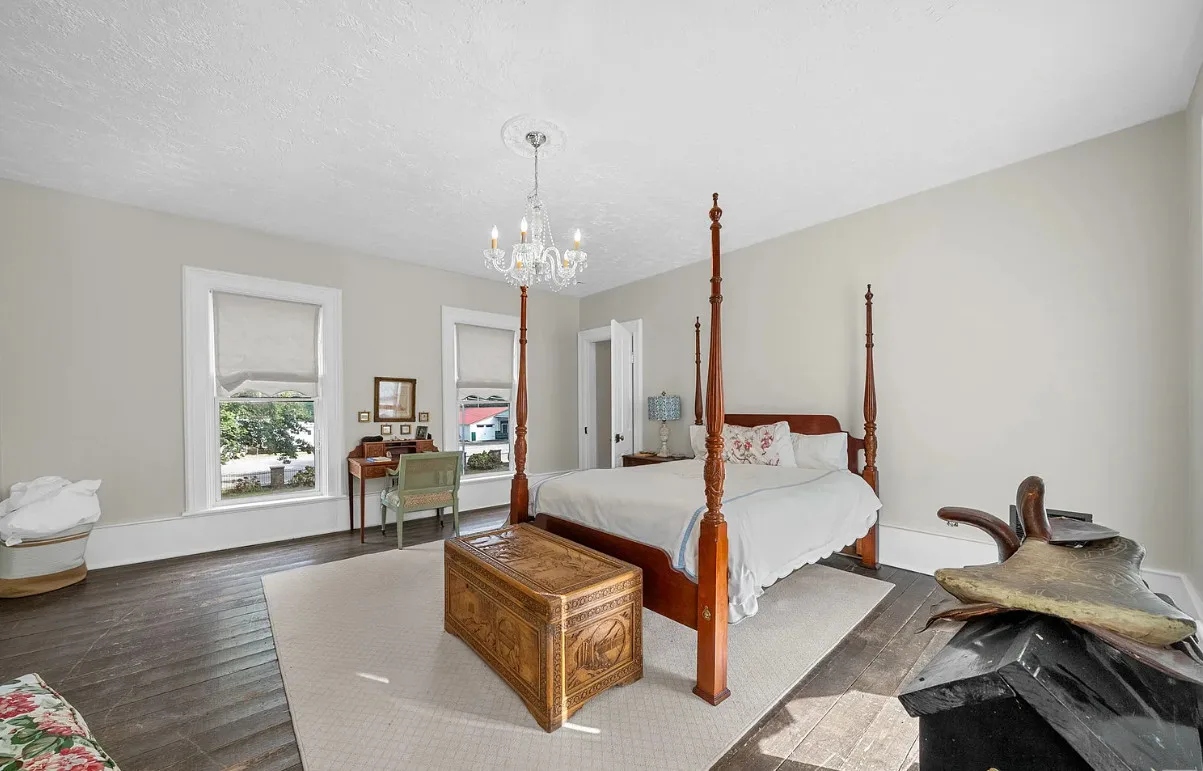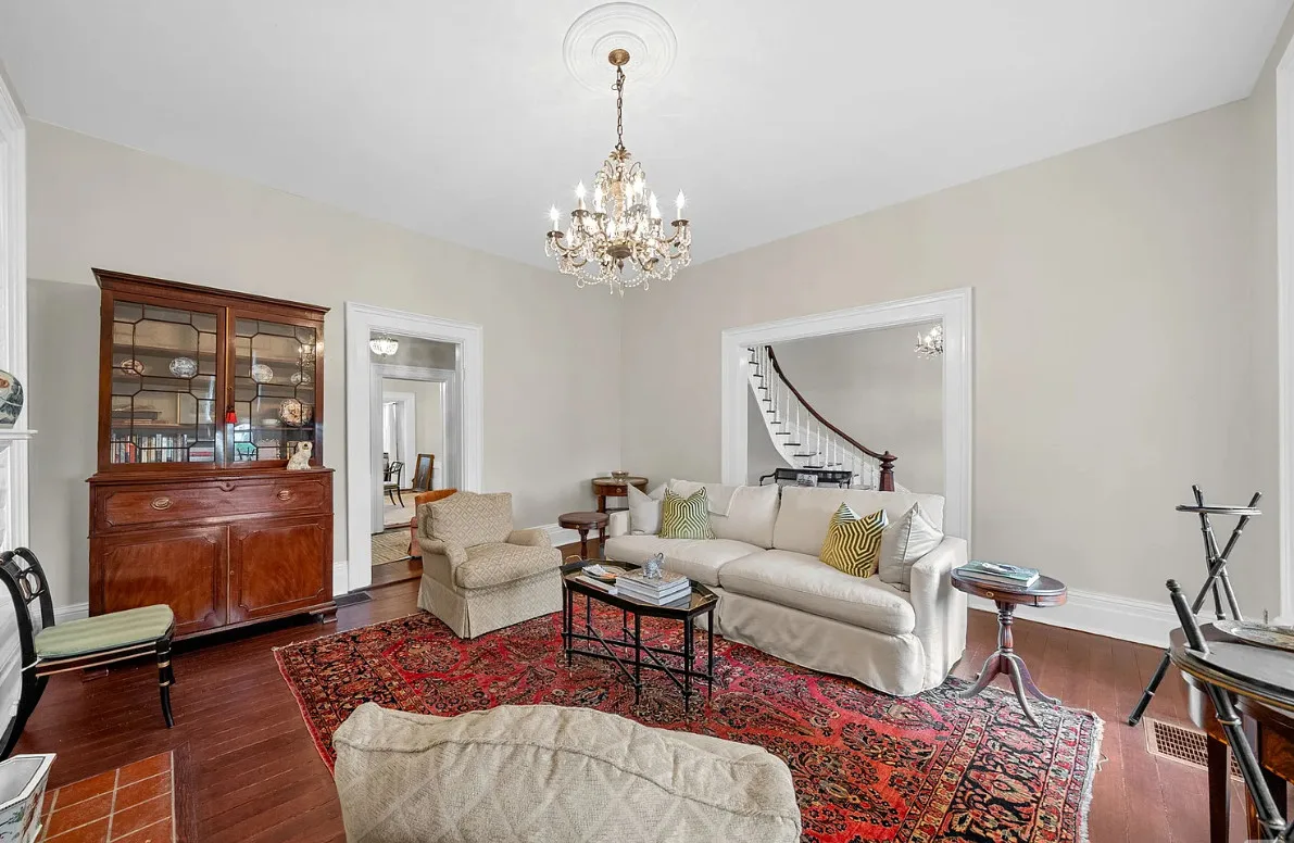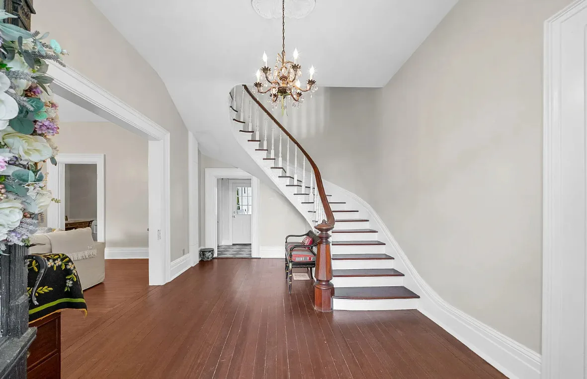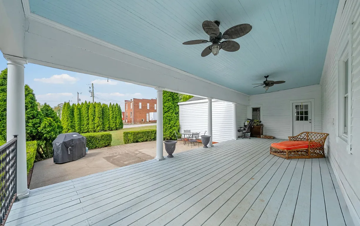 This is a stately looking house! Nice porches! The house was built in 1879. It is located on .9 acre in La Fayette, Kentucky. The house features multiple covered porches, a large patio, wood floors, wide baseboards, a spacious kitchen, wainscoting, a grand staircase, ceiling medallions and pretty chandeliers. Three bedrooms, two bathrooms and 2,576 square feet. $319,900