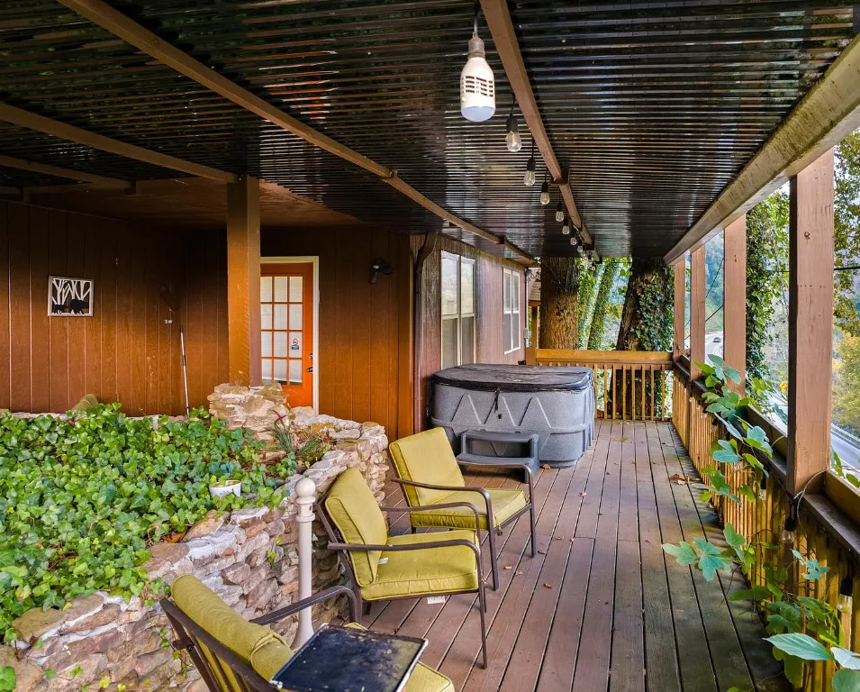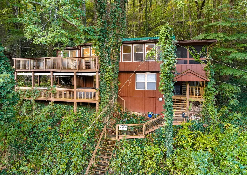 Reminds me of a treehouse! This home is being sold fully furnished. It has a neat setting overlooking the Little River in the Smoky Mountains. The house was built in 1940. It is located on .43 acre in Townsend, Tennessee. The house features multiple decks, a hot tub, stone fireplace, bead board and an updated kitchen. The house is situated near multiple local attractions. Two bedrooms, two bathrooms and 1,668 square feet. $345,000