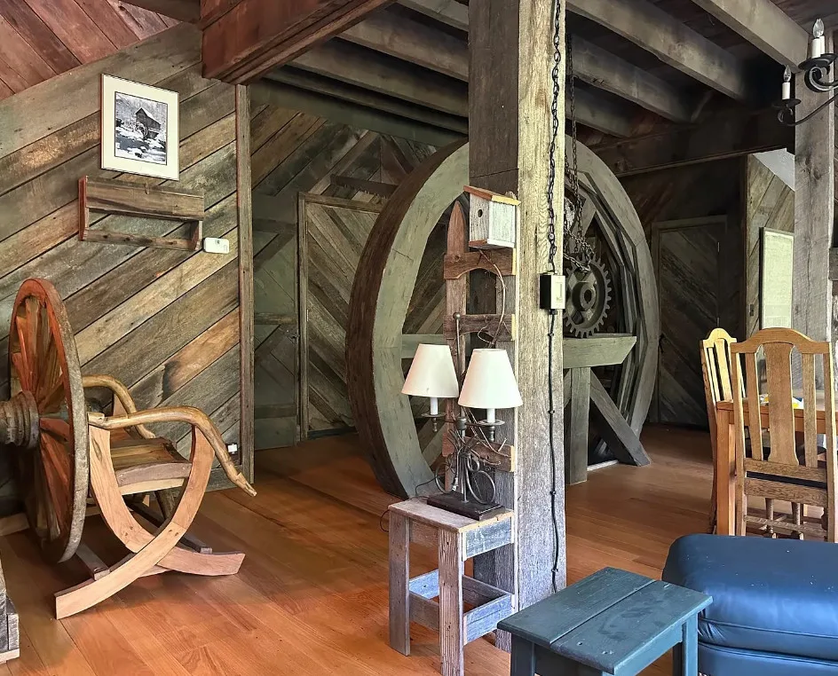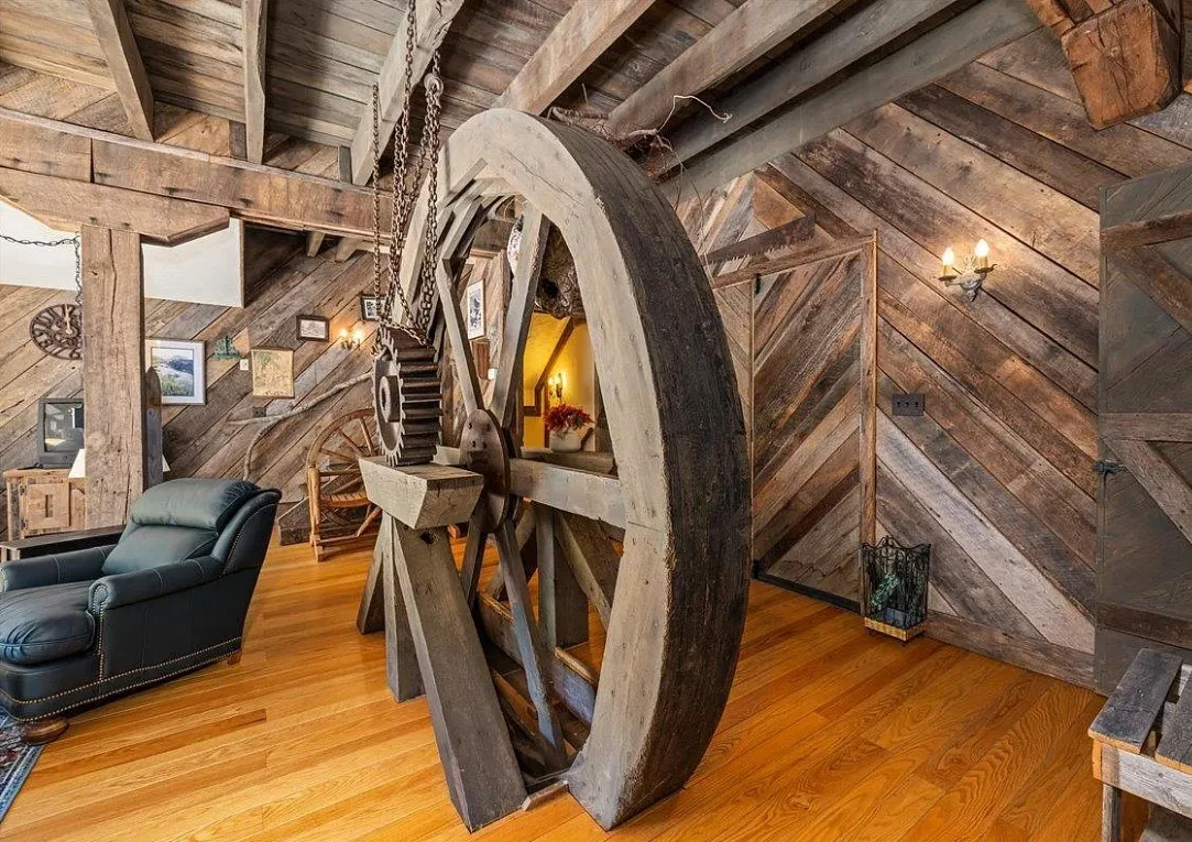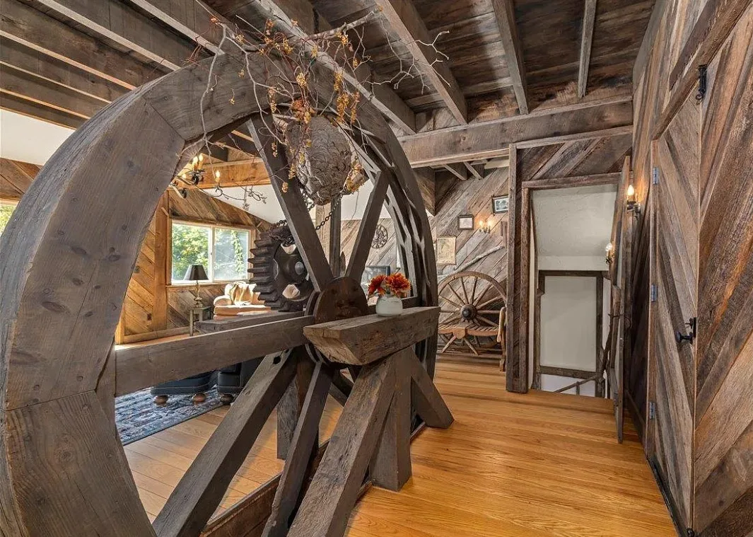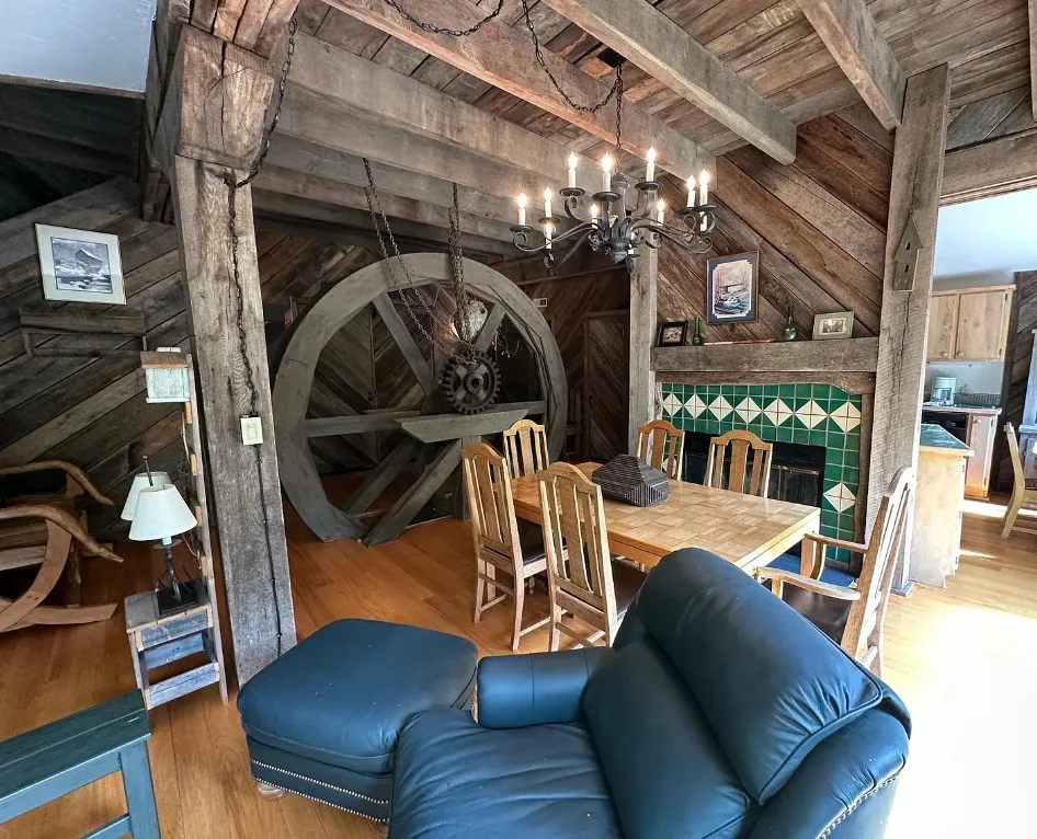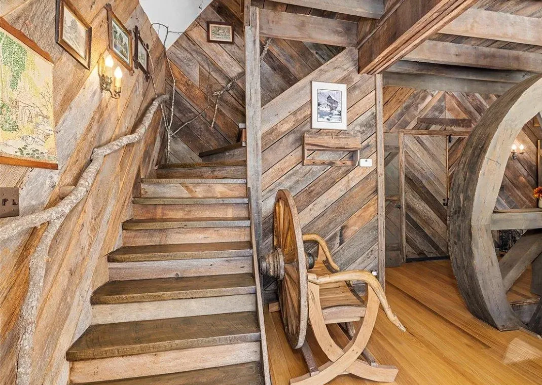 Take a look inside this old mill! This is pretty cool! Love how they kept the old wheels! The Realtor provided no information, but maybe they aren’t finished with the listing. I did some digging. This was originally known as Smiley’s Mill. Thomas Smiley was a farmer and owner of Roller Mills at Moffatt’s Creek in 1899. It was a flour mill. It later became Lucas Mill. It burned in the 1920’s and was rebuilt. The interior looks like three floors of living space and then a basement. This mill was built in 1920. it is located on 3.48 acres in Middlebrook, Virginia. Three bedrooms, three bathrooms and 2,160 square feet. $668,000