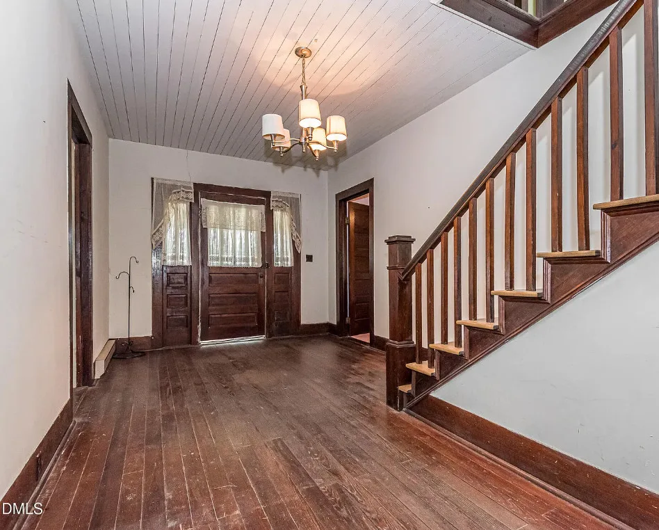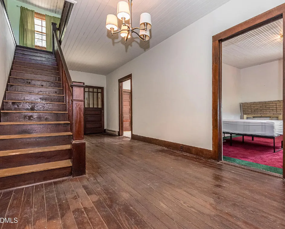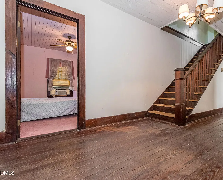 This house has a great porch! How about that huge upper hall?! I would make a sitting area up there. The kitchen is big too! the house was built in 1922. It is located on 2.26 acres in Roseboro, North Carolina. The house features a nice front porch, large country kitchen, wainscoting, some wood floors, nice staircase, baseboards, huge upper hall, bead board and solid wood doors with original hardware. Four bedrooms, one bathroom and 2,000 square feet. $250,000