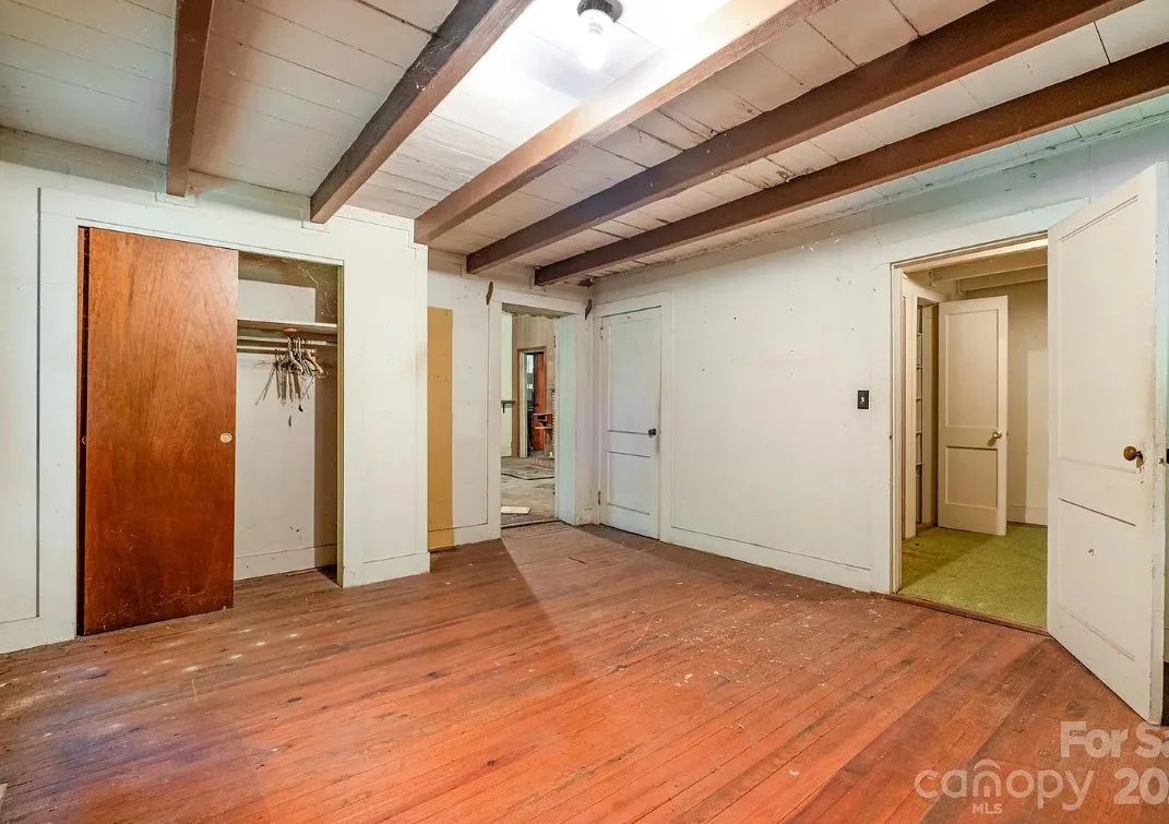 Fixer upper alert! Nice acreage with this one! There are some details inside that make this one a bit of a diamond in the rough! The house was built in 1870. It is located on 8.06 acres in Shelby, North Carolina. The house features a wrap around front porch, two brick fireplaces, knotty pine and exposed beams. There are two old outbuildings on the property. Two bedrooms, one bathroom and 1,668 square feet. $112,000