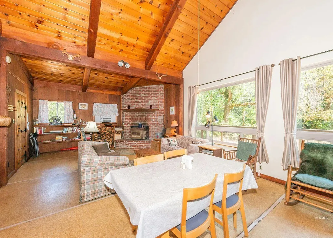 Really nice acreage with this one! Pretty scenery! The house was built in 1937. It is located on 30.46 acres in Big Bar, California. The house features a large deck, knotty pine, brick fireplace, exposed beams and wood ceilings. This house could use some updating and undoing of past renovations. Two bedrooms, two bathrooms and 1,311 square feet. $295,000