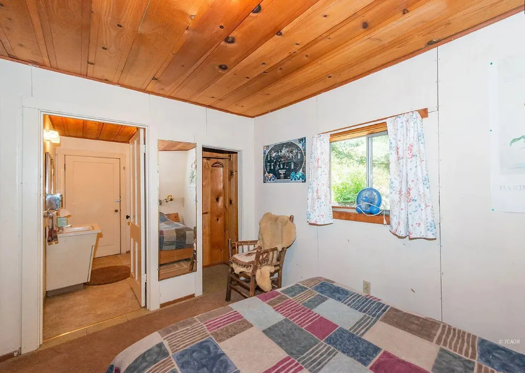 Step back in time with this classic 1940s vintage cabin, expanded in 1975, nestled on 30.46 acres across two separate parcels. This unique property offers a rare blend of rustic charm and practical amenities, perfect for those seeking a peaceful lifestyle surrounded by nature. The cozy 2-bedroom, 2-bath home with 1,311 approx sqft features beautiful knotty pine vaulted ceilings, with a wood stove creating a warm and inviting atmosphere. Relax year-round in the enclosed covered sun porch, both offering views of the lush landscape. Water is abundant here with ponds, a gushing spring, water rights to Price Creek, and a ditch that flows through the property providing ample irrigation possibilities. The open fields are ideal for grazing livestock or simply enjoying the open space and privacy. A dedicated workshop provides space for projects, storage, or hobbies, making this property as functional as it is scenic. Whether you’re looking for a homestead, a getaway, or land with multiple water sources and endless potential, this property delivers. Vacant land parcel address is 490 FS Rd 33N44.