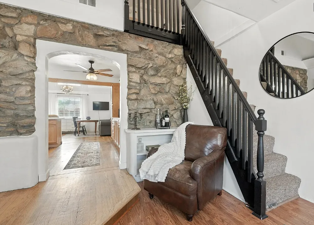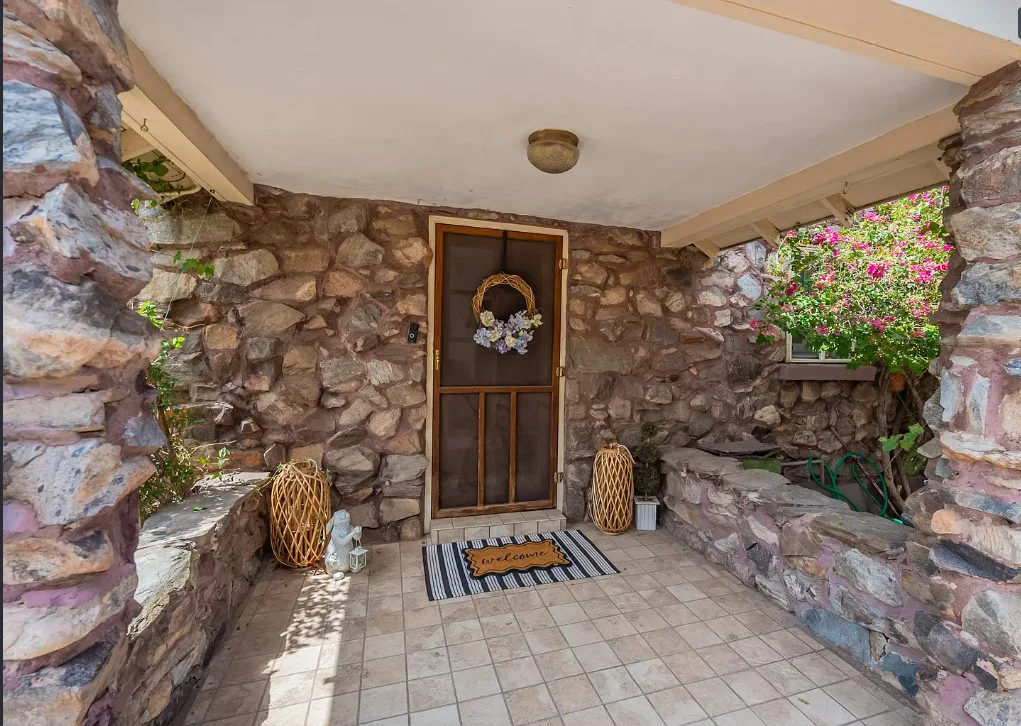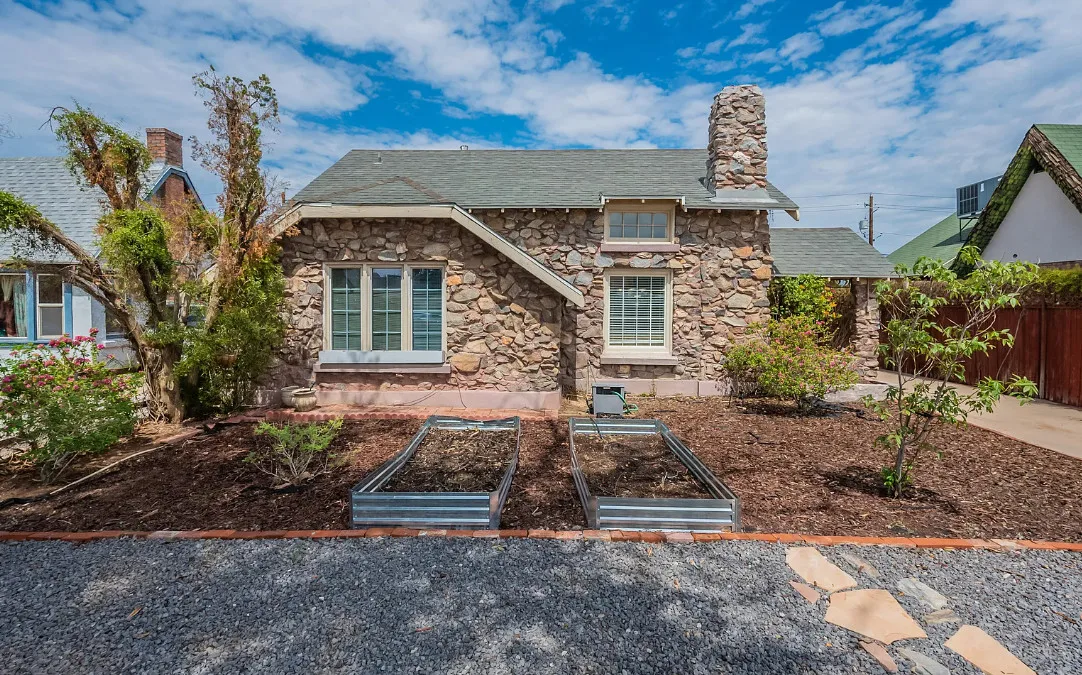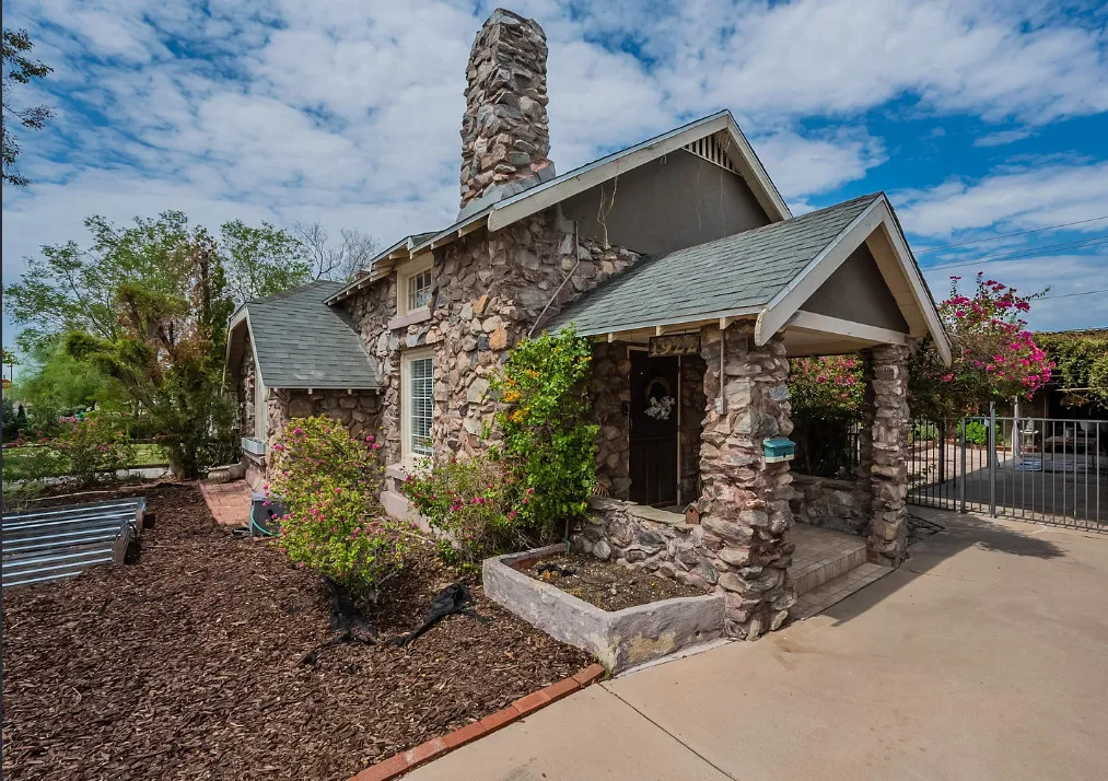 I love stone houses! This one has a great backyard! The house was built in 1930. It is located in Phoenix, Arizona. The house features a small covered front porch, wood floors, vaulted ceiling, a lot of natural light and an updated kitchen. The backyard is fenced with covered patios and areas for entertaining. The home is situated in the Villa Verde Historic District. Two bedrooms, one bathroom and 1,322 square feet. $425,000