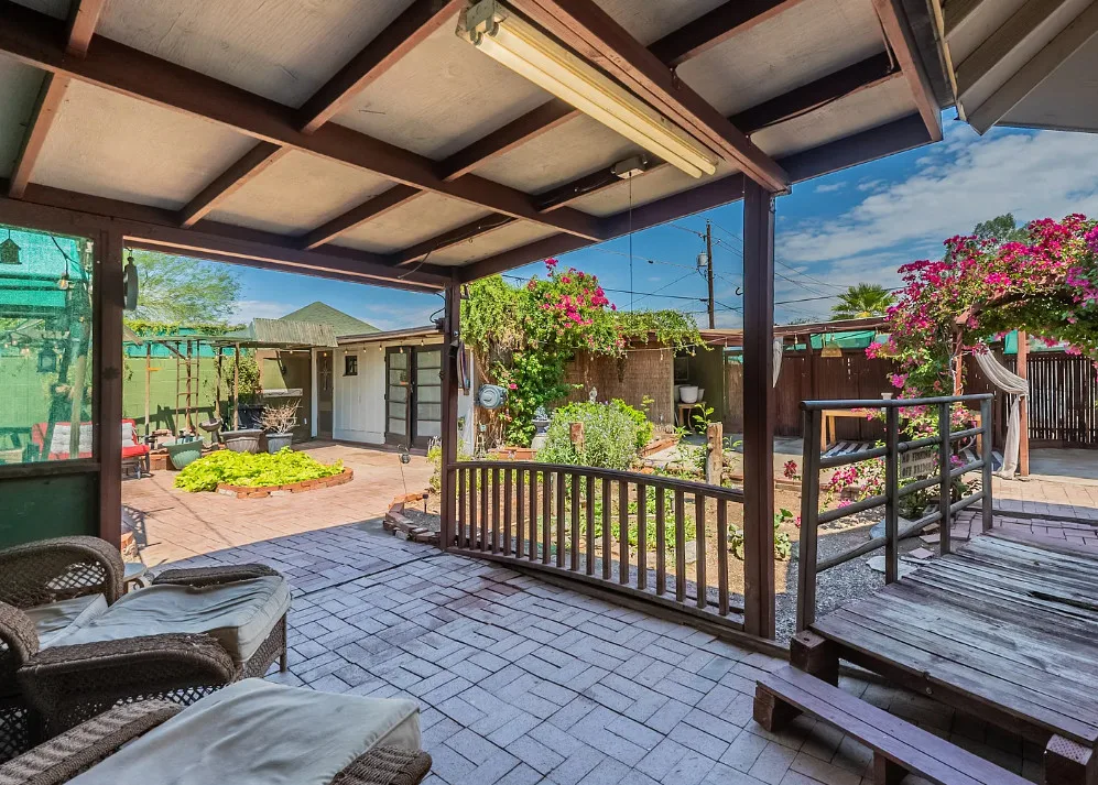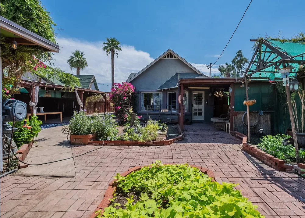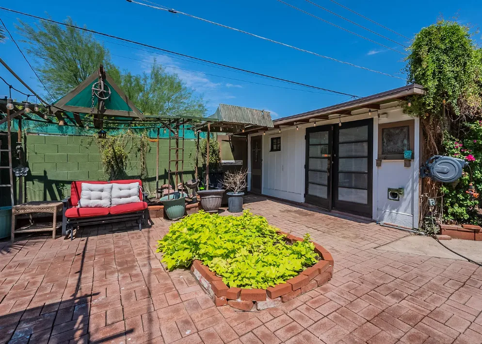This Historic dollhouse has been tastefully updated while maintaining the historic charm. 2 bedroom 1 bath home with spacious living areas. Kitchen remodeled and open to eating/sitting area stainless appliances, open shelving, quartz countertops and breakfast bar. Bathroom is remodeled with walk in shower. The backyard is a gardeners dream, quaint walkways and lush landscaping. Do not miss the additional outside building that can be a garage, workshop or converted to an ADA. All of this near downtown sports, cultural events and near freeways. Villa Verde Historic District in Phoenix, Arizona, is a historically significant residential neighborhood developed between 1928 and 1945, renowned for its diverse and unique architectural styles, primarily Period Revival homes .