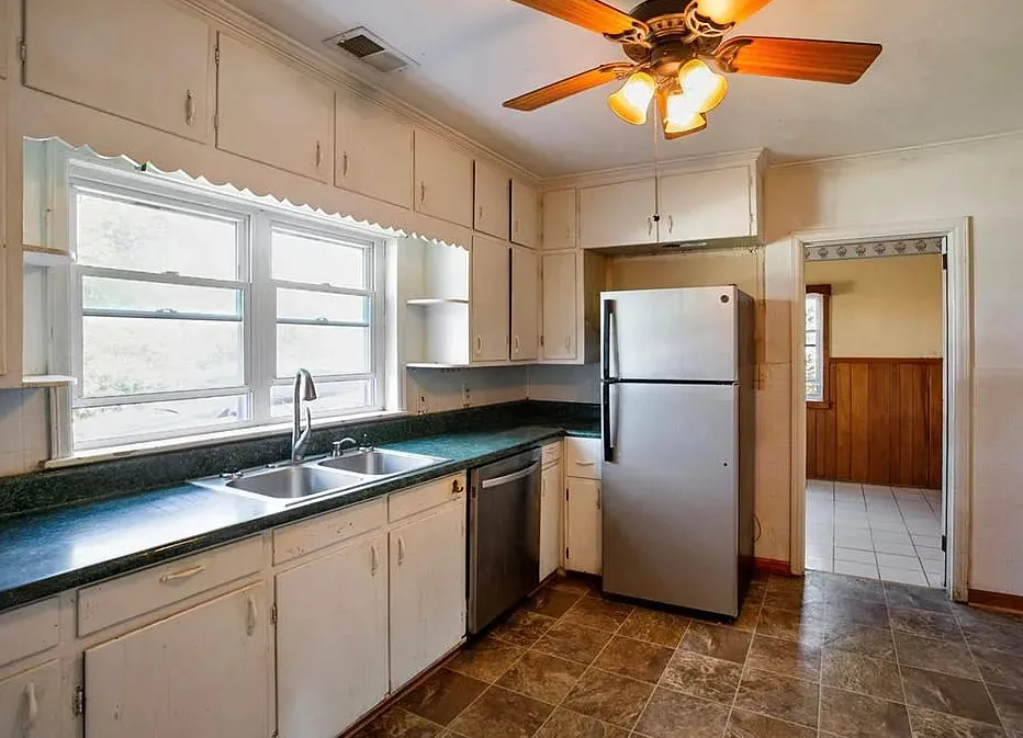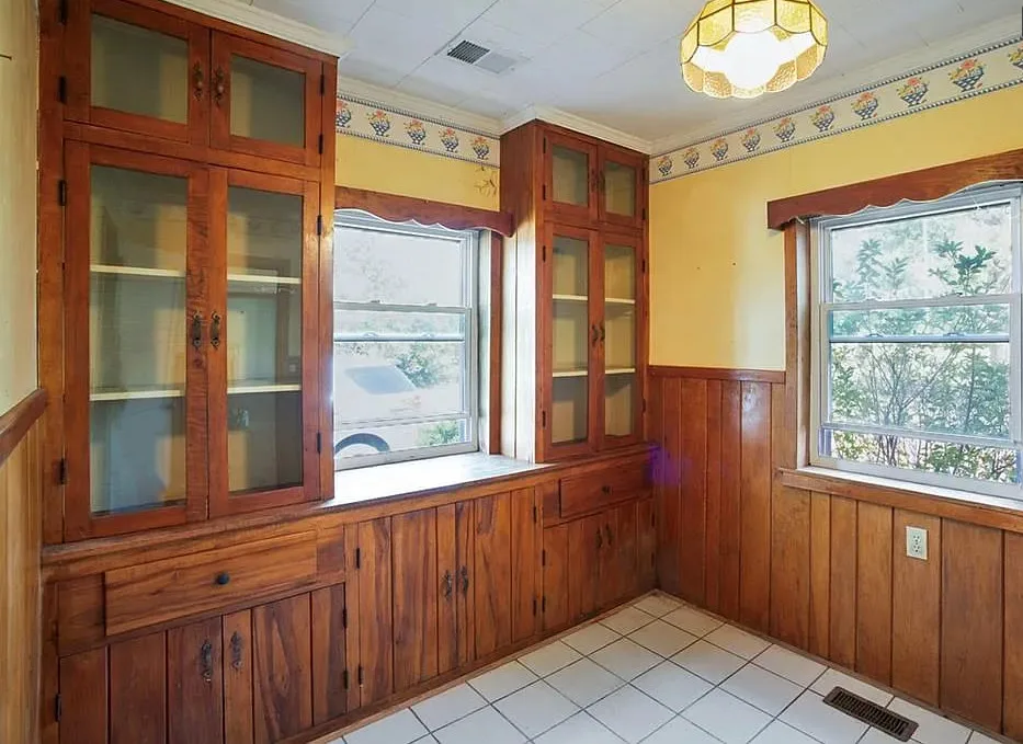 I love all of the outbuildings this property has! Wish they showed inside them all. The house was built in 1940. It is located on five acres in Edison, Georgia. The house features some original wood floors, bead board, baseboards, built-ins and knotty pine. The house could use a bit of cosmetic work. There are multiple outbuildings on the property, including a garage. Four bedrooms, two bathrooms and 2,521 square feet. $234,000