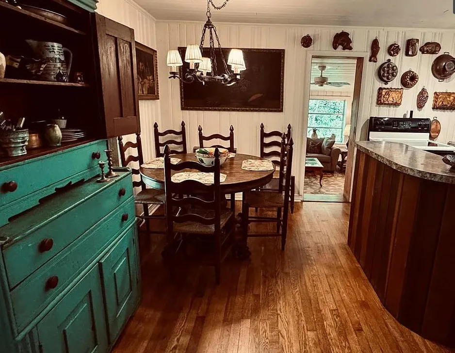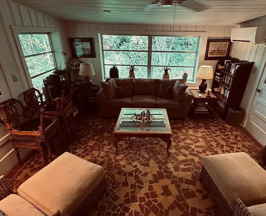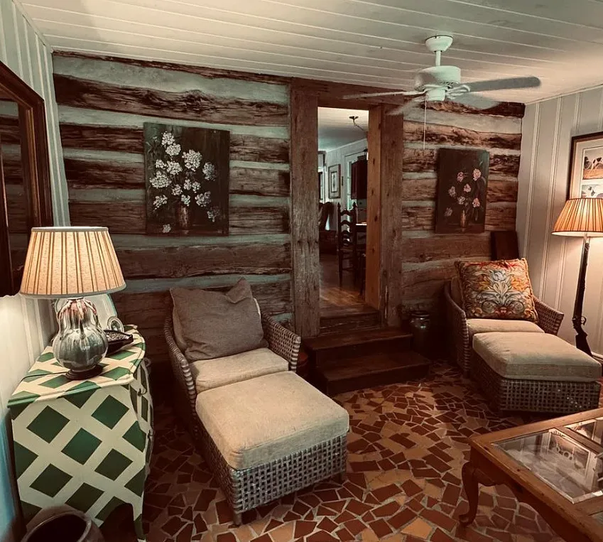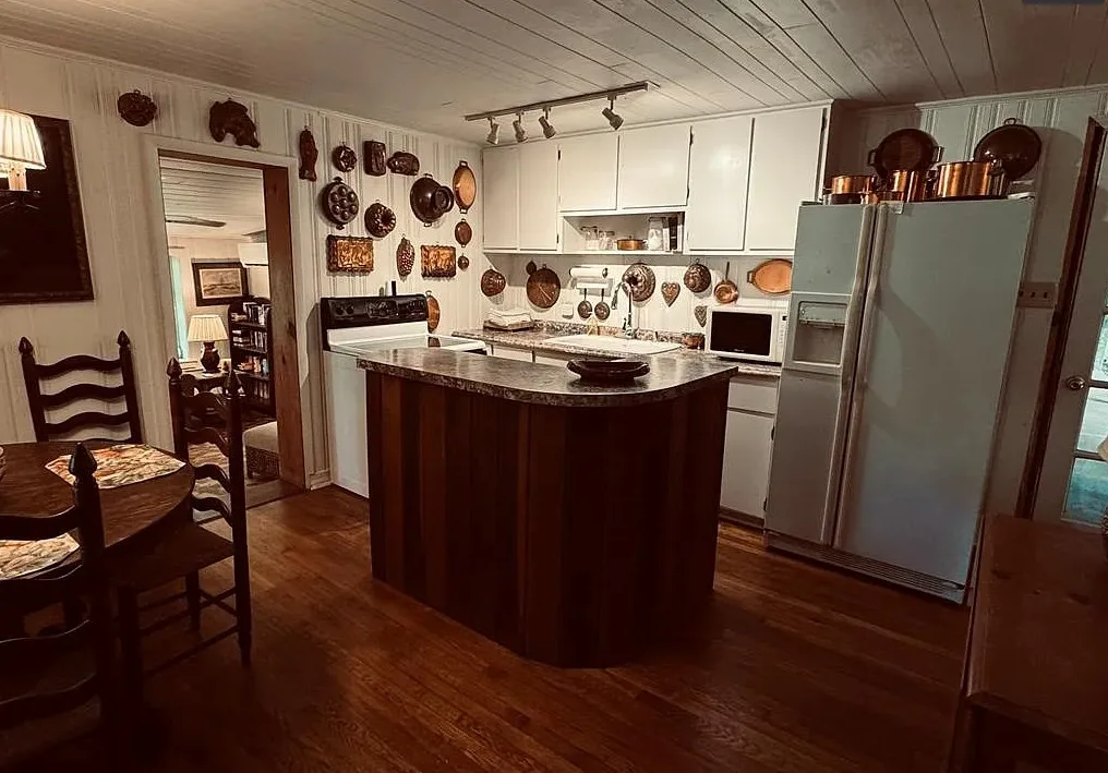 This is beautiful! This started off as a log cabin, then it was added onto in the 1960’s. The cabin was built in 1850. It is located on 1.95 acres in Whittier, North Carolina. The house features a stone chimney, dog trot breezeway, wood floors, bead board, stone fireplace and a vintage tile bathroom. The property is surrounded by US Forest Service land and there is bold creek at the bottom of the property. Two bedrooms, two bathrooms and 1,076 square feet. $375,000 New price: $360,000 New price: $355,000