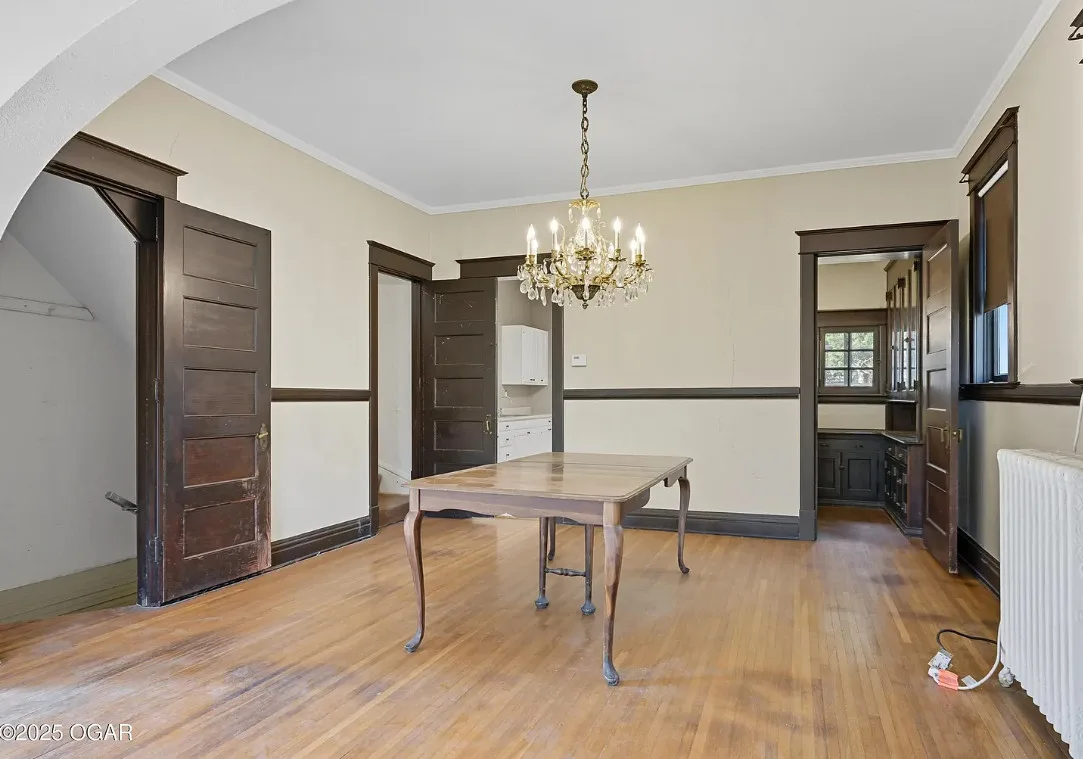 Historic Schifferdecker Gardener’s House. Step into Joplin’s history with this stunning full-brick home, beautifully set on a corner lot in the heart of Murphysburg. Framed by original iron fencing and shaded by a majestic pecan tree, this residence offers timeless elegance. Updates include a brand-new roof in 2025 and a boiler heating system replaced within the last five years. Newer interior paint on the main level. Inside, you’ll be captivated by graceful architectural details: arched doorways, hardwood floors, tall ceilings, crown moldings, solid brass hardware, and a charming pocket door connecting the entryway and living room with fireplace. A clawfoot iron bathtub adds vintage luxury, while the butler’s pantry—with its built-in hutch—sits just off the formal dining room, The second level and attic brim with potential, offering tremendous space and character for future expansion. Renovation plans by Hunter Millard are available, giving you a head start on making this treasure your own. This home is not only eligible for federal grants but it is also located near the future museums showcasing the Schifferdecker and Zelleken houses, making it a rare opportunity to own a piece of local history at the heart of Joplin’s cultural revival. Don’t miss the chance to claim a home where history, beauty, and potential meet.