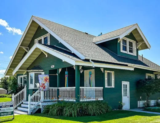 This house has pretty details inside and outside! This house is known as the Schifferdecker Gardener’s House. It was built in 1905. The house is located on .29 acre in Joplin, Missouri. The house features a covered front porch, wood floors, baseboards, picture rails, nice fireplace, vintage light fixture, chair rails and arched entryway. There is a large basement and attic. Three bedrooms, two bathrooms and 1,831 square feet. $159,900