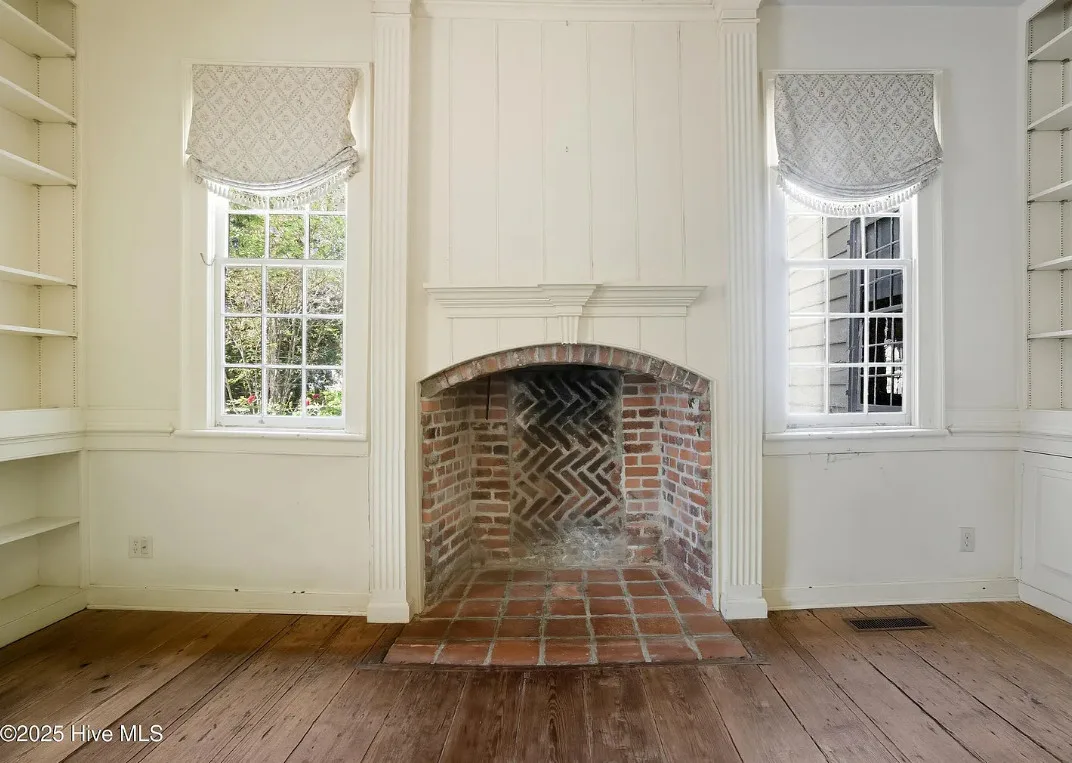 Oh my! The amount of history in this house! And that fireplace! Known as the Charlton House. It was home to Jasper Charlton and his wife Abigail. Jasper was a lawyer and a Revolutionary era activist. His wife Abigail is believed to have been the first signer of the Edenton Tea Party resolutions in 1774. The house was built in 1765. It is located on .37 acre in Edenton, North Carolina. The house features a covered front porch, wide plank wood floors, chair rails, crown moulding, built-in bookshelves, spacious kitchen, built-in corner cabinet and beautiful fireplaces that are all in working order. Three bedrooms, three bathrooms and 2,547 square feet. $549,000