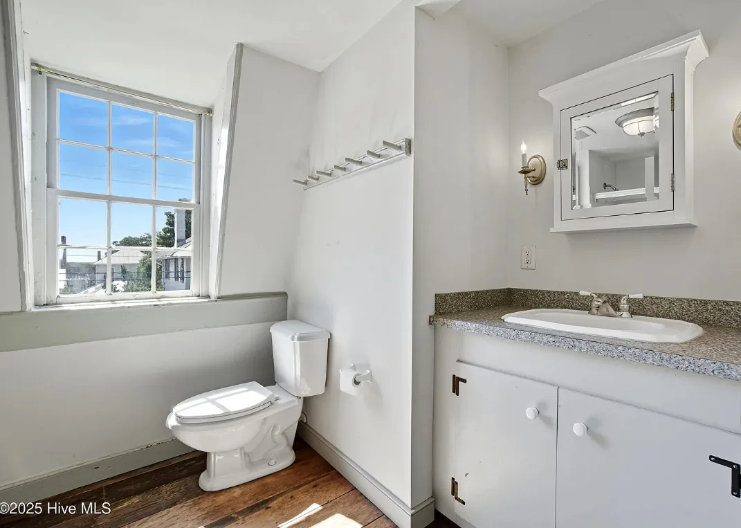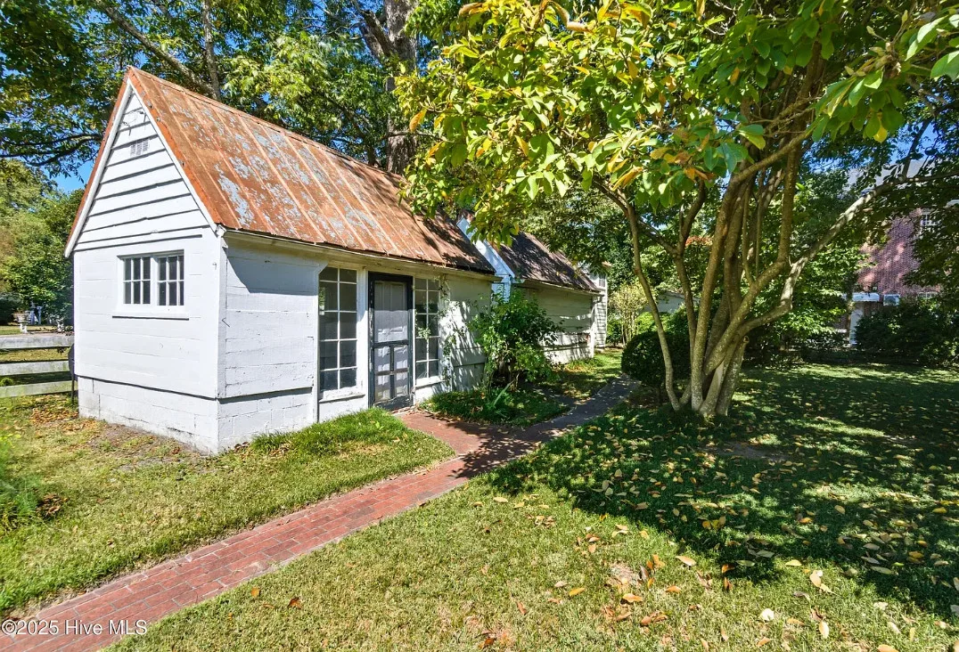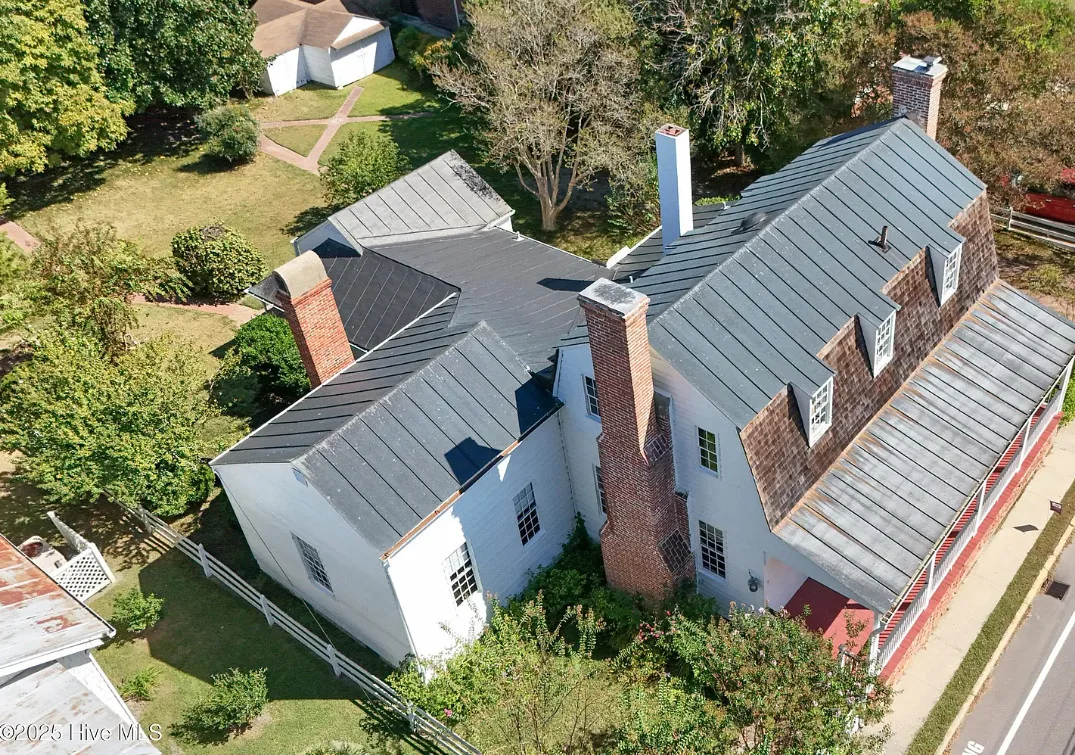 The Charlton House, ca1765, was built for Jasper Charlton, a lawyer and Revolutionary era political activist, and his wife, Abigail, believed to be the first signer of the Edenton Tea Party resolutions. The Warren family purchased the home in 1899, and it remains in family ownership today. Extensive renovations were made in 1958, and the house remains largely unchanged. Many believe this home to be the site of the famed 1774 Edenton Tea Party. According to noted historian Tom Butchko, ”The handsomely finished Georgian style interior has one of the few original central-hall plans in a gambrel roof house in the state….Molded wooden cornices, raised-panel doors, and mitered surrounds further distinguish the interior.” Notable original elements include strikingly wide original floorboards, timeworn stairs, and a big cast iron front door lock. The center hallway is flanked by formal dining and sitting rooms. From the sitting room, one steps down into a large, well-proportioned living room. There are 3 fireplaces downstairs, all reworked with period appropriateness by an accomplished local mason during the major renovations. The kitchen is behind the dining room, and a string of small pantries became a first-floor master suite. The second floor features east and west side bedrooms and a hallway and full bath between them. In the backyard, there are 4 outbuildings, most of which were built or placed in the 1930’s. Used in most recent years as storage, there is opportunity to convert the outbuildings into finished usable spaces. The deep backyard is accented by mature trees, established plantings and lovely brick walkways installed in the 1950s. The Charlton house is one of downtown Edenton’s most ”unspoiled ” historic homes, free from the marks of passing design trends. The property retains a sense of authenticity that feels both rare and refreshing. Just 2 blocks from the waterfront and downtown, this property exemplifies the very best of historic Edenton.
