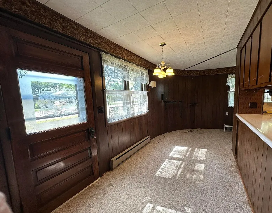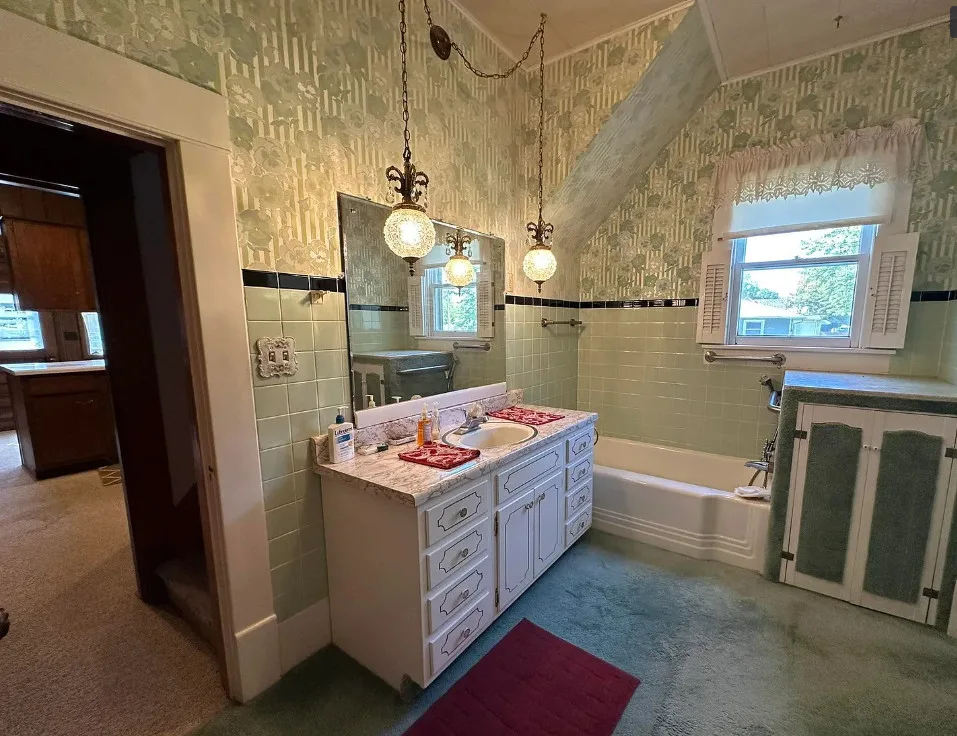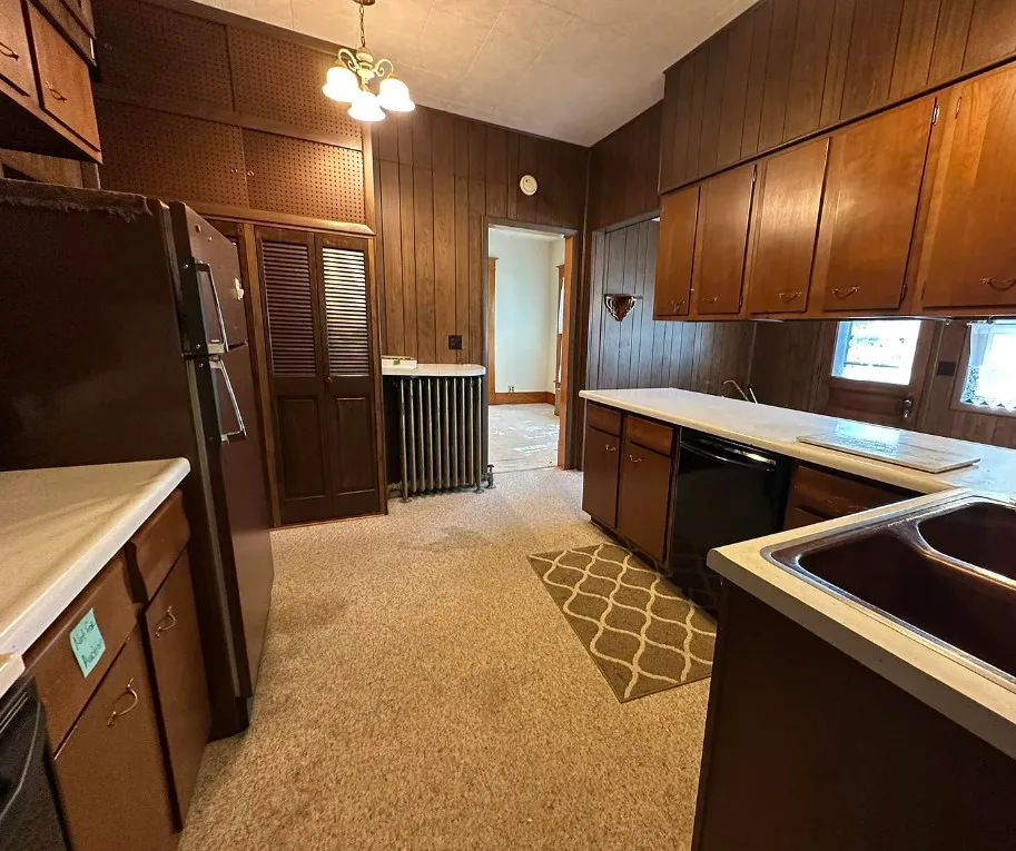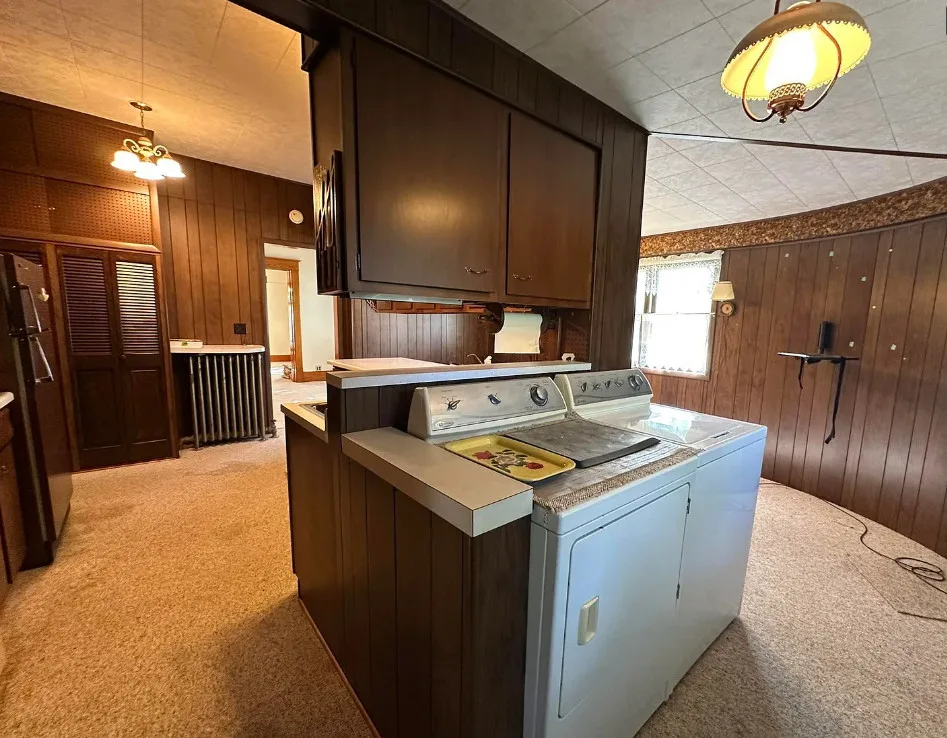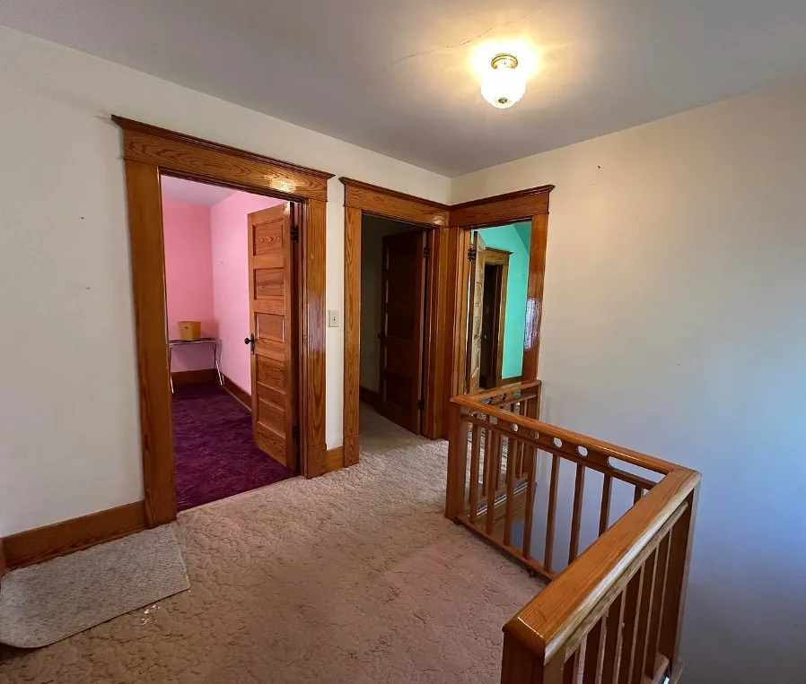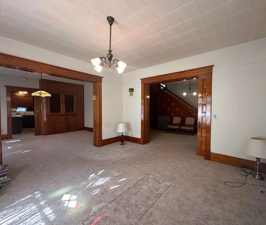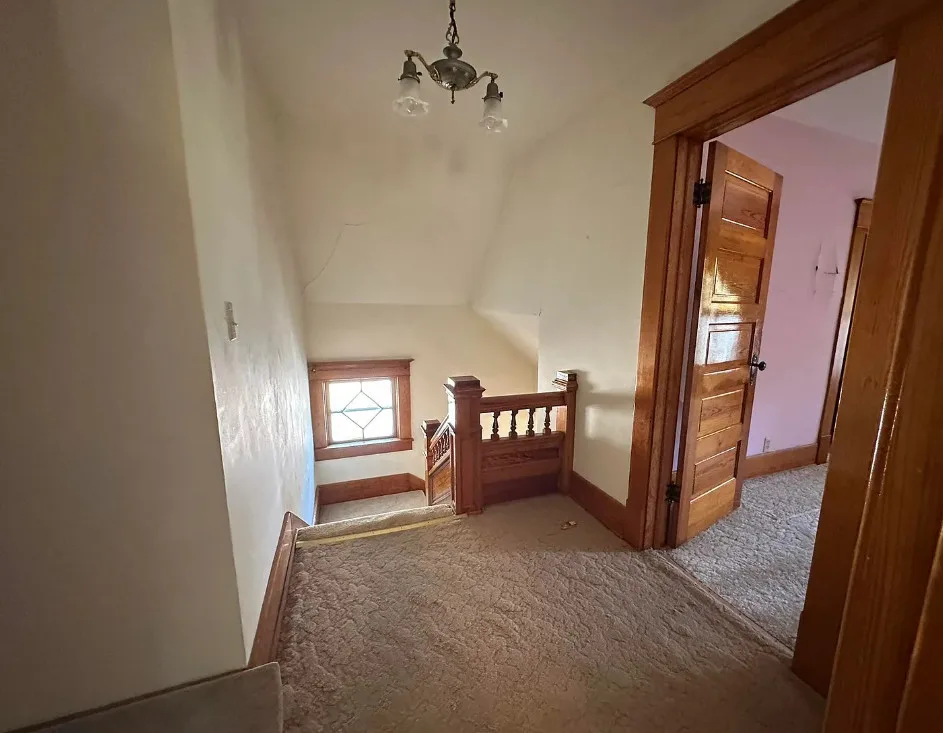 This house looks like a diamond in the rough! Those pocket doors, stairs and stained glass are pretty! The house was built in 1905. It is located on .35 acre in Geneva, Nebraska. The house features a covered front porch, pretty staircase, beautiful pocket doors, stained glass, vintage light fixtures and baseboards. There is a detached two car garage. Five bedrooms, three bathrooms and 2,721 square feet. $147,500