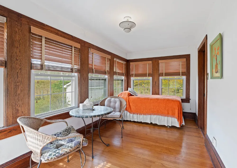 This house has such a pretty setting and it’s in such a pretty area! The house was built in 1938. It is located on five acres in Independence, Virginia. The house features a covered back porch, original wood floors, baseboards, brick fireplace, built-in bookshelves and wainscoting. There is a large basement and a detached storage shed. Three bedrooms, two bathrooms and 1,420 square feet. $268,000